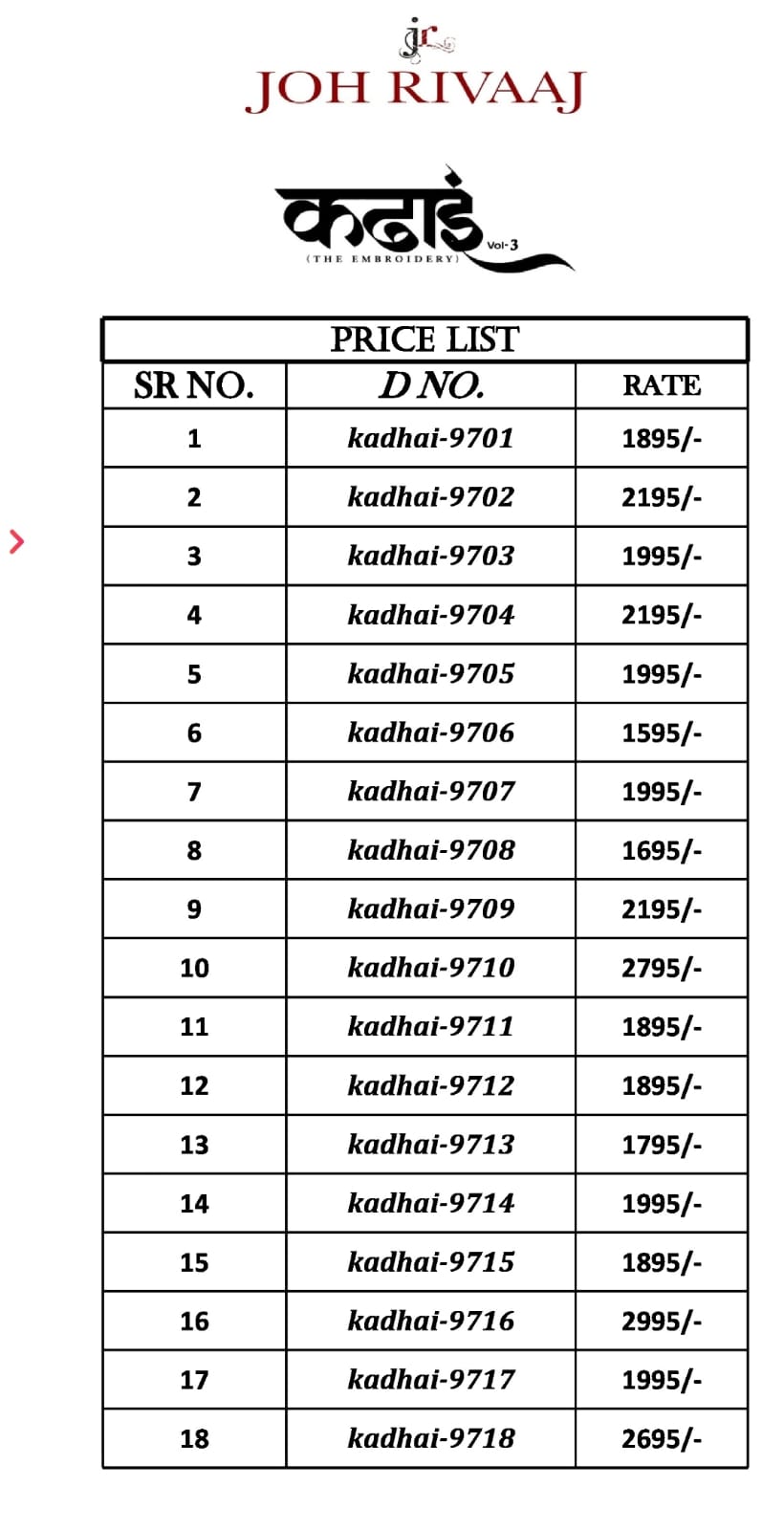 Kadhai Vol 3 By Joh Rivaaj Designer Saree Wholesale Suppliers And Dealer From India