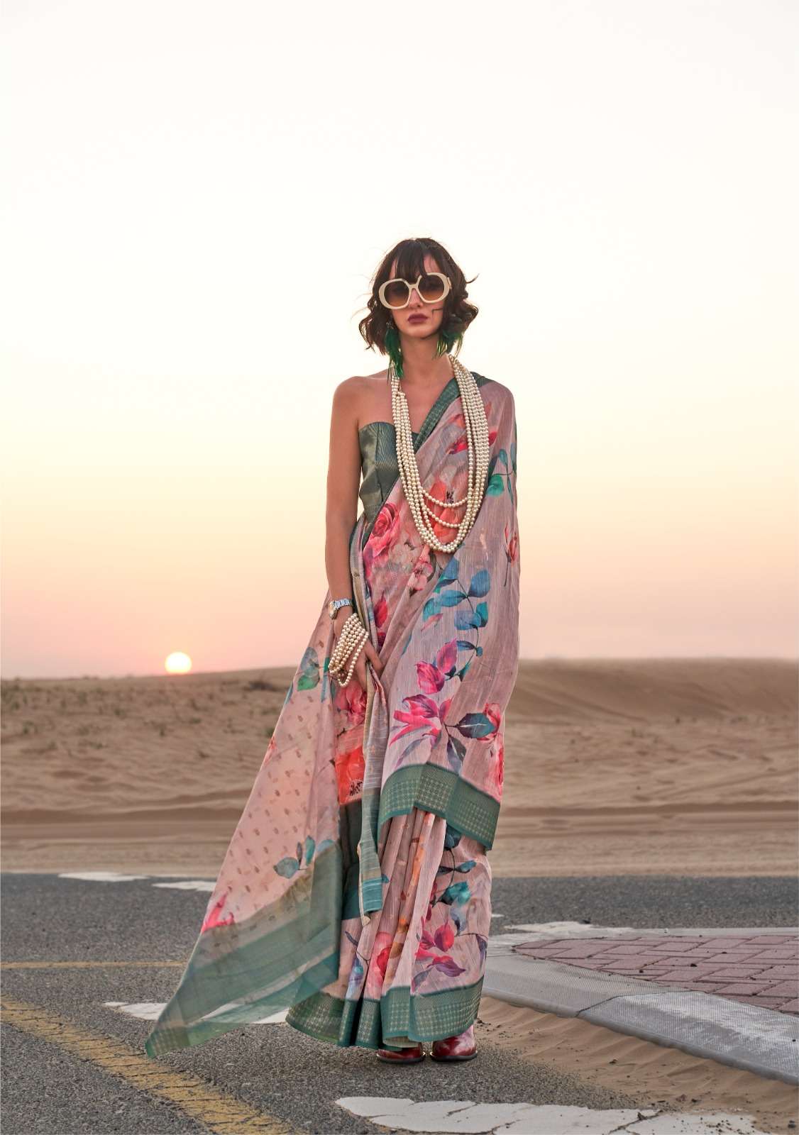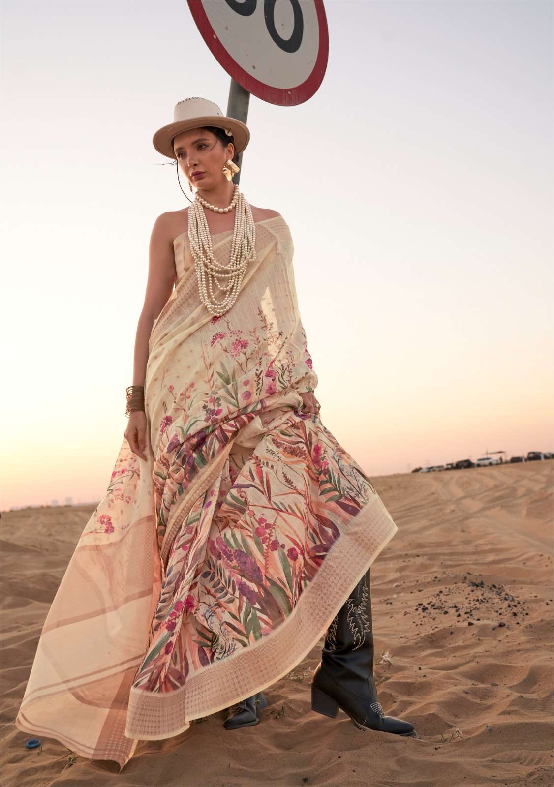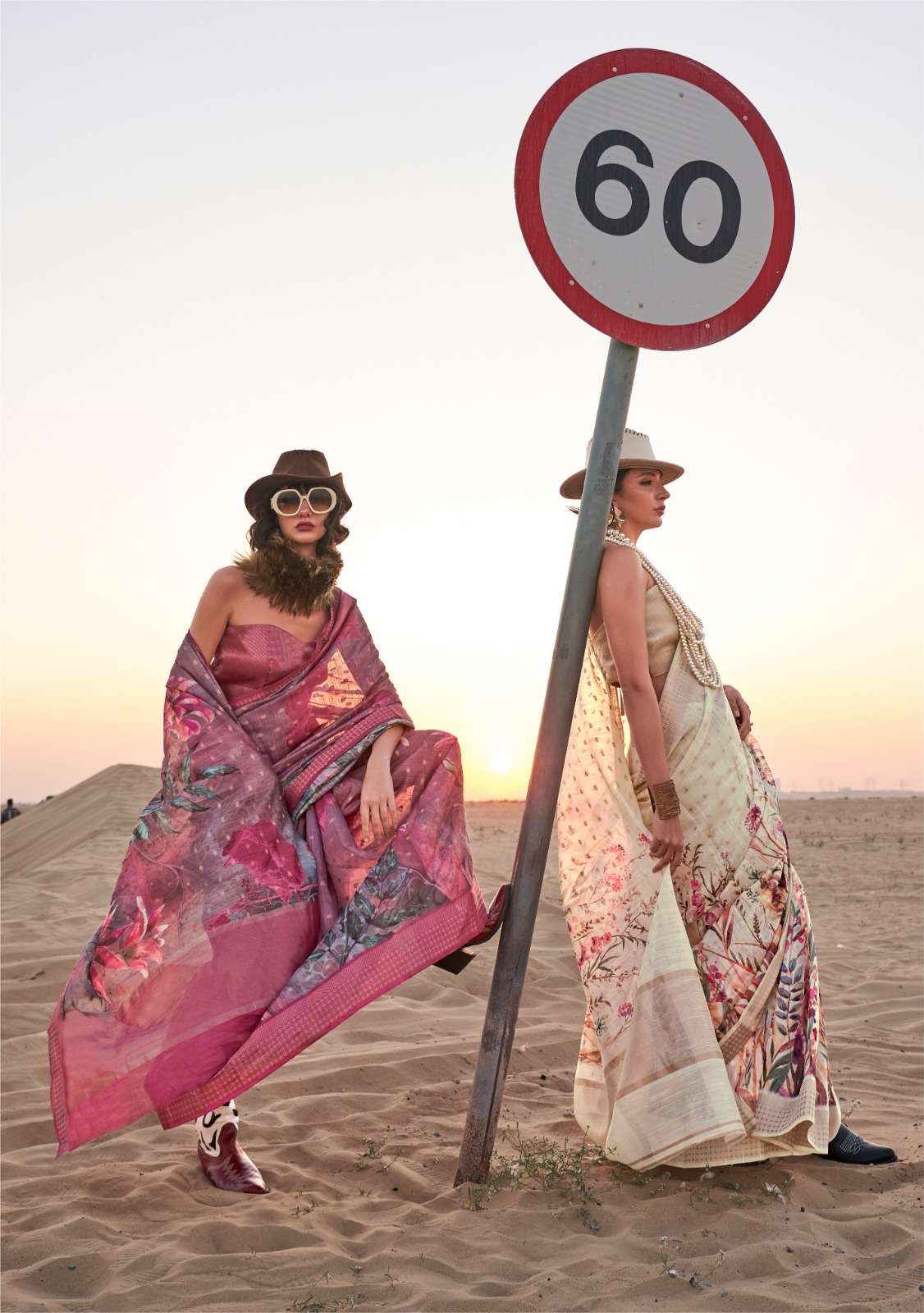 🔰 *Fabric*- *PRINTED HANDLOOM LINEN SAREES*