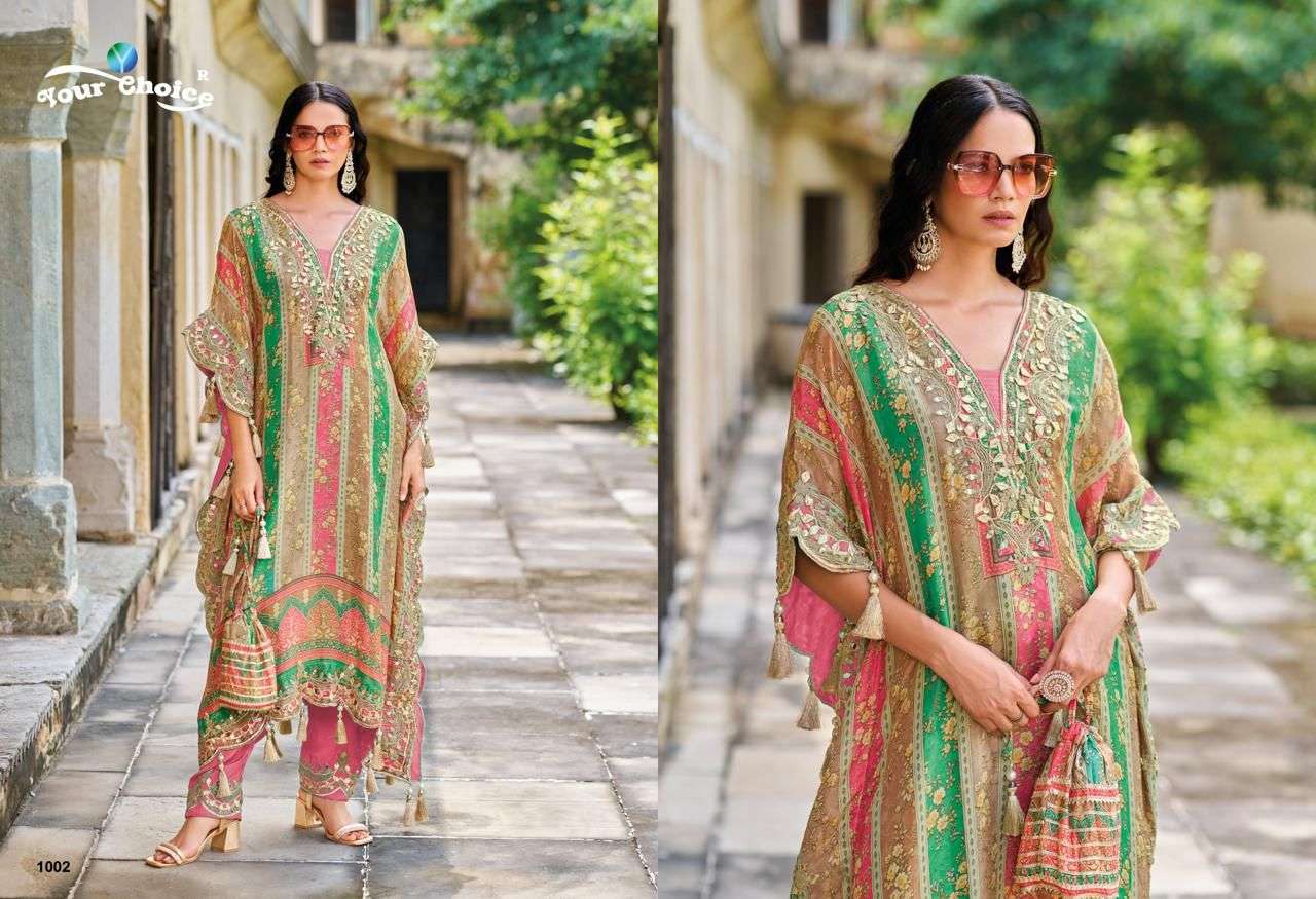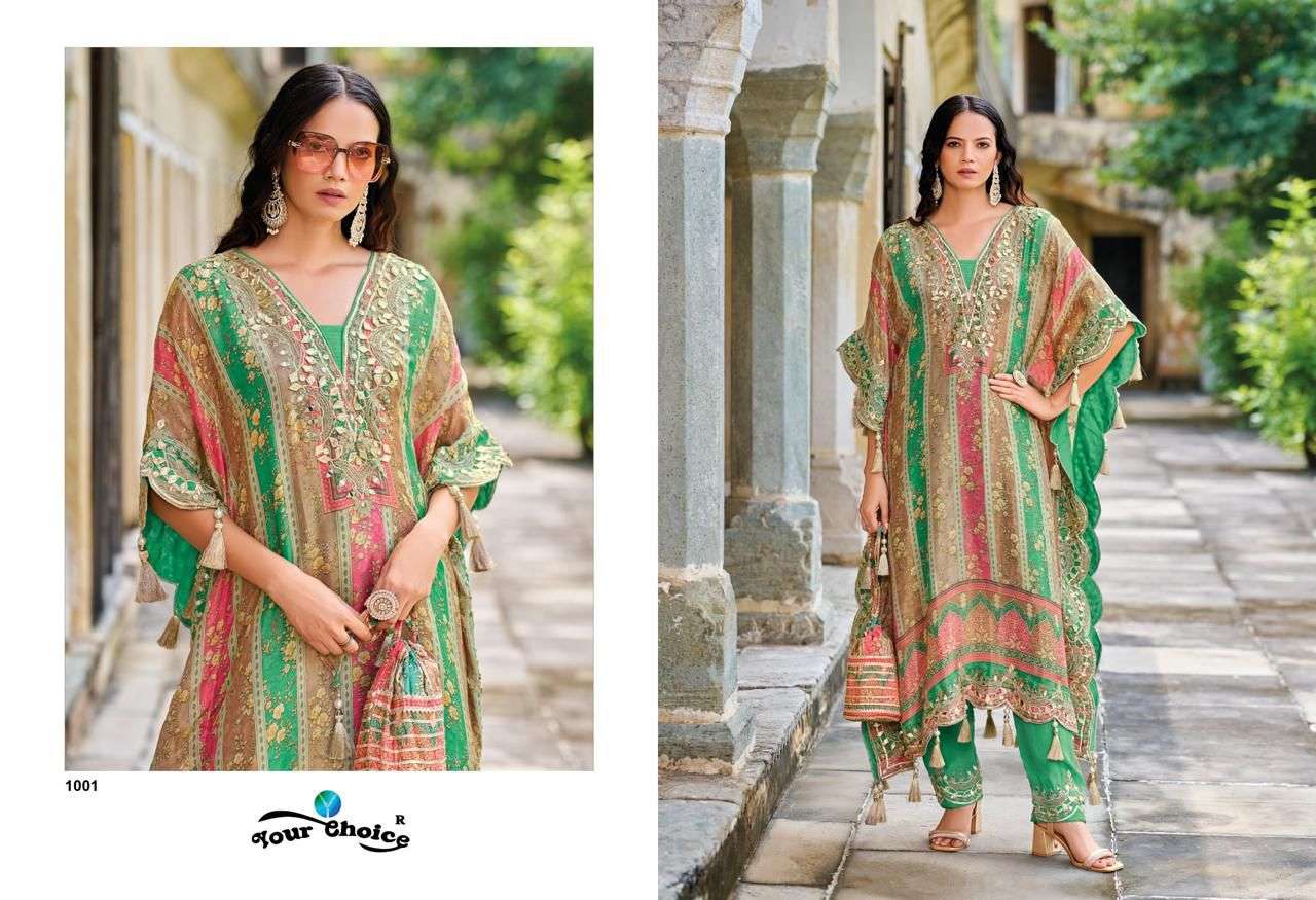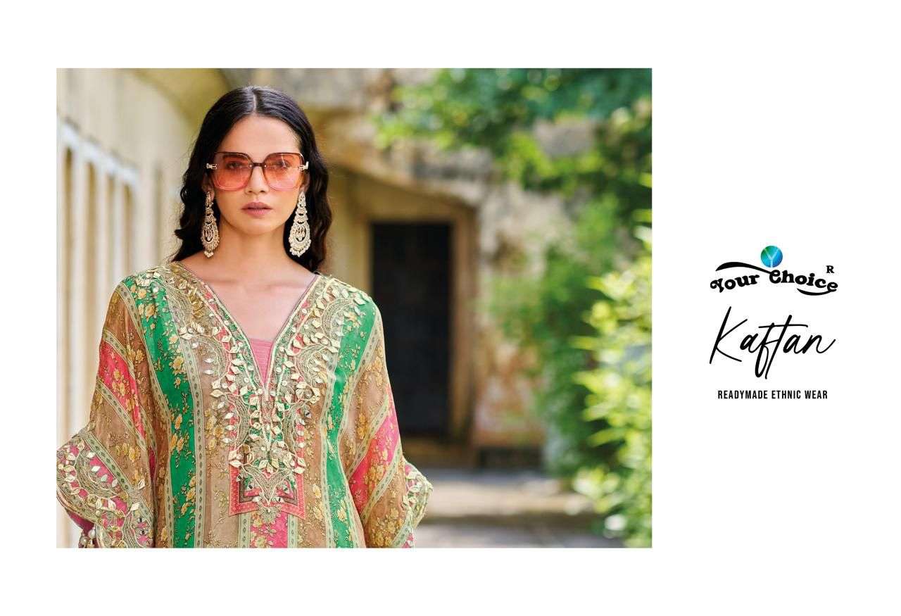 Buy Online Kaftan by Your choice Heavy Chinon suit collection manufacturer surat 2 Pcs of Full Catalogue at Wholesale Price. Looking for Kaftan by Your choice Heavy Chinon suit collection manufacturer surat Full Catalouge at Best Price? Buy Now Kaftan by Your choice Heavy Chinon suit collection manufacturer surat at Wholesale Rate of Rs 3990 with Total 2 Pcs from authroized dealer and supplier of YOUR CHOICE Brand. Cost of Each piece is just only Rs 1995 which is very low and affordable price to resale the product in your retail store ,This is Surat based Wholesale Supplier & Dealer of YOUR CHOICE Brand. Click on Brand name to Know more about YOUR CHOICE Brand's products.Call or Whatsapp on 9898838984 for booking or enquiry