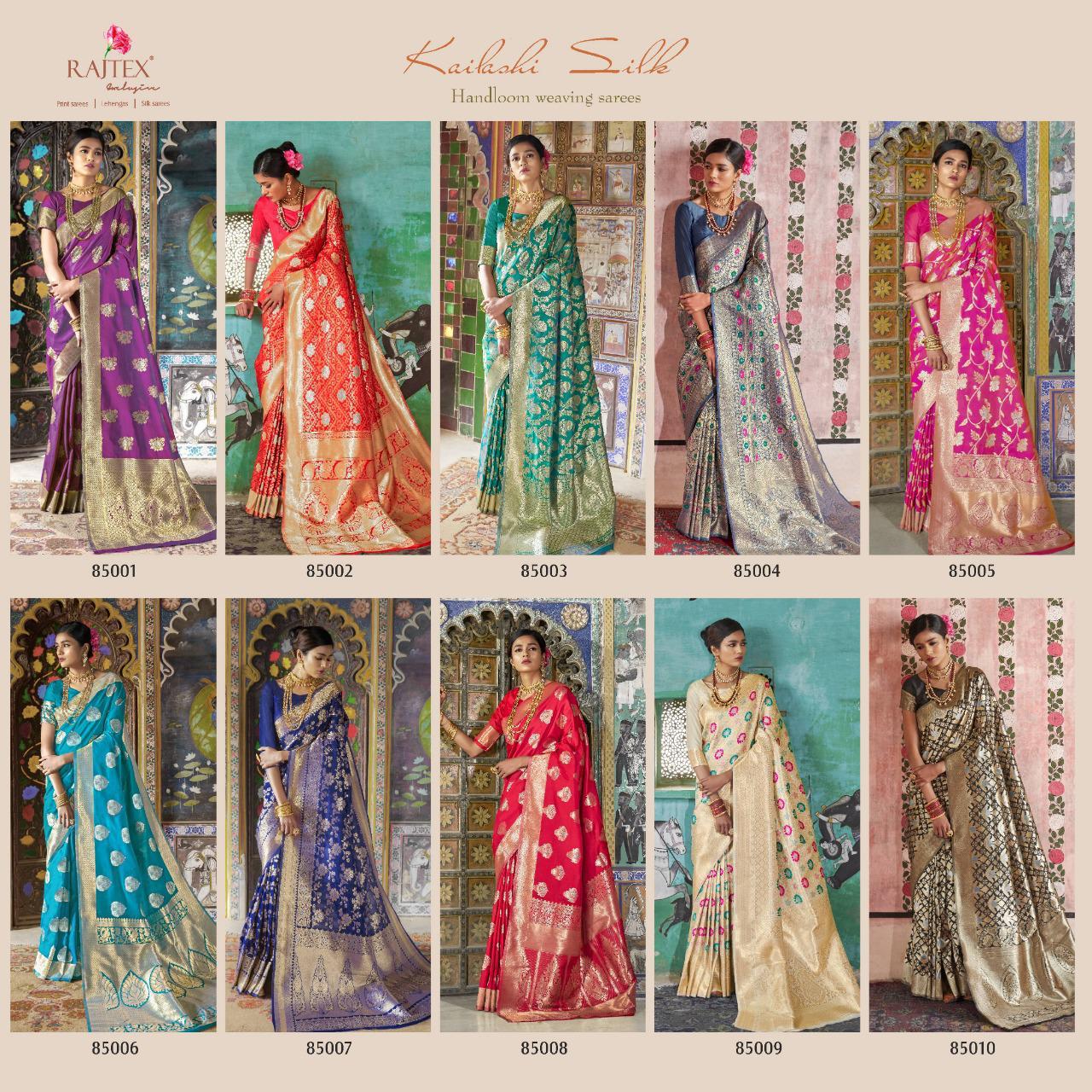 Kailashi Silk By Raj Tex Series 85001 To 85010 Silk Designer Occasion Wear Sarees Wholesale Supplier Gujarat