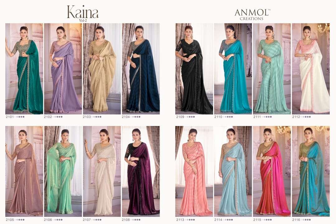 Buy Online KAINA SERIES 2101 TO 2116 BY ANMOL CREATION WEDDING COLLACTION 16 Pcs of Full Catalogue at Wholesale Price. Looking for KAINA SERIES 2101 TO 2116 BY ANMOL CREATION WEDDING COLLACTION Full Catalouge at Best Price? Buy Now KAINA SERIES 2101 TO 2116 BY ANMOL CREATION WEDDING COLLACTION at Wholesale Rate of Rs 34896 with Total 16 Pcs from authroized dealer and supplier of ANMOL SAREE Brand. Cost of Each piece is just only Rs 2181 which is very low and affordable price to resale the product in your retail store ,This is Surat based Wholesale Supplier & Dealer of ANMOL SAREE Brand. Click on Brand name to Know more about ANMOL SAREE Brand's products.Call or Whatsapp on 9898838984 for booking or enquiry