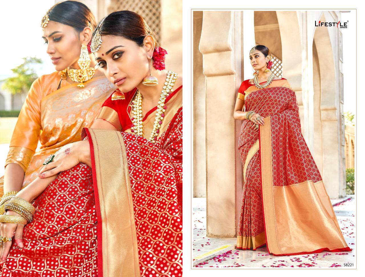 Buy Online Kainat By Lifestyle Series 58221 To 58226 Silk Designer Occasion Wear Sarees Wholesale Supplier Gujarat 6 Pcs of Full Catalogue at Wholesale Price. Looking for Kainat By Lifestyle Series 58221 To 58226 Silk Designer Occasion Wear Sarees Wholesale Supplier Gujarat Full Catalouge at Best Price? Buy Now Kainat By Lifestyle Series 58221 To 58226 Silk Designer Occasion Wear Sarees Wholesale Supplier Gujarat at Wholesale Rate of Rs 10740 with Total 6 Pcs from authroized dealer and supplier of LIFESTYLE Brand. Cost of Each piece is just only Rs 1790 which is very low and affordable price to resale the product in your retail store ,This is Surat based Wholesale Supplier & Dealer of LIFESTYLE Brand. Click on Brand name to Know more about LIFESTYLE Brand's products.Call or Whatsapp on 9898838984 for booking or enquiry
