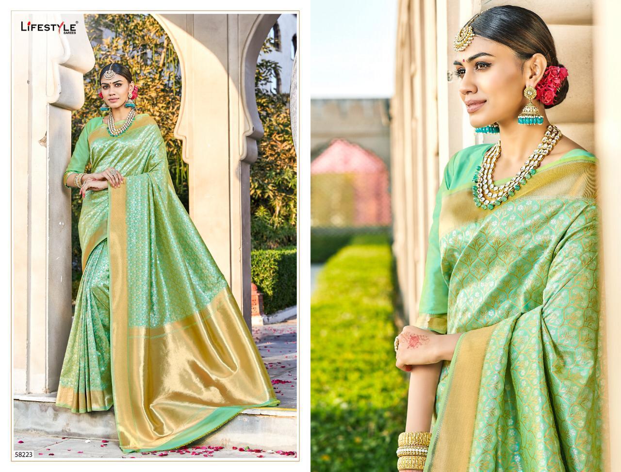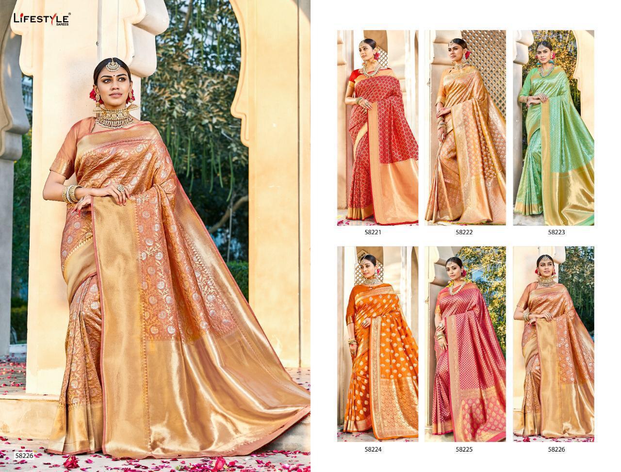 Buy Online Kainat By Lifestyle Silk Designer Occasion Wear Sarees Wholesale Supplier And Trader Gujarat 6 Pcs of Full Catalogue at Wholesale Price. Looking for Kainat By Lifestyle Silk Designer Occasion Wear Sarees Wholesale Supplier And Trader Gujarat Full Catalouge at Best Price? Buy Now Kainat By Lifestyle Silk Designer Occasion Wear Sarees Wholesale Supplier And Trader Gujarat at Wholesale Rate of Rs 10740 with Total 6 Pcs from authroized dealer and supplier of LIFESTYLE Brand. Cost of Each piece is just only Rs 1790 which is very low and affordable price to resale the product in your retail store ,This is Surat based Wholesale Supplier & Dealer of LIFESTYLE Brand. Click on Brand name to Know more about LIFESTYLE Brand's products.Call or Whatsapp on 9898838984 for booking or enquiry