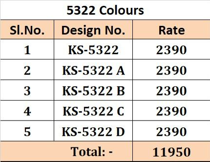 Buy Online Kajal 5322 Hits By Kimora Tissue Silk Saree 5 Pcs of Full Catalogue at Wholesale Price. Looking for Kajal 5322 Hits By Kimora Tissue Silk Saree Full Catalouge at Best Price? Buy Now Kajal 5322 Hits By Kimora Tissue Silk Saree at Wholesale Rate of Rs 11950 with Total 5 Pcs from authroized dealer and supplier of KIMORA Brand. Cost of Each piece is just only Rs 2390 which is very low and affordable price to resale the product in your retail store ,This is Surat based Wholesale Supplier & Dealer of KIMORA Brand. Click on Brand name to Know more about KIMORA Brand's products.Call or Whatsapp on 9898838984 for booking or enquiry