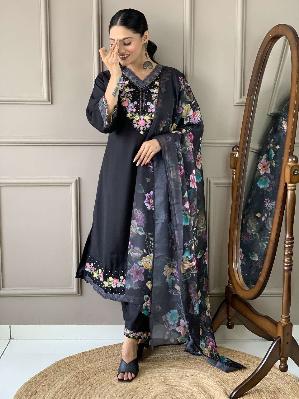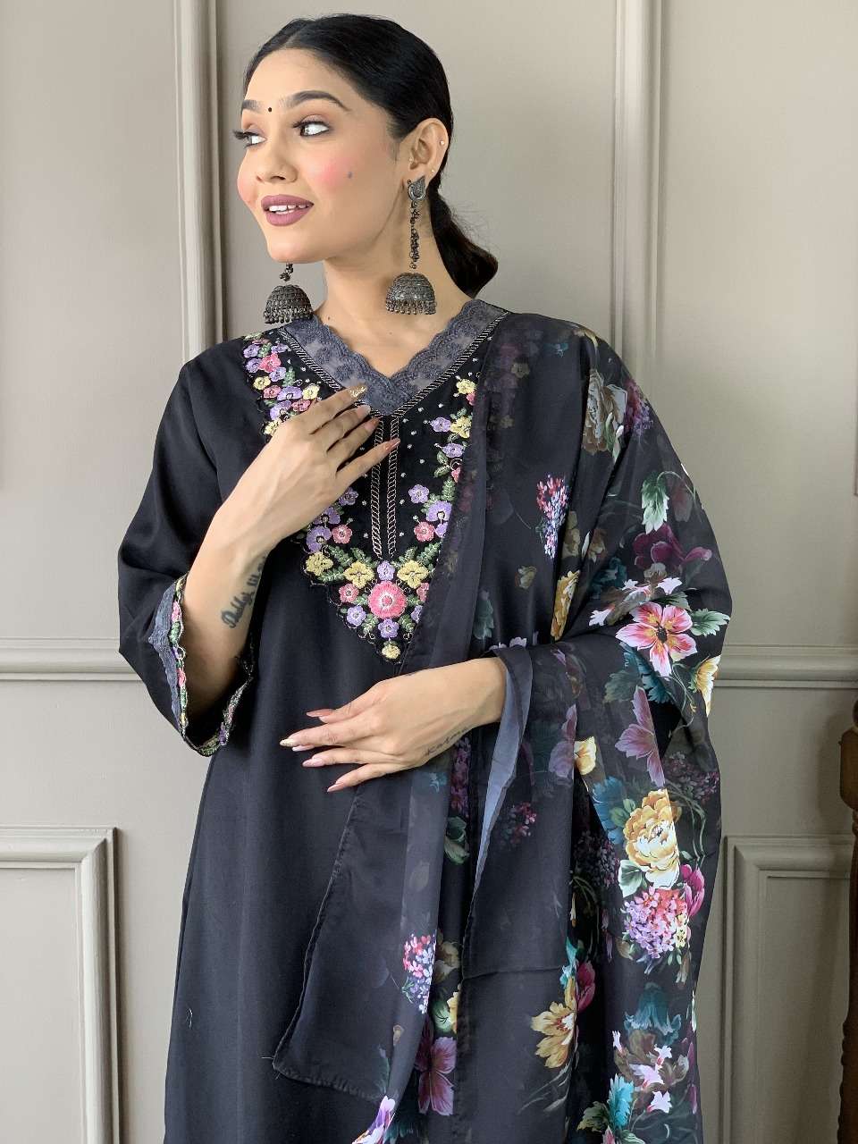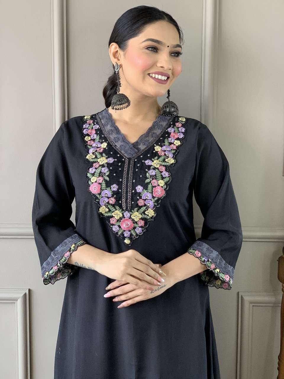 KAJAL BLACK CHANDERI silk kurti collection manufacturer surat