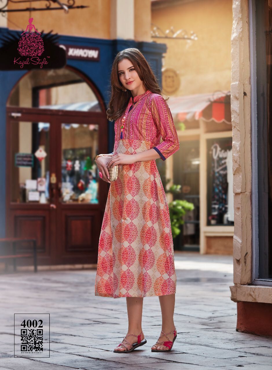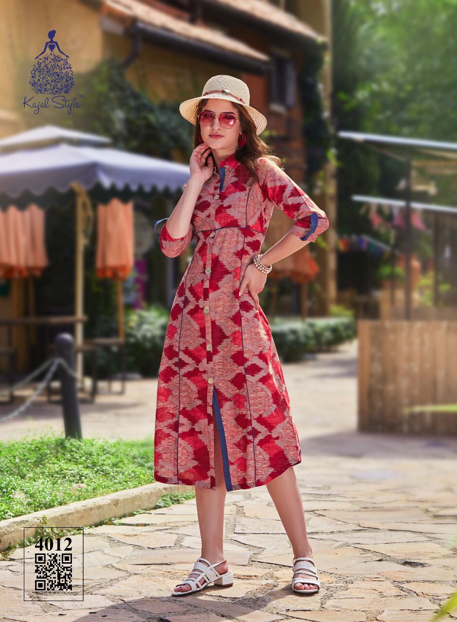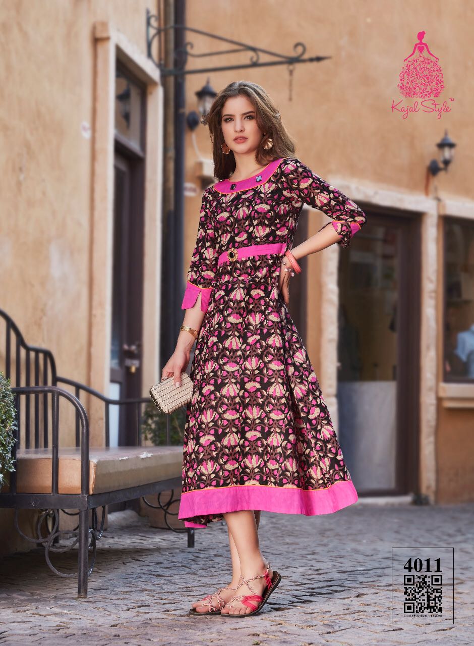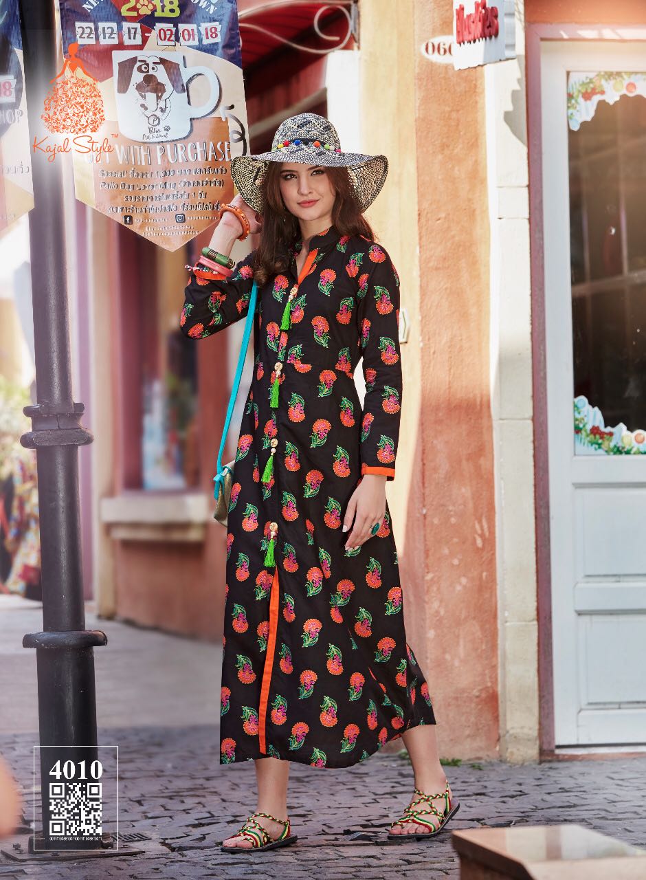 Buy Online Kajal Style F Femina Vol 4 4001 Series Reyon Print Kurties 12 Pcs of Full Catalogue at Wholesale Price. Looking for Kajal Style F Femina Vol 4 4001 Series Reyon Print Kurties Full Catalouge at Best Price? Buy Now Kajal Style F Femina Vol 4 4001 Series Reyon Print Kurties at Wholesale Rate of Rs 4560 with Total 12 Pcs from authroized dealer and supplier of KAJAL STYLE Brand. Cost of Each piece is just only Rs 380 which is very low and affordable price to resale the product in your retail store ,This is Surat based Wholesale Supplier & Dealer of KAJAL STYLE Brand. Click on Brand name to Know more about KAJAL STYLE Brand's products.Call or Whatsapp on 9898838984 for booking or enquiry