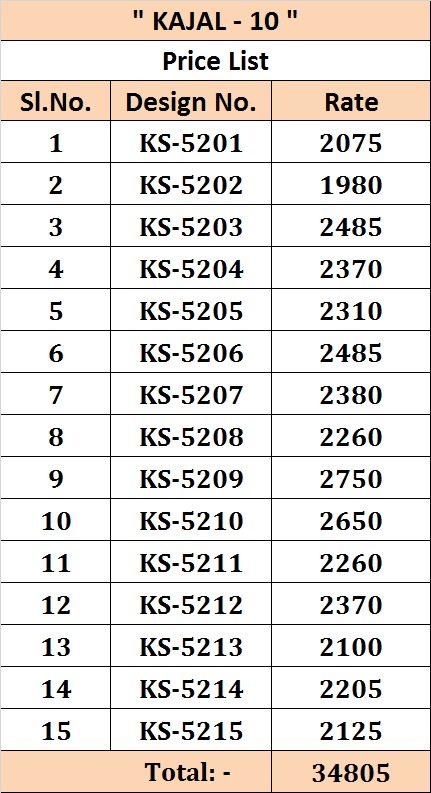Buy Online Kajal Vol 10 By Kimora Fashion Dealer From India S 15 Pcs of Full Catalogue at Wholesale Price. Looking for Kajal Vol 10 By Kimora Fashion Dealer From India S Full Catalouge at Best Price? Buy Now Kajal Vol 10 By Kimora Fashion Dealer From India S at Wholesale Rate of Rs 0 with Total 15 Pcs from authroized dealer and supplier of KIMORA Brand. Cost of Each piece is just only Rs 0 which is very low and affordable price to resale the product in your retail store ,This is Surat based Wholesale Supplier & Dealer of KIMORA Brand. Click on Brand name to Know more about KIMORA Brand's products.Call or Whatsapp on 9898838984 for booking or enquiry