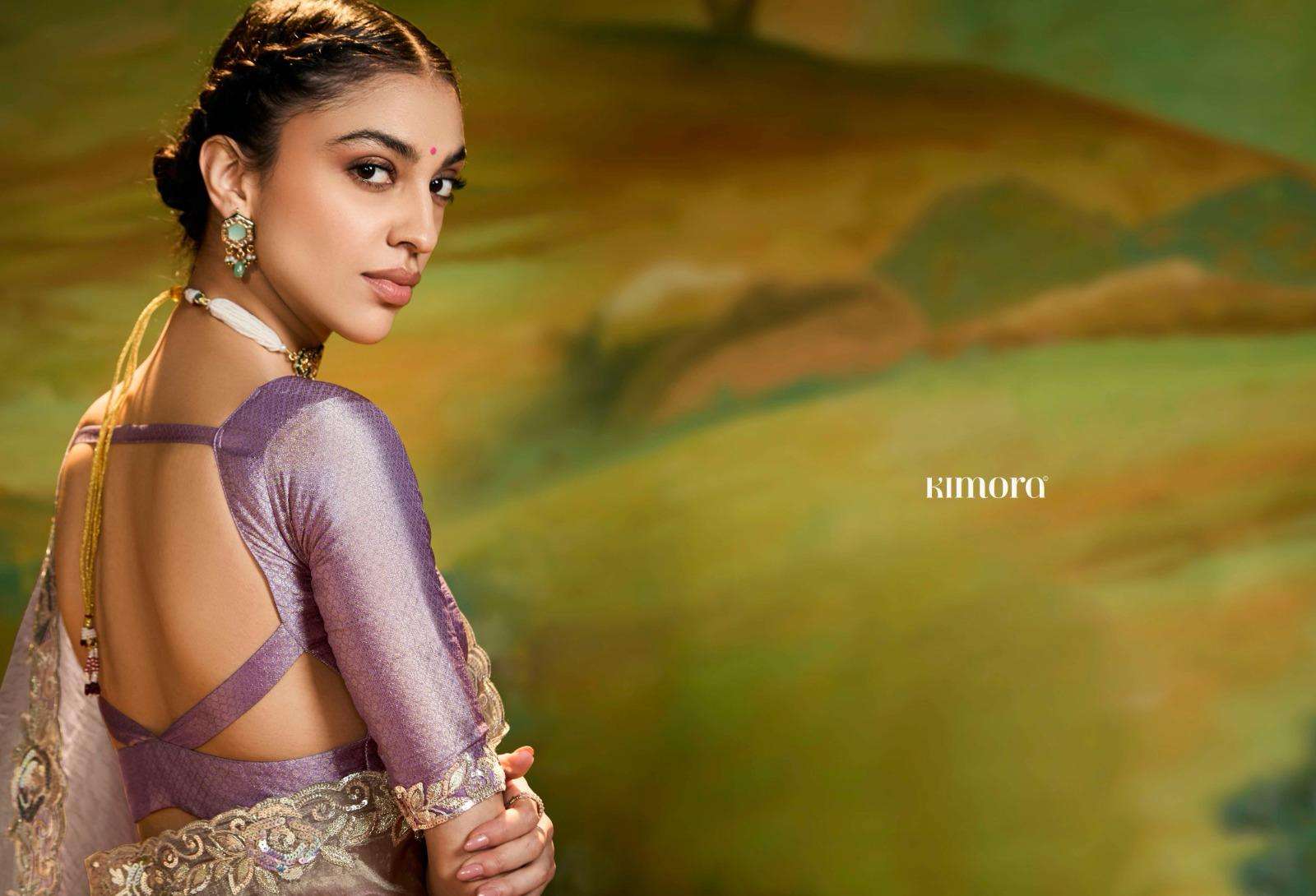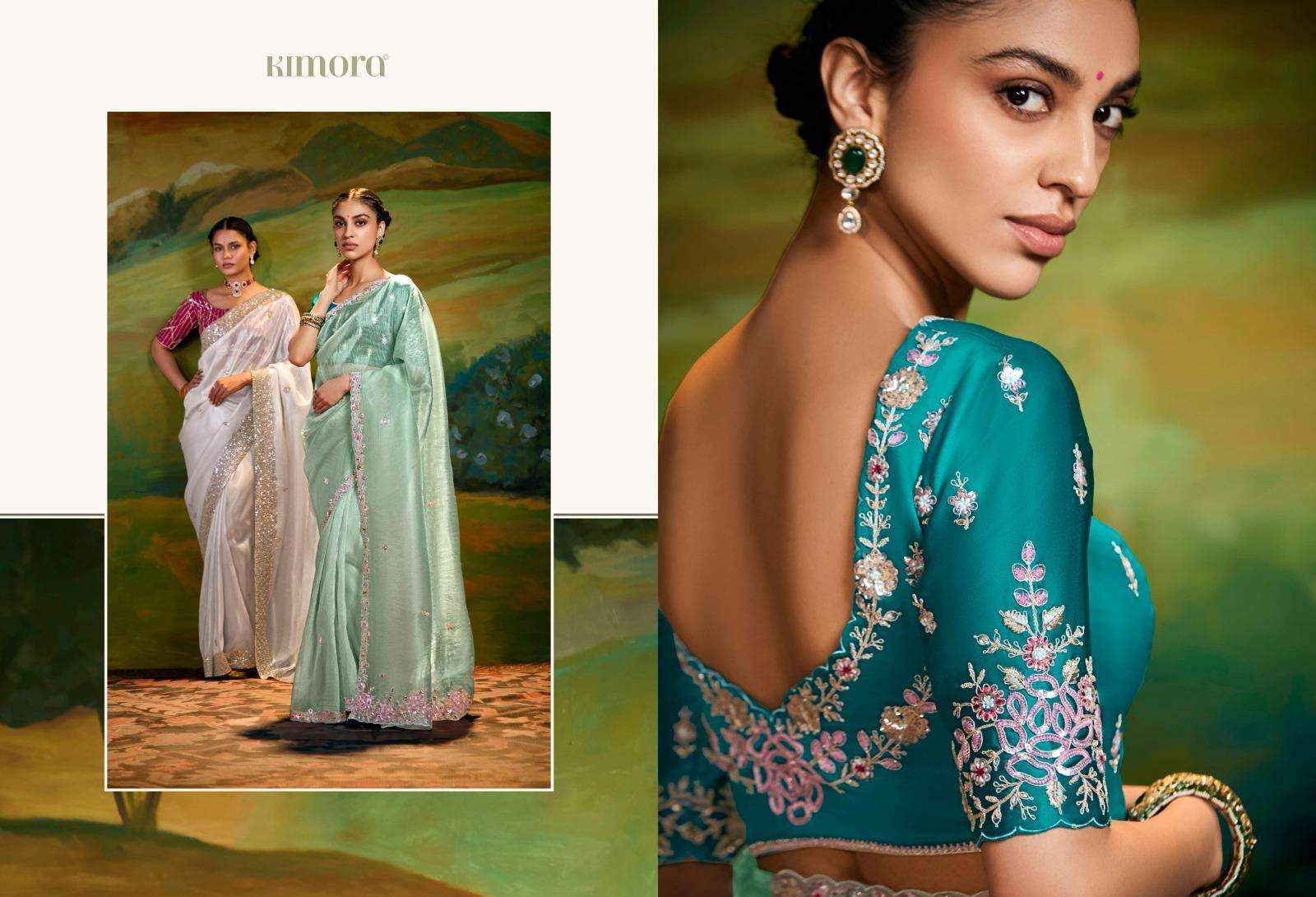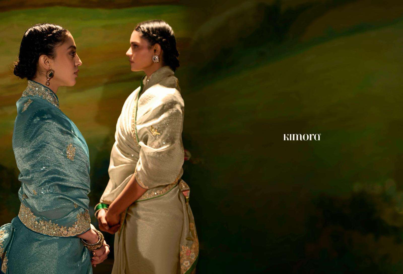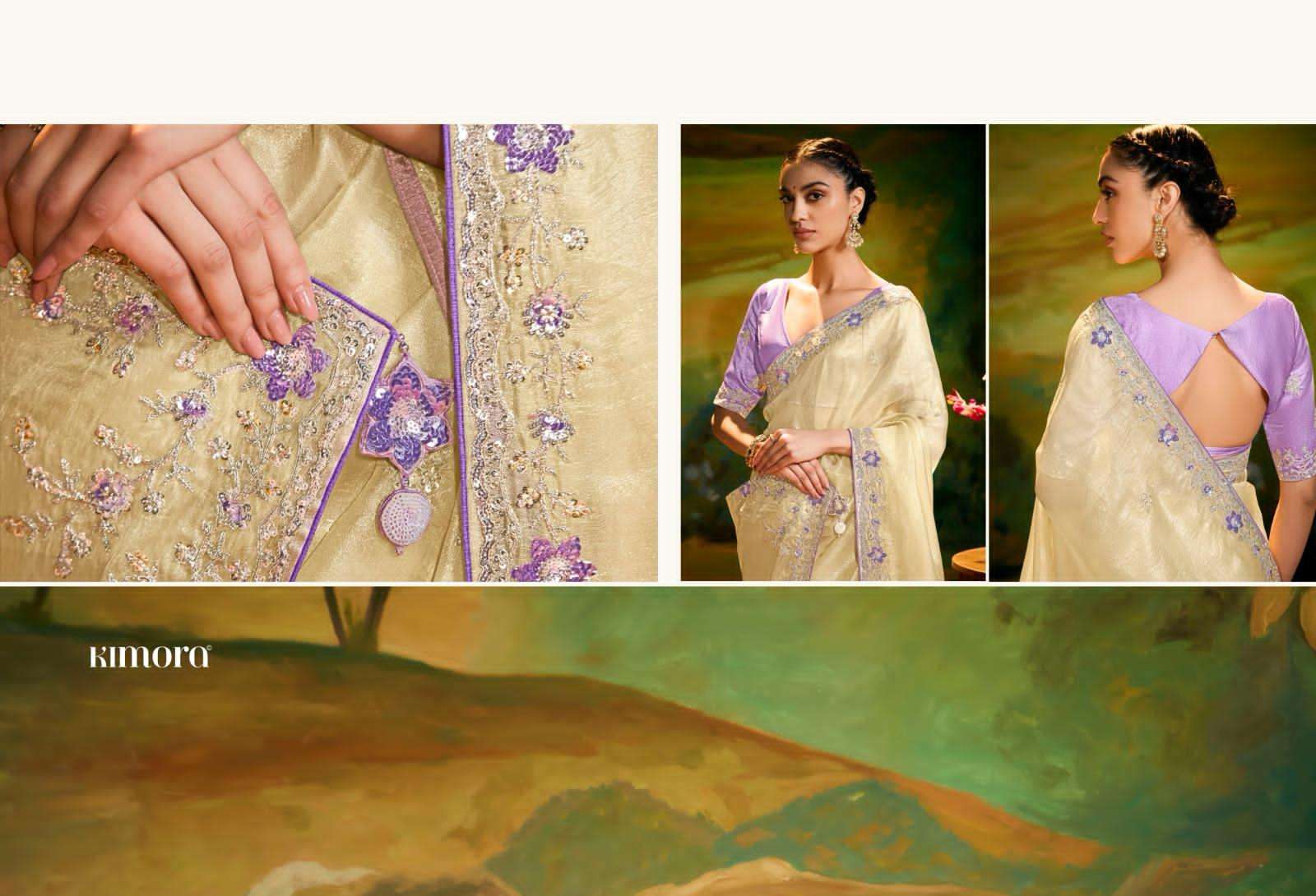 *Kimora Saree Kajal Vol 16* - *Brand:* Kimora - *Collection:* Kajal Vol 16 - *Rate:* Attached (varies depending on design and fabric) - *Fabric:* Fancy fabrics with handwork - *GST:* 5% extra - *Availability:* Single piece available Dispatch from 8th april |
