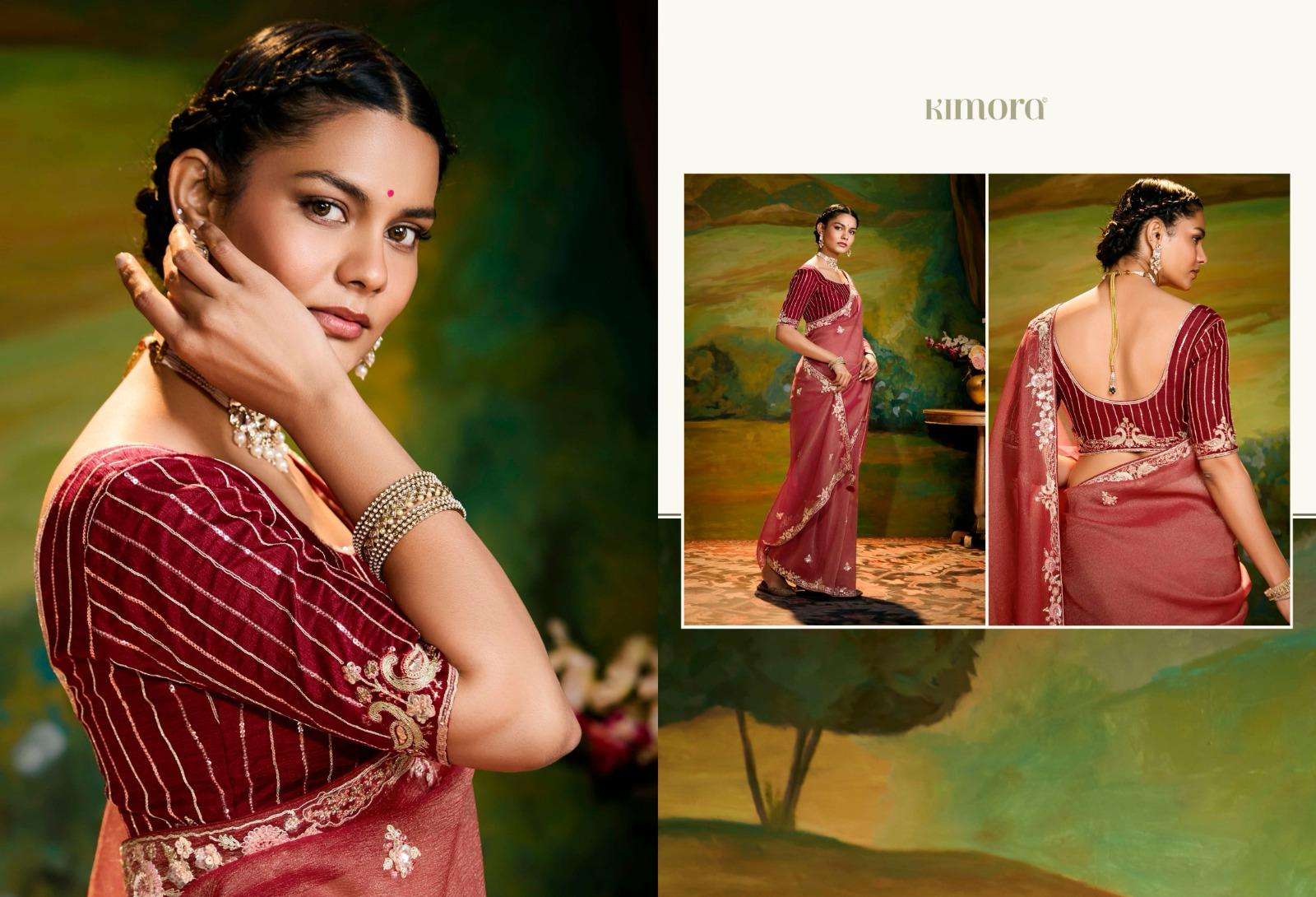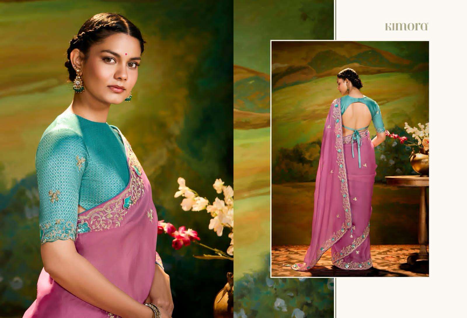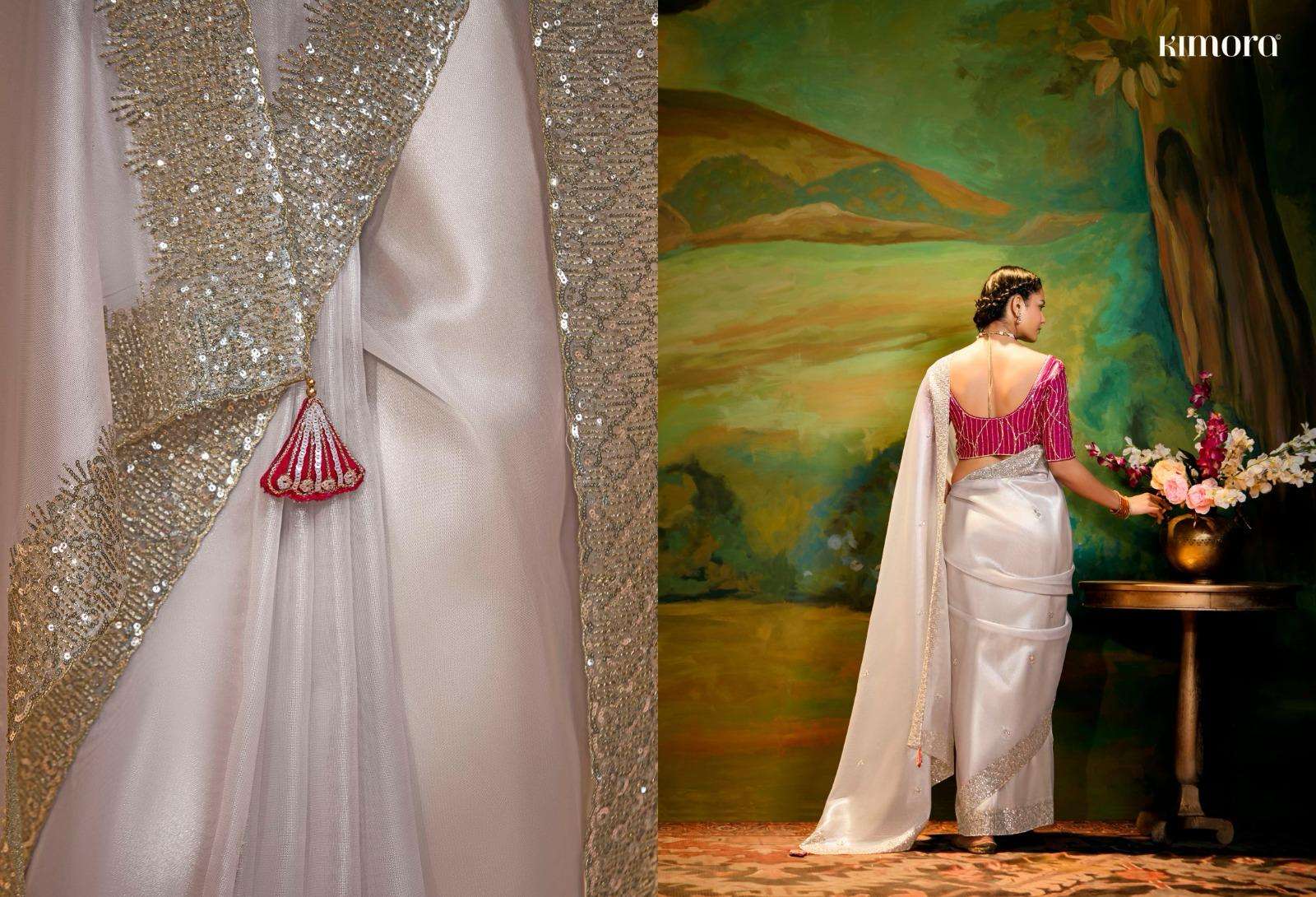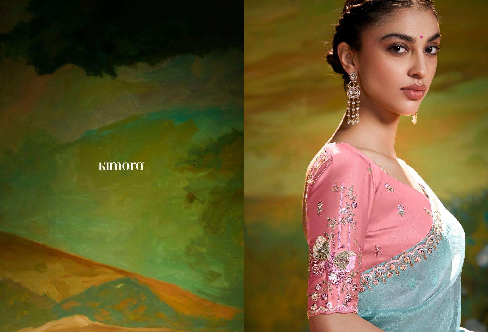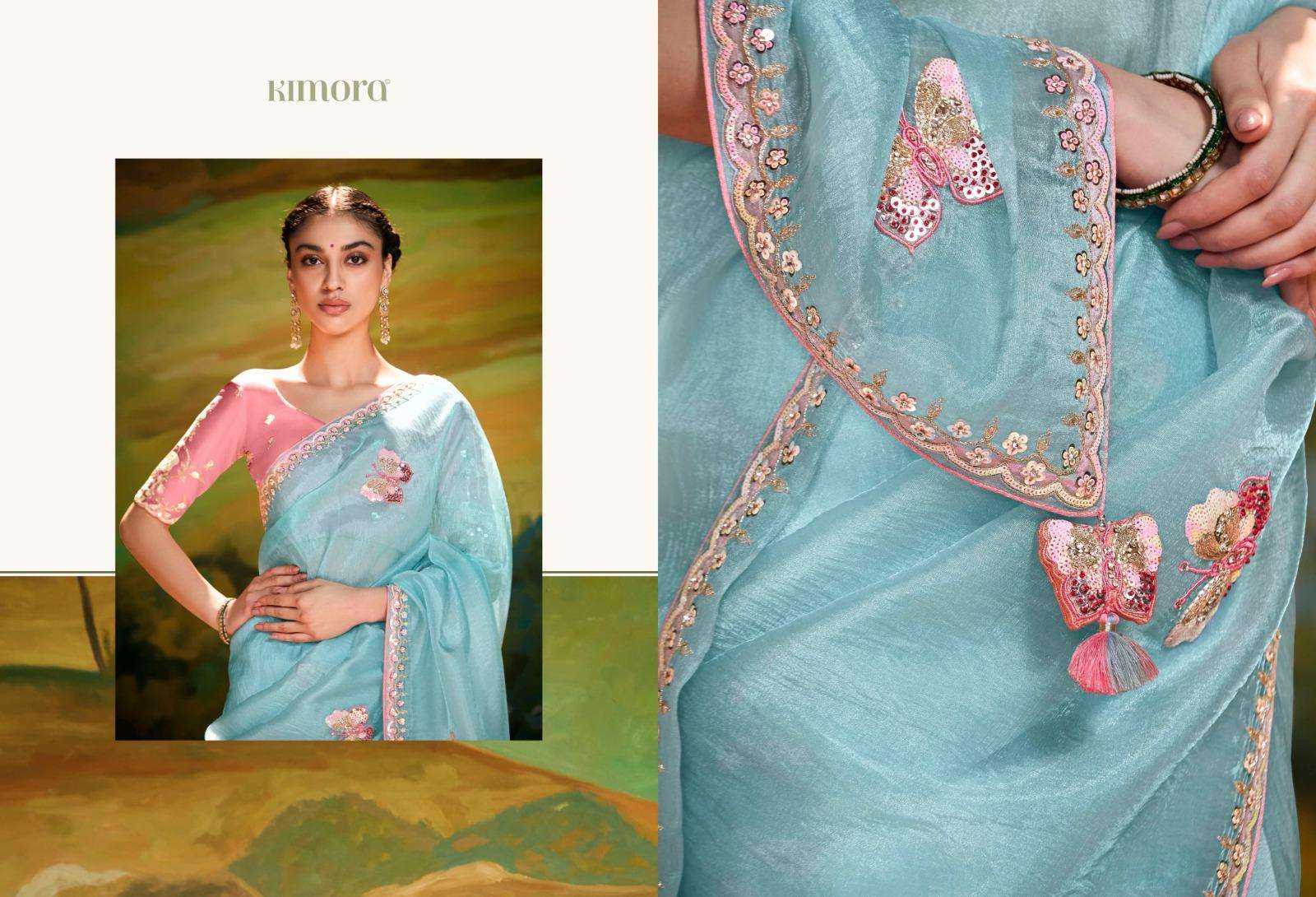 *Kimora Saree Kajal Vol 16* - *Brand:* Kimora - *Collection:* Kajal Vol 16 - *Rate:* Attached (varies depending on design and fabric) - *Fabric:* Fancy fabrics with handwork - *GST:* 5% extra - *Availability:* Single piece available Dispatch from 8th april |