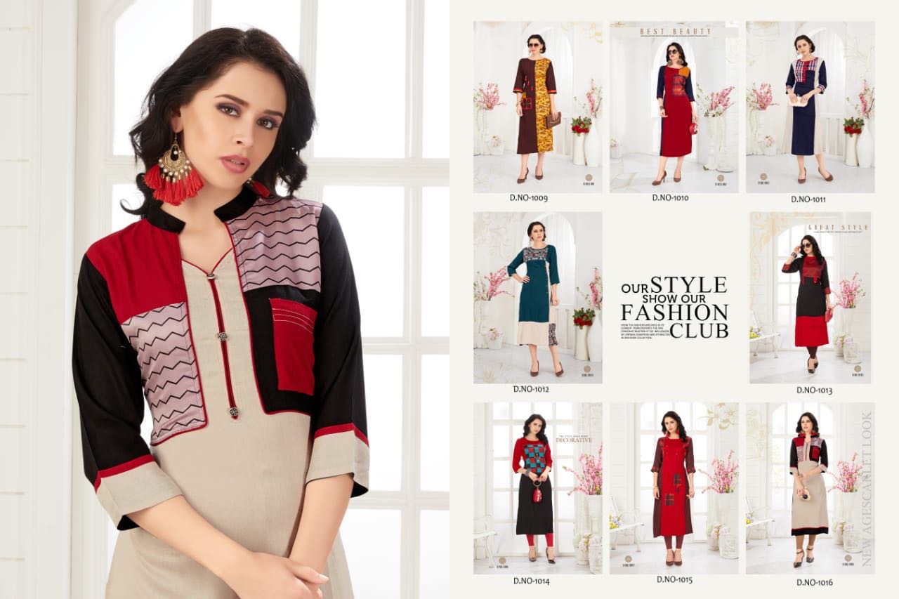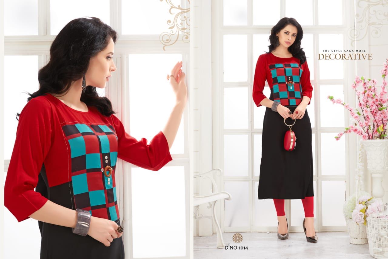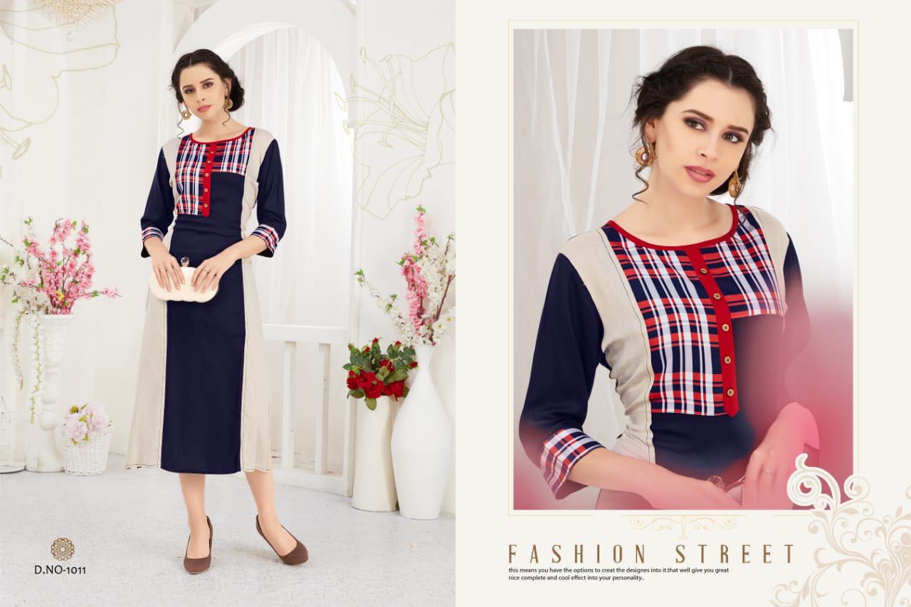 *Hello Dear Sir* We are Launching A New designer *kurti* collection by Now New Catloge Brand Name : kajri style Catalog Name :- *priya vol.2 Design : *8 Fabric : *Reyon 14 kg with rean Slabwith dijital print pech Size : *L(40), XL(42), XXL(44)* Rate : *425- Pcs+ 5% |