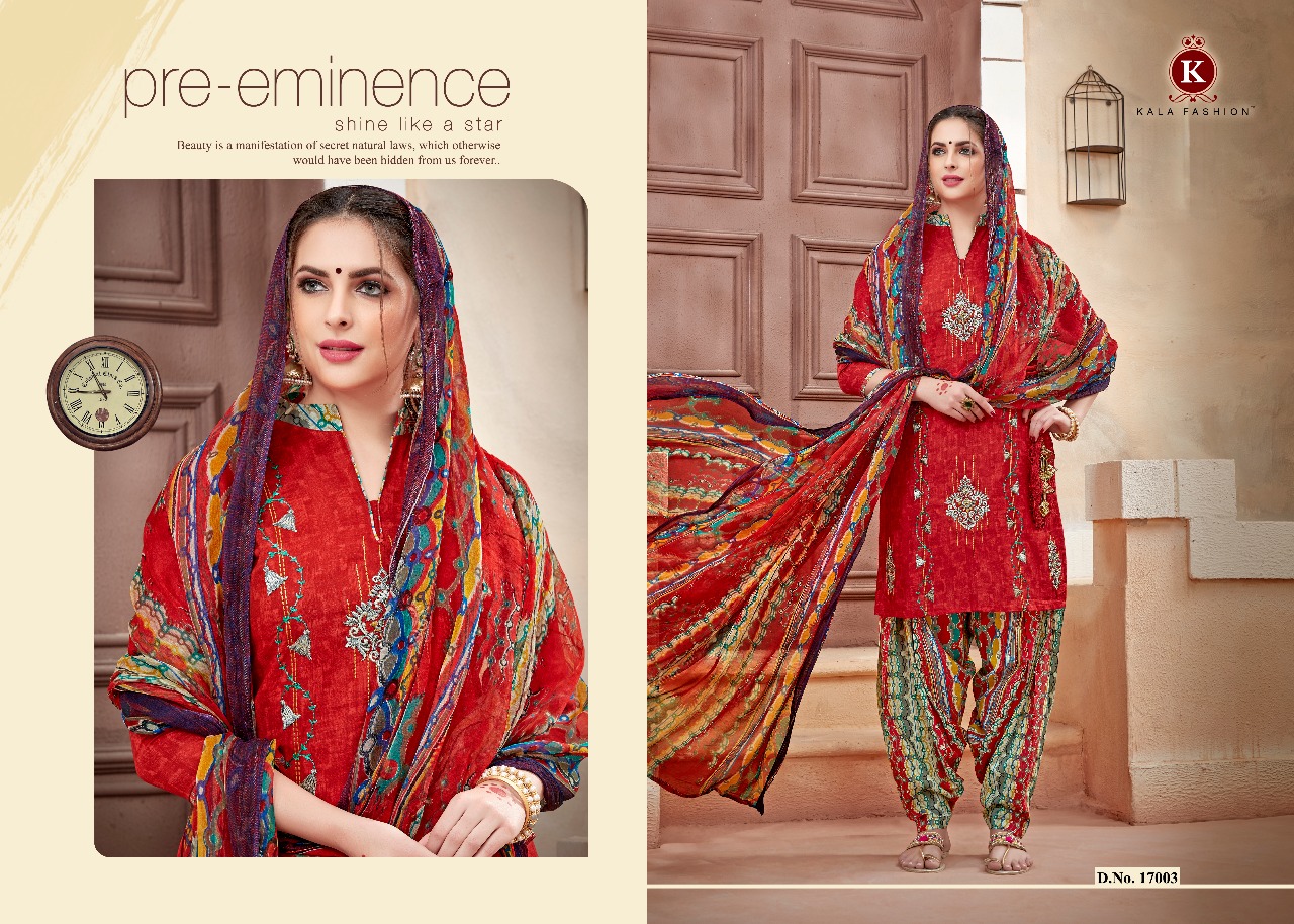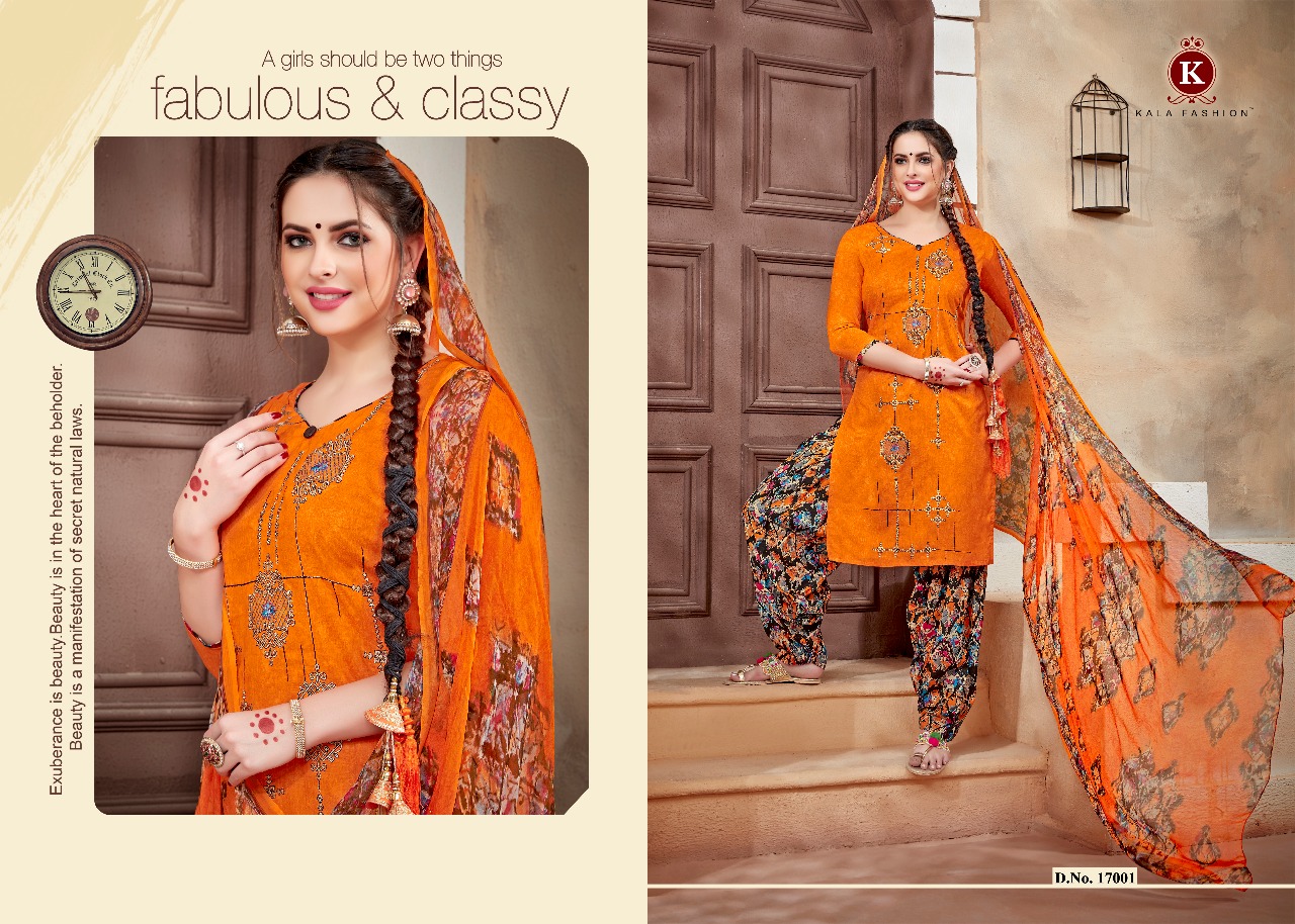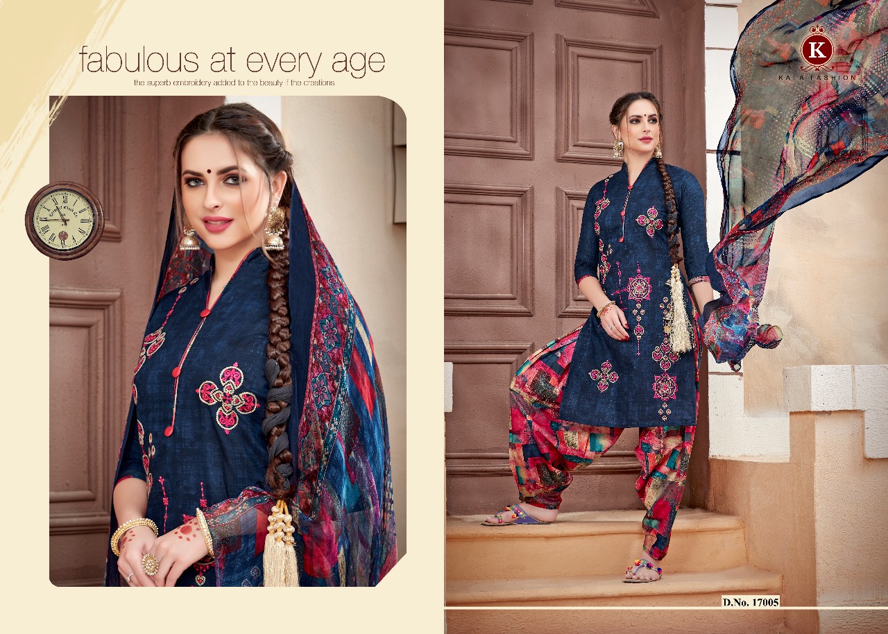 Kala Fashion Ishqbaaz 17001 Series Cotton Print Emb Patiala Suit Wholesale Dealer And Supplier Surat