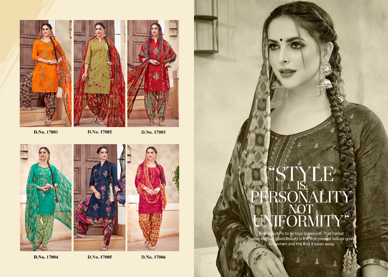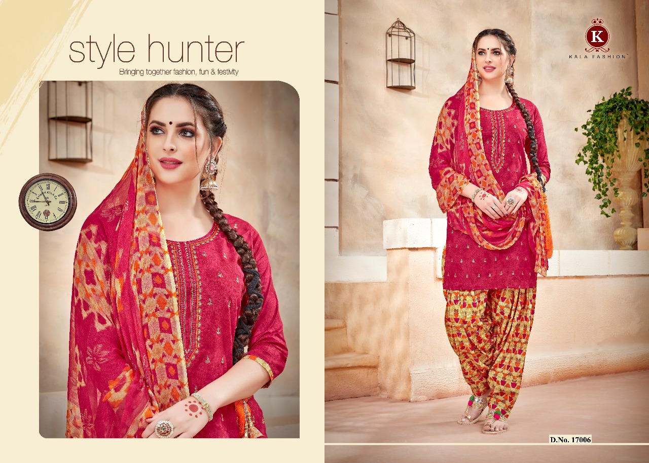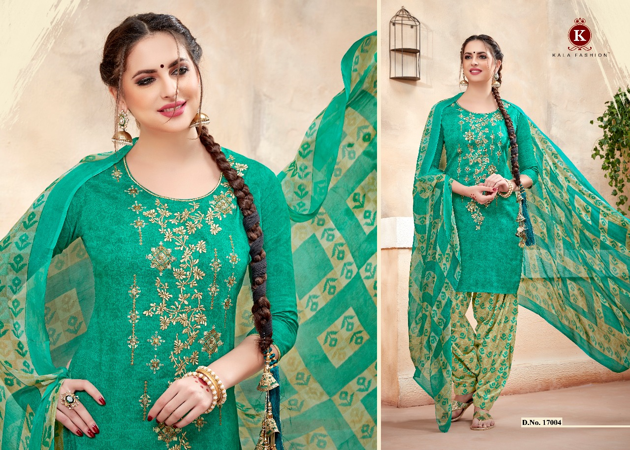 Buy Online Kala Fashion Ishqbaaz 17001 Series Cotton Print Emb Patiala Suit Wholesale Dealer And Supplier Surat 6 Pcs of Full Catalogue at Wholesale Price. Looking for Kala Fashion Ishqbaaz 17001 Series Cotton Print Emb Patiala Suit Wholesale Dealer And Supplier Surat Full Catalouge at Best Price? Buy Now Kala Fashion Ishqbaaz 17001 Series Cotton Print Emb Patiala Suit Wholesale Dealer And Supplier Surat at Wholesale Rate of Rs 4446 with Total 6 Pcs from authroized dealer and supplier of KALA FASHIONS Brand. Cost of Each piece is just only Rs 741 which is very low and affordable price to resale the product in your retail store ,This is Surat based Wholesale Supplier & Dealer of KALA FASHIONS Brand. Click on Brand name to Know more about KALA FASHIONS Brand's products.Call or Whatsapp on 9898838984 for booking or enquiry