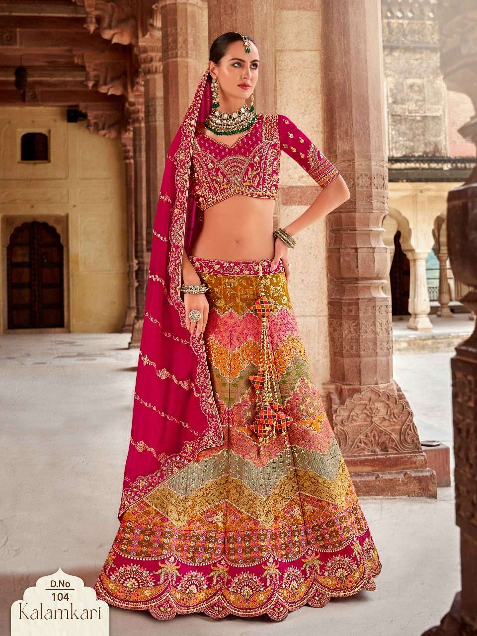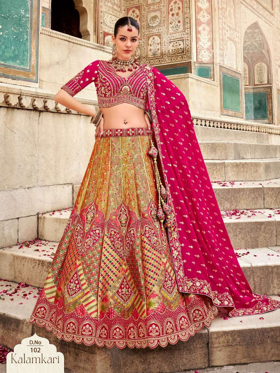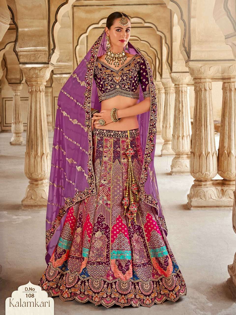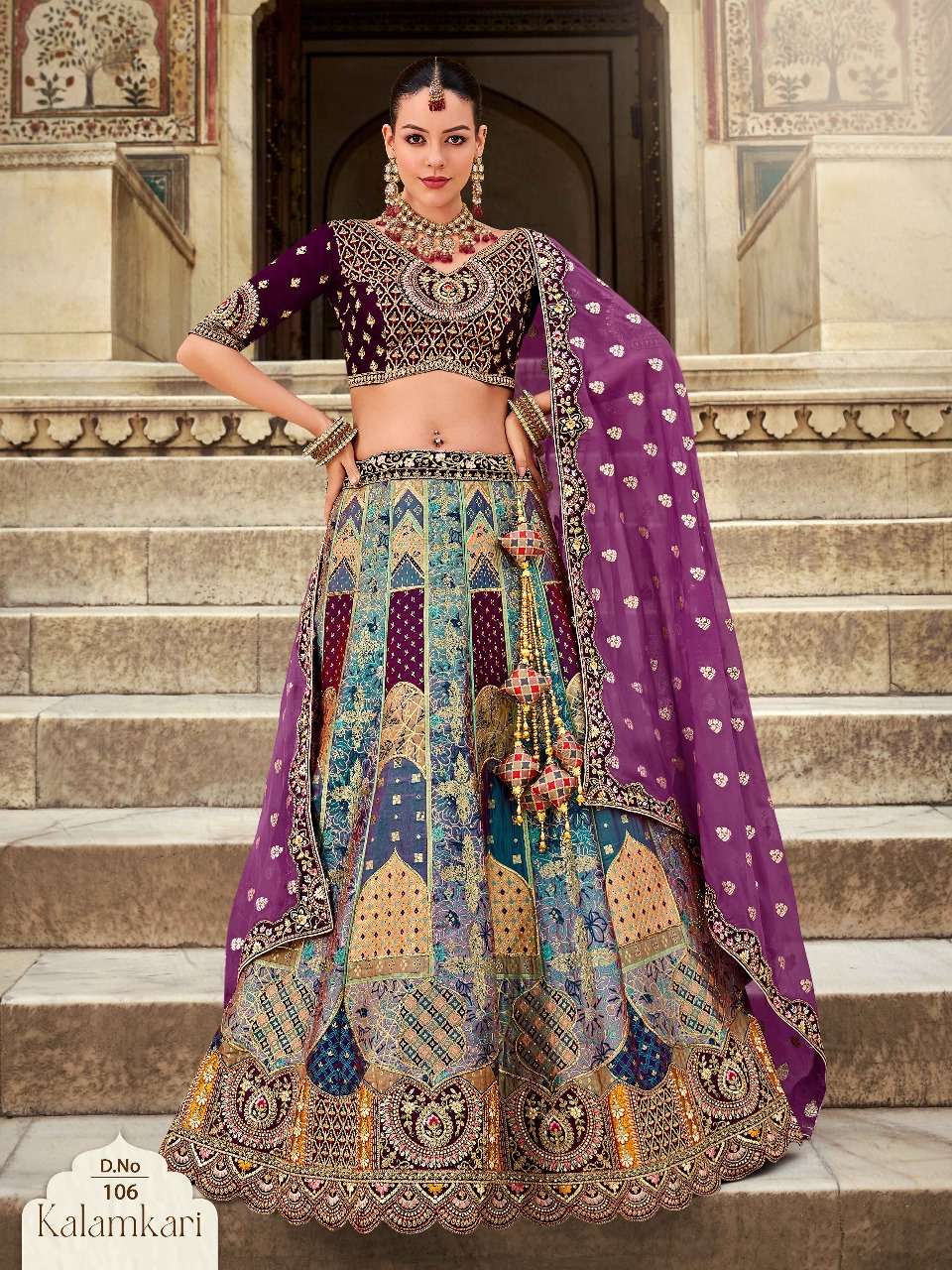 Brand-Surshyam fashion surat Catlogue name-kalamkari series-101 to 110 Banarasi silk Semi-Stitched Lehenga choli Rate 8995/- Gst tax 12% extra Lehenga-Banarasi silk with zarkan |