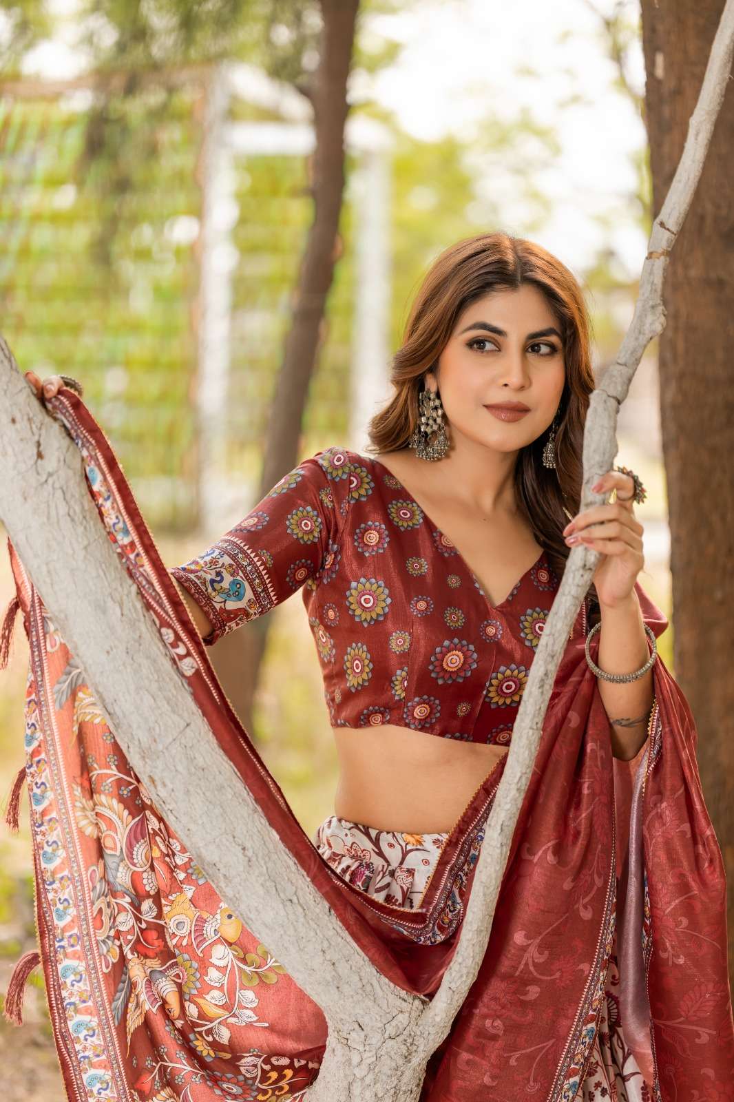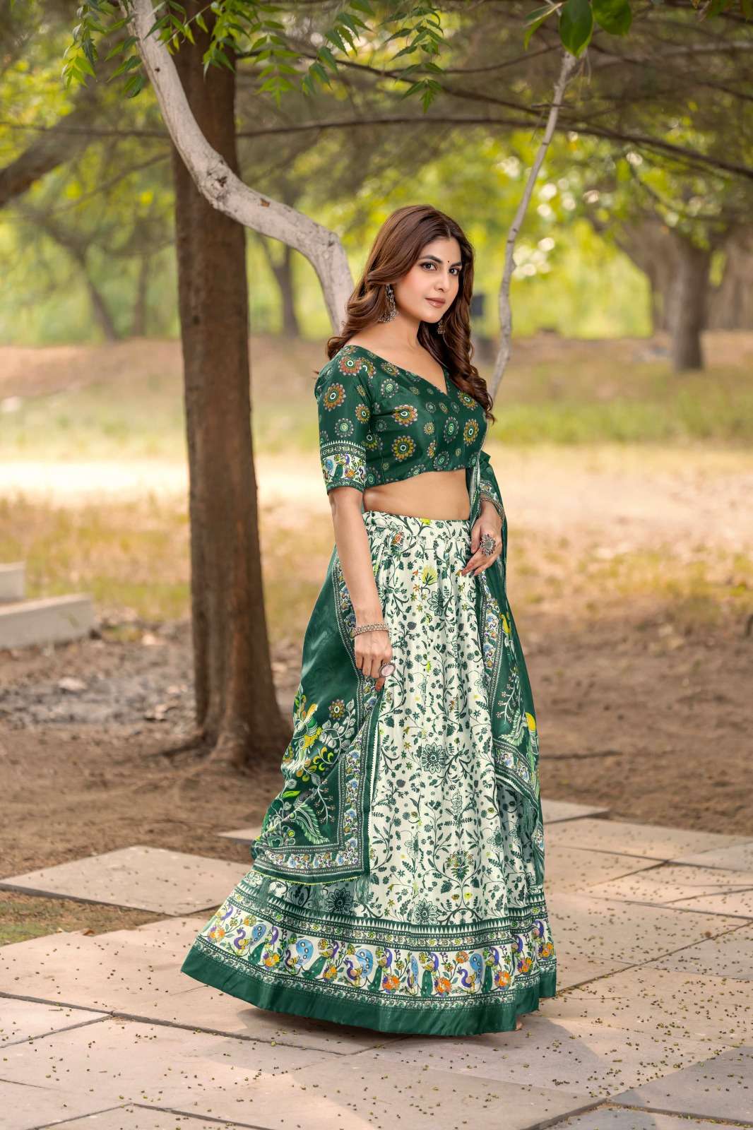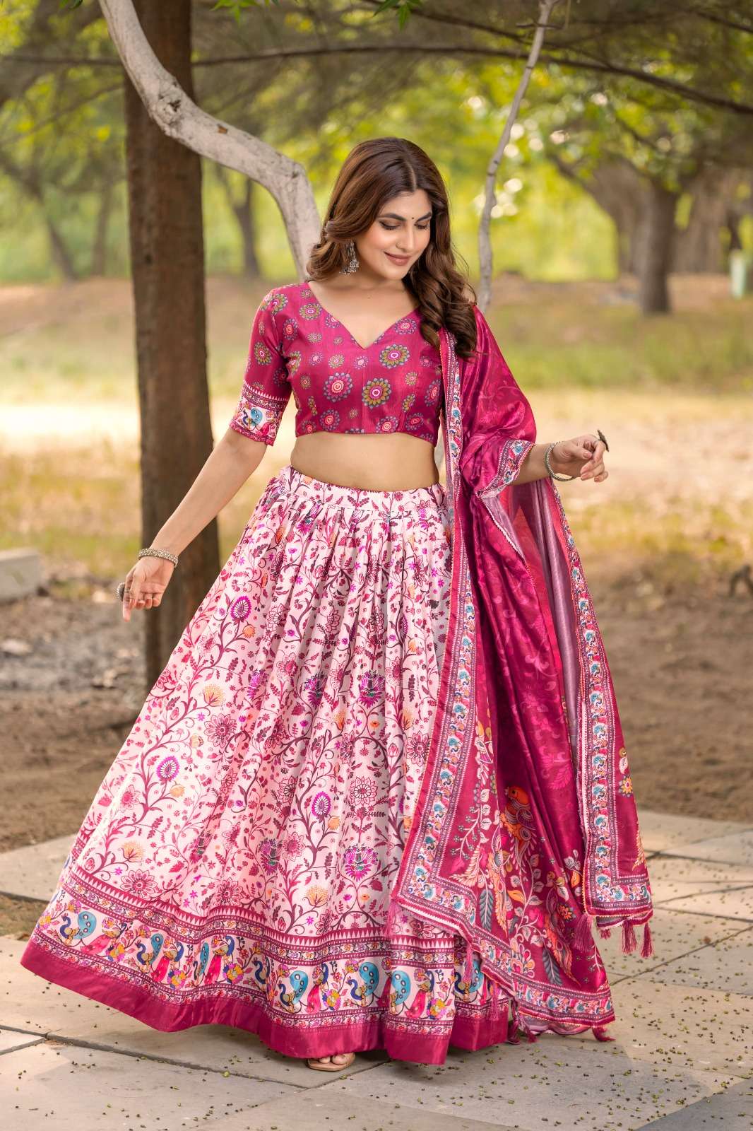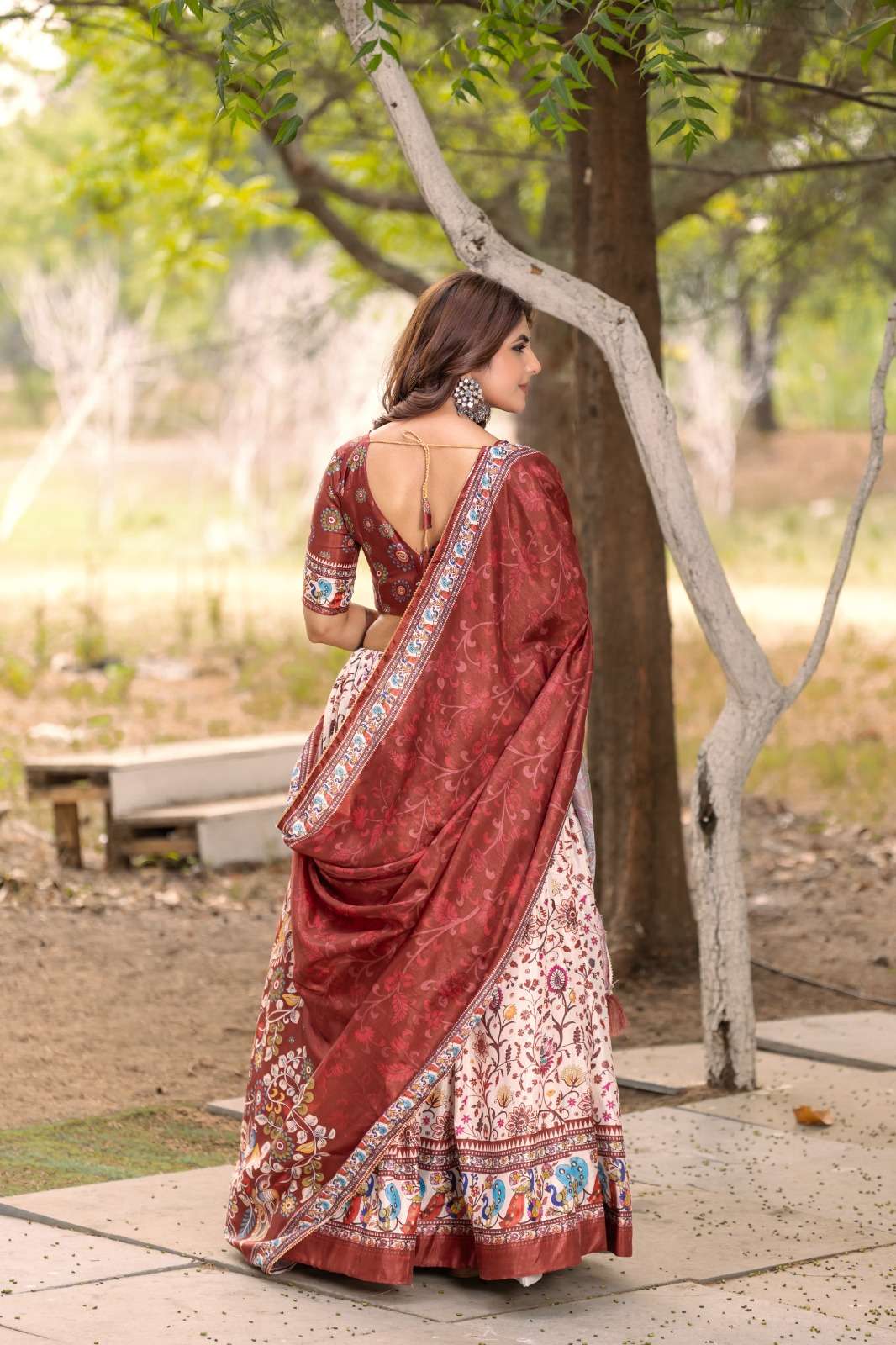 👗*New Exclusive Kalamkari Flower Semi Stitched Printed Silk Lehenga Choli Collection*👗