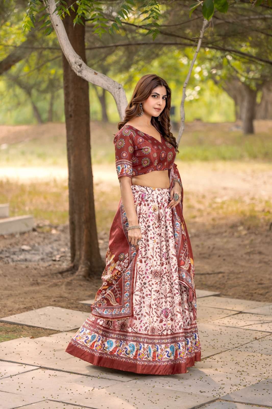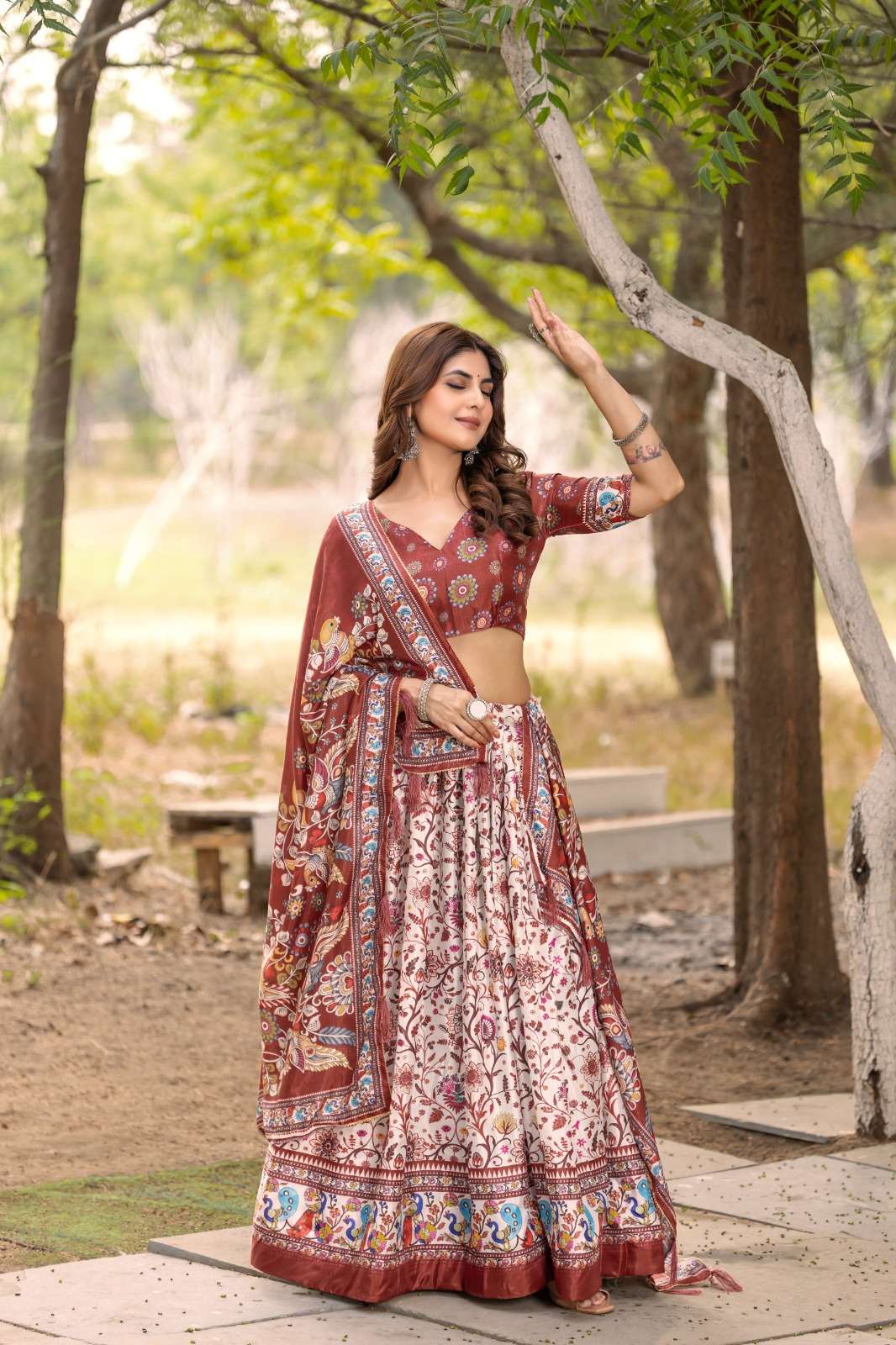 Kalamkari Dola Silk lehenga choli collection manufacturer surat