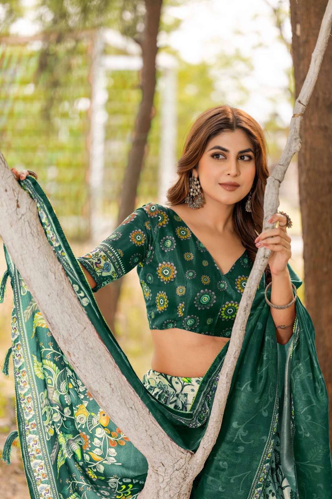 *Blouse (Unstitched)* Blouse fabric : Dola Silk Blouse Work : Printed (Kalamkari) Blouse Length : 0.90 Meter