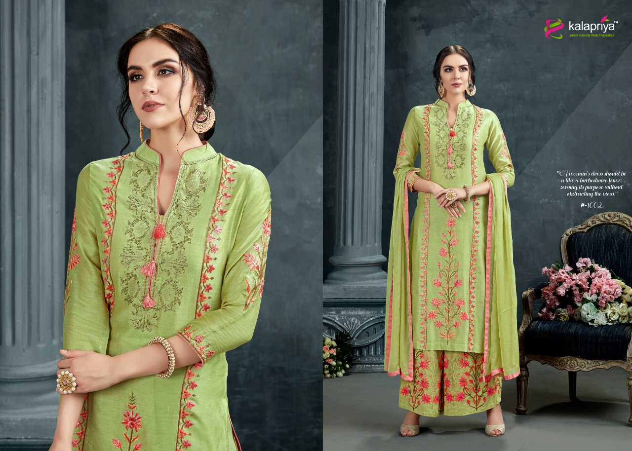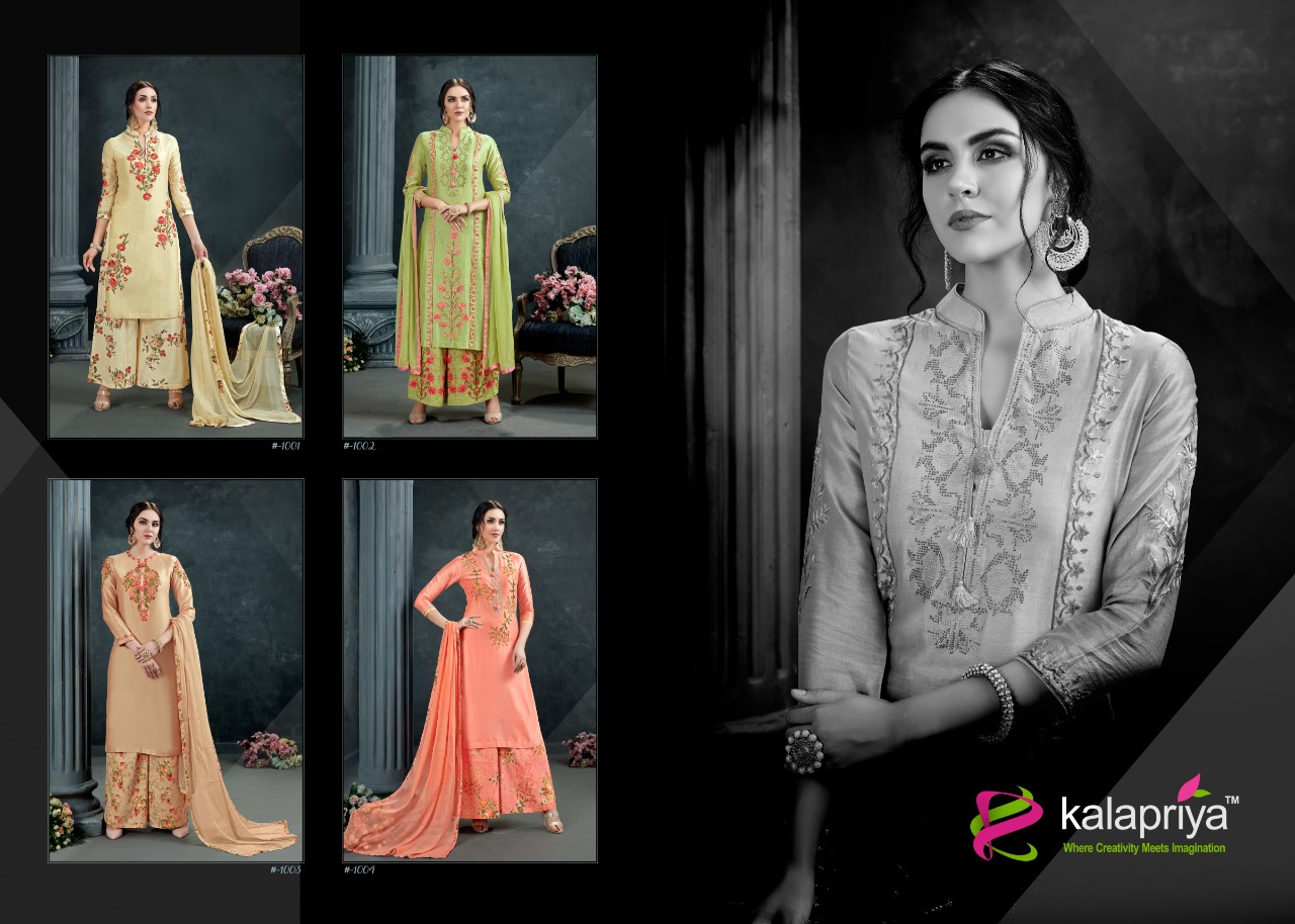 Buy Online Kalapriya Iktar 1001 Series Jam Silk Salwar Kameez Catlog Wholesale Dealer And Supplier Surat 4 Pcs of Full Catalogue at Wholesale Price. Looking for Kalapriya Iktar 1001 Series Jam Silk Salwar Kameez Catlog Wholesale Dealer And Supplier Surat Full Catalouge at Best Price? Buy Now Kalapriya Iktar 1001 Series Jam Silk Salwar Kameez Catlog Wholesale Dealer And Supplier Surat at Wholesale Rate of Rs 3580 with Total 4 Pcs from authroized dealer and supplier of KALAPRIYA Brand. Cost of Each piece is just only Rs 895 which is very low and affordable price to resale the product in your retail store ,This is Surat based Wholesale Supplier & Dealer of KALAPRIYA Brand. Click on Brand name to Know more about KALAPRIYA Brand's products.Call or Whatsapp on 9898838984 for booking or enquiry