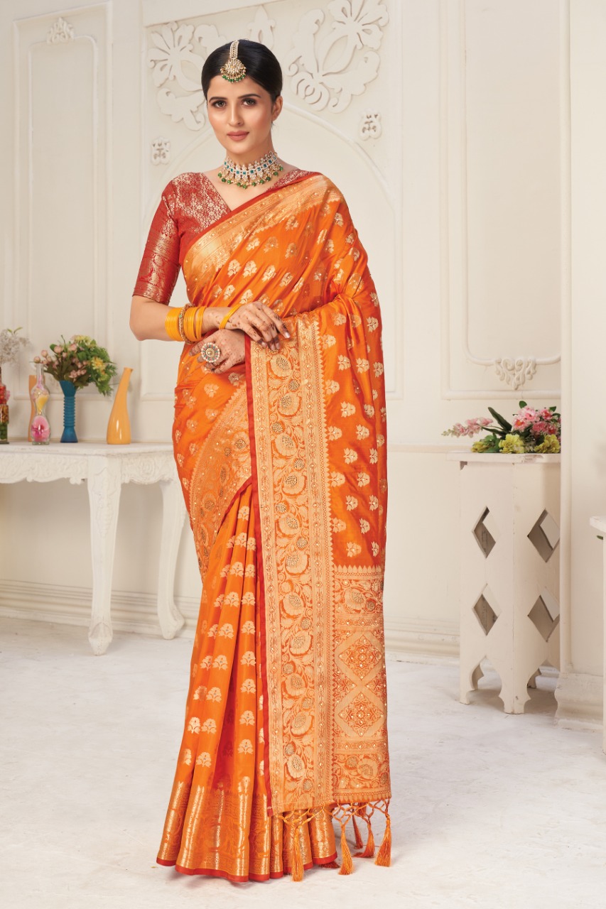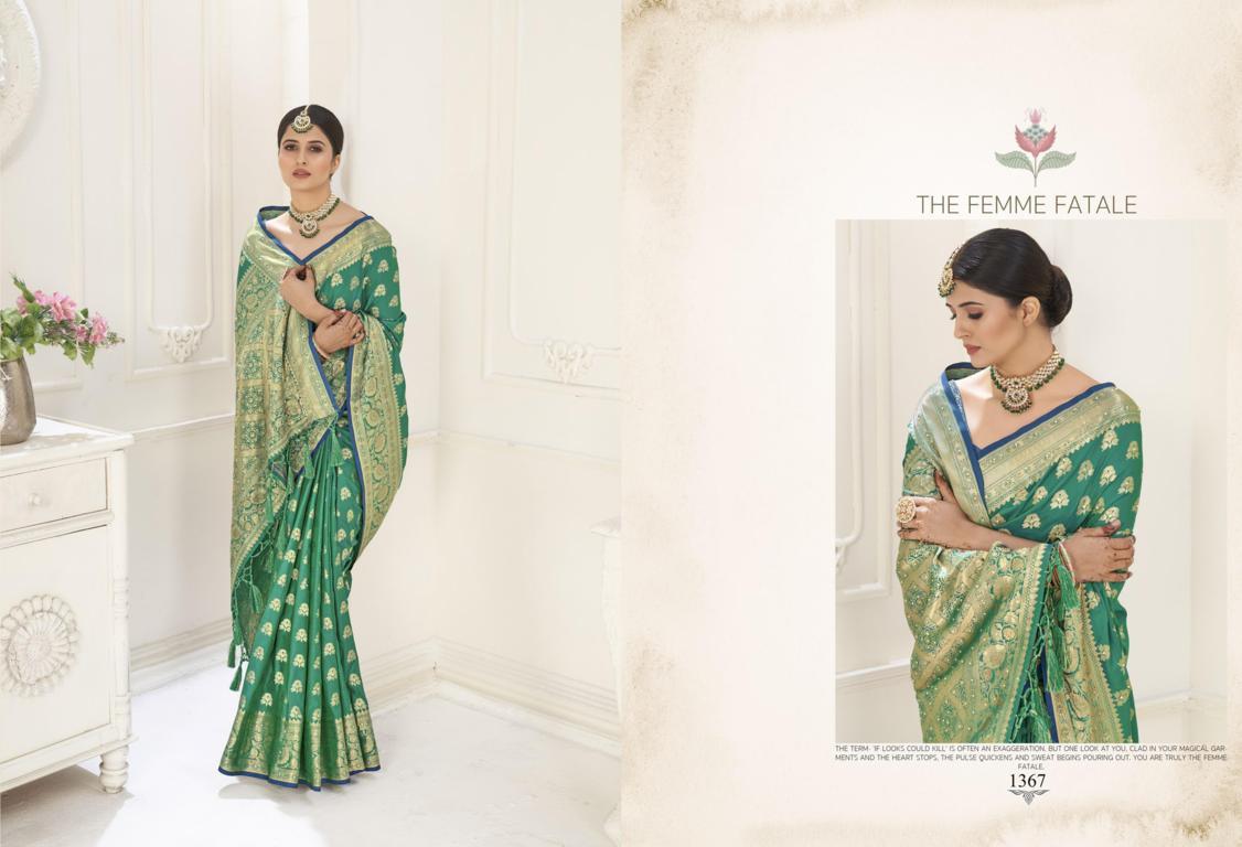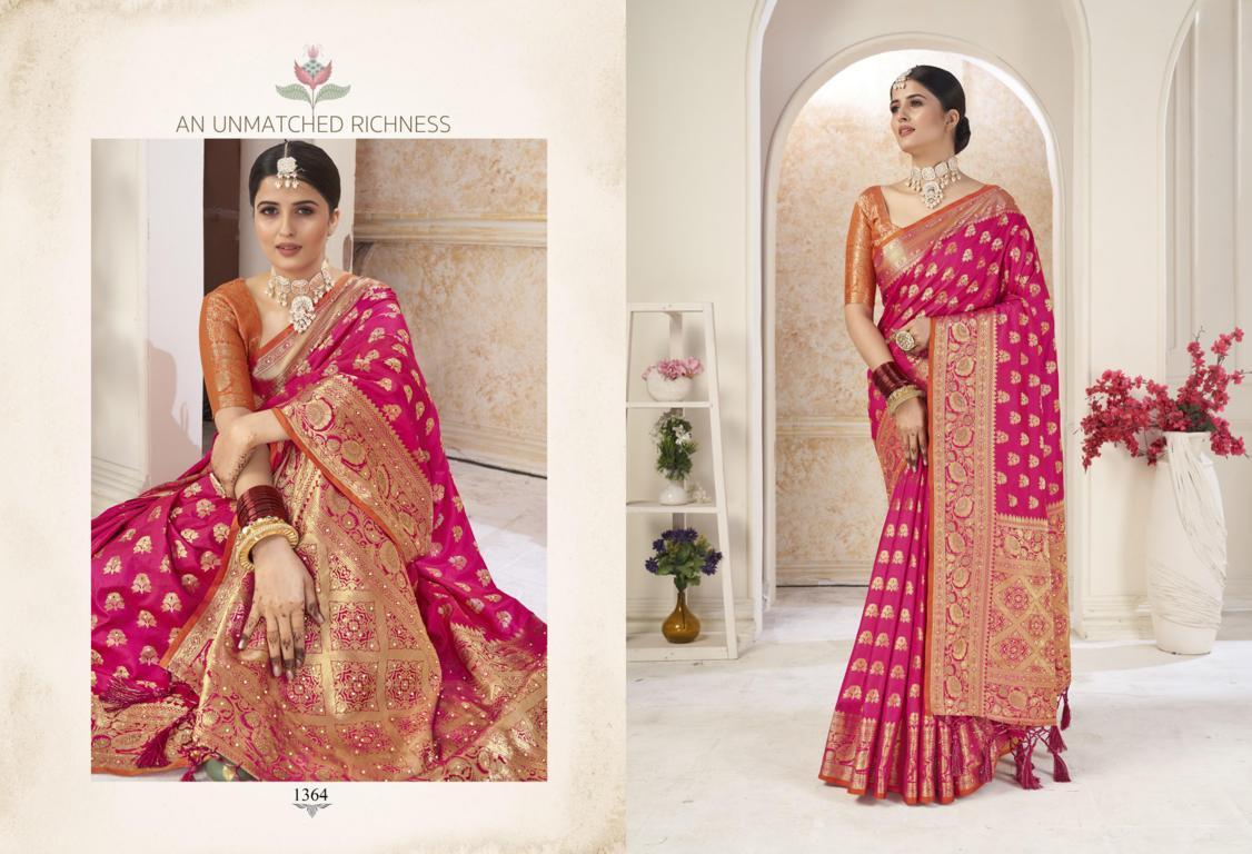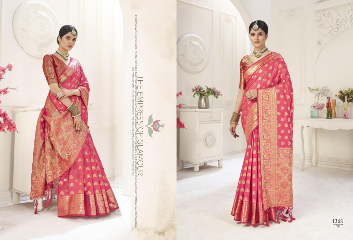 Catalog Name: *_Kalavati_* Brand: *_Sangam Prints_* Product Type: Saree Fabric: Banarasi Silk Price Per Piece: 1695/- Gst Extra: 5% Work: Swaroski Stone Work Other Specifications: Zari Woven Saree Mtr: 5.5 Mtr Blouse: 0.8 Mtr Total Pcs: 6 *_Book your orders now_* |