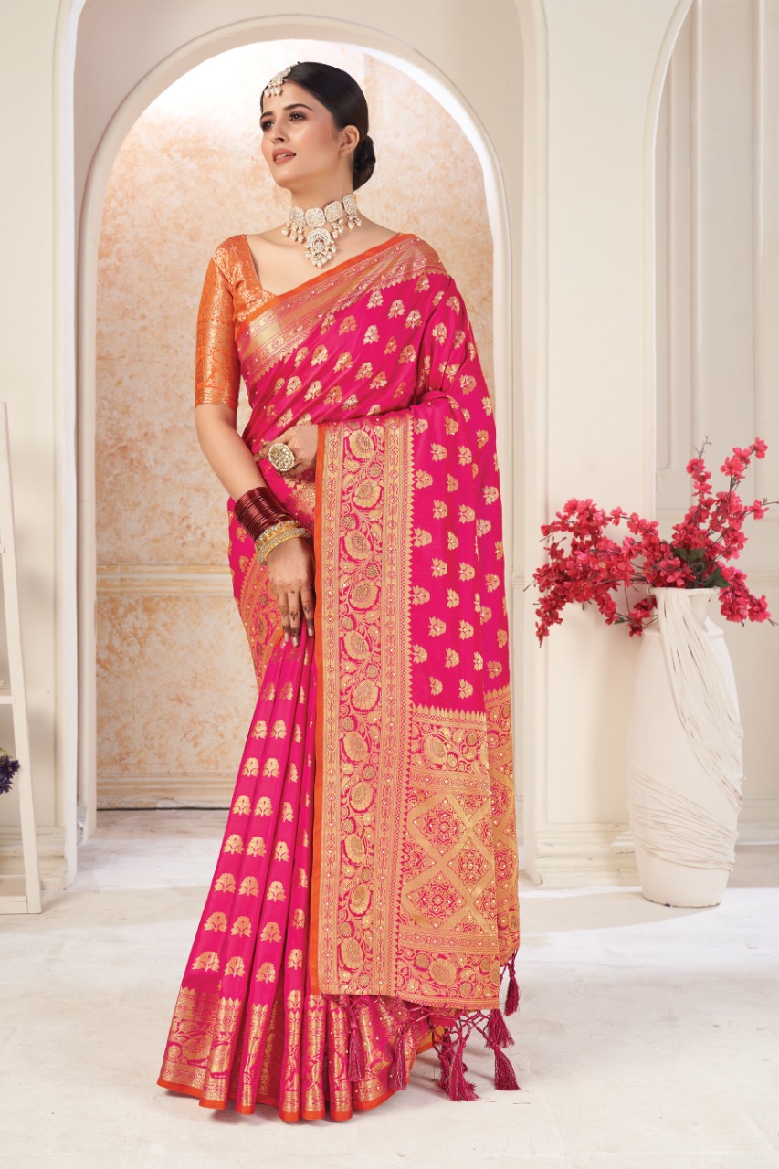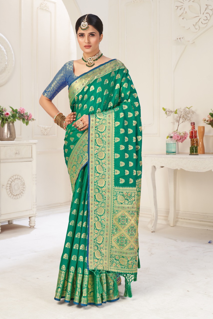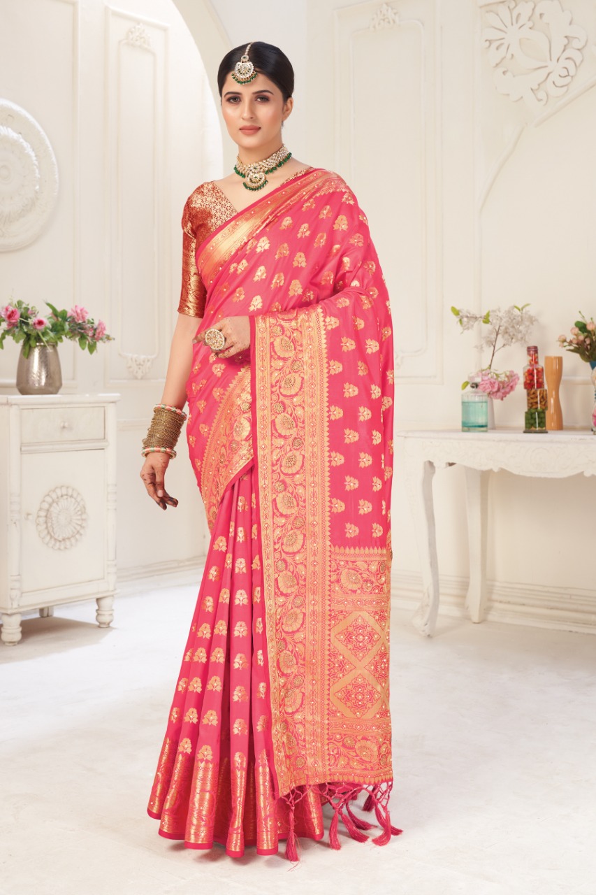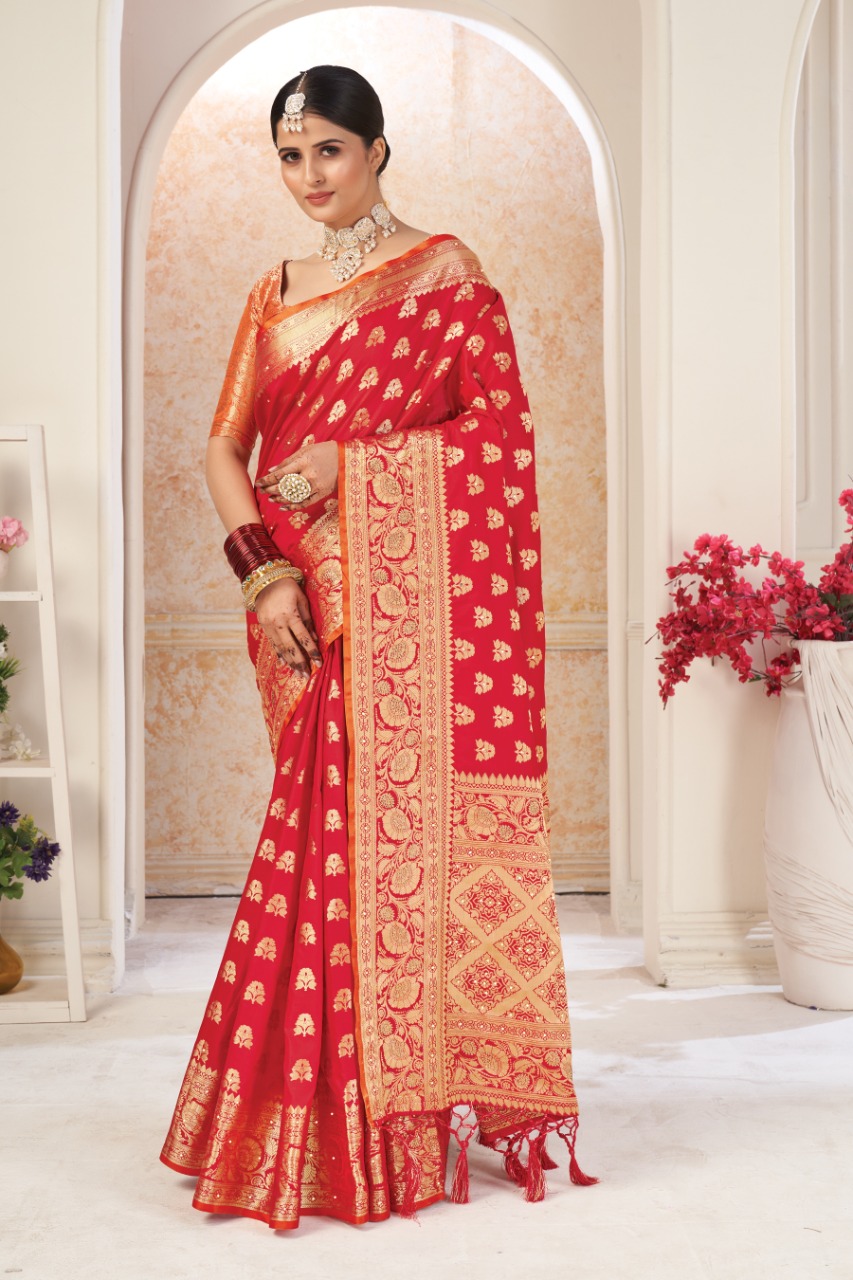 Catalog Name: *_Kalavati_* Brand: *_Sangam Prints_* Product Type: Saree Fabric: Banarasi Silk Price Per Piece: 1695/- Gst Extra: 5% Work: Swaroski Stone Work Other Specifications: Zari Woven Saree Mtr: 5.5 Mtr Blouse: 0.8 Mtr Total Pcs: 6 *_Book your orders now_* |