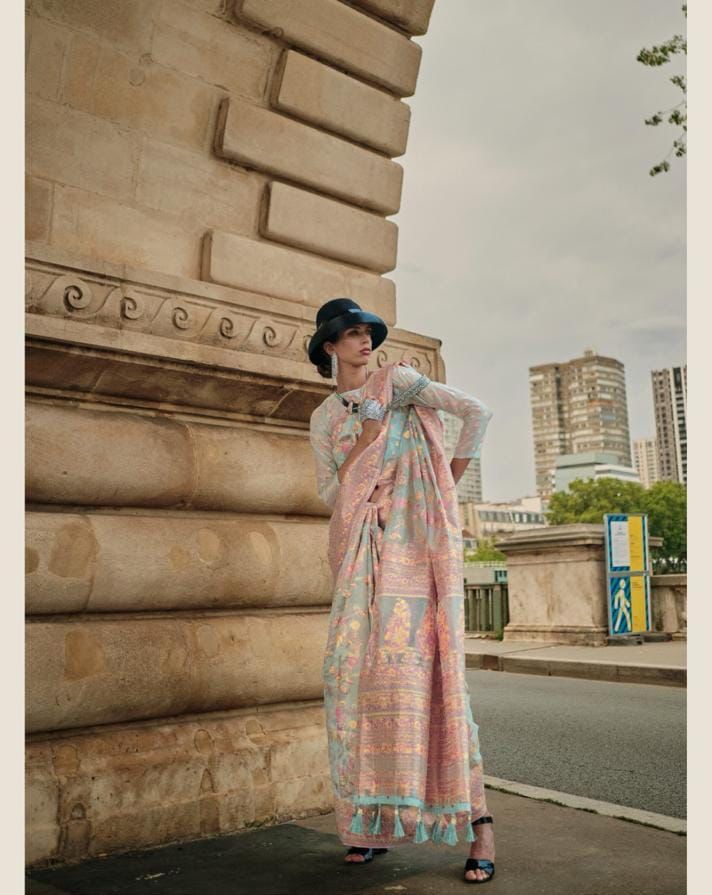 *Present Pashmina Weaved Sarees* Festival Wear *CATALOG NAME : KALILA SILK* *DETAIL*: Kashmiri Weaving Sarees *Fabric Specifications:-* *Kashmiri Organza Handloom Weaving* *No.Pieces : 6* *Rate : 1995/-* *+5 % GST* ?Book Fast 100+Singles |