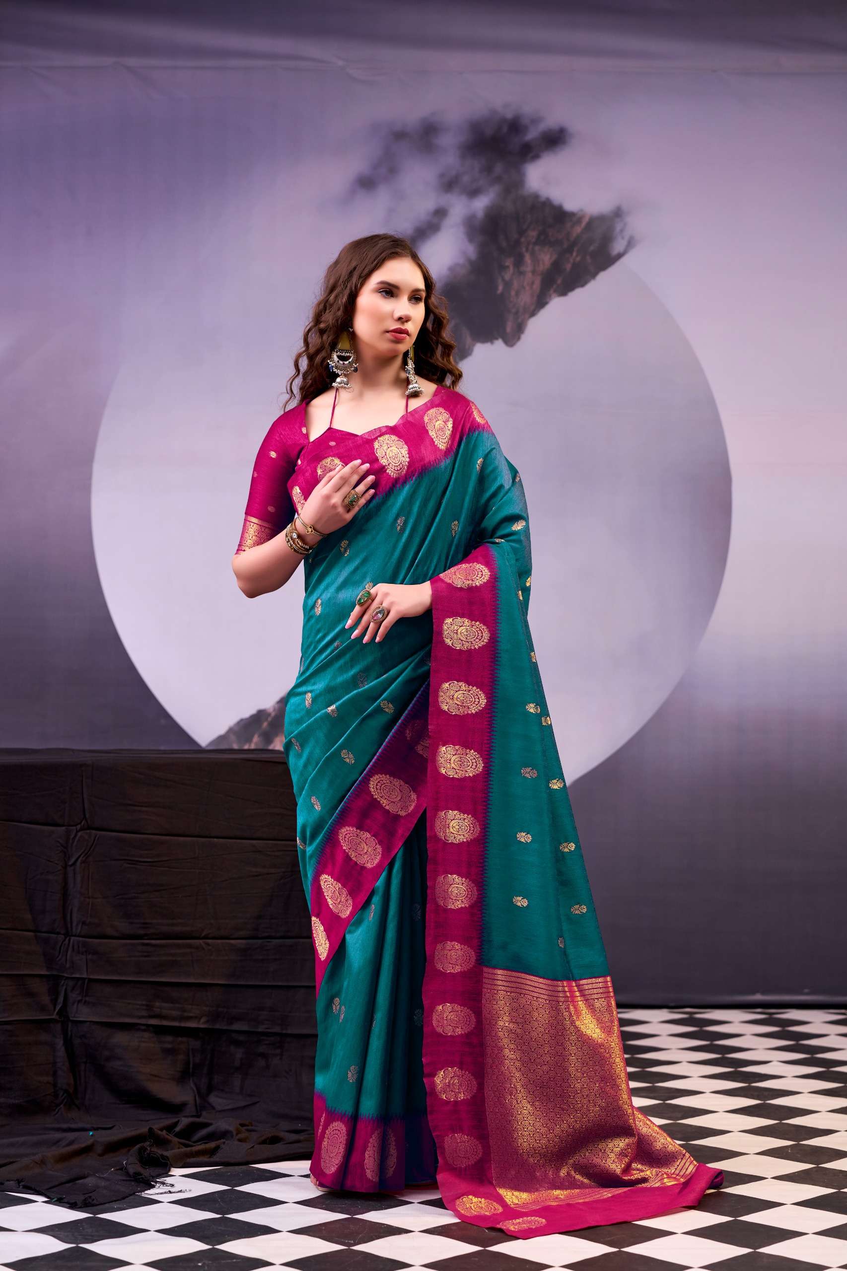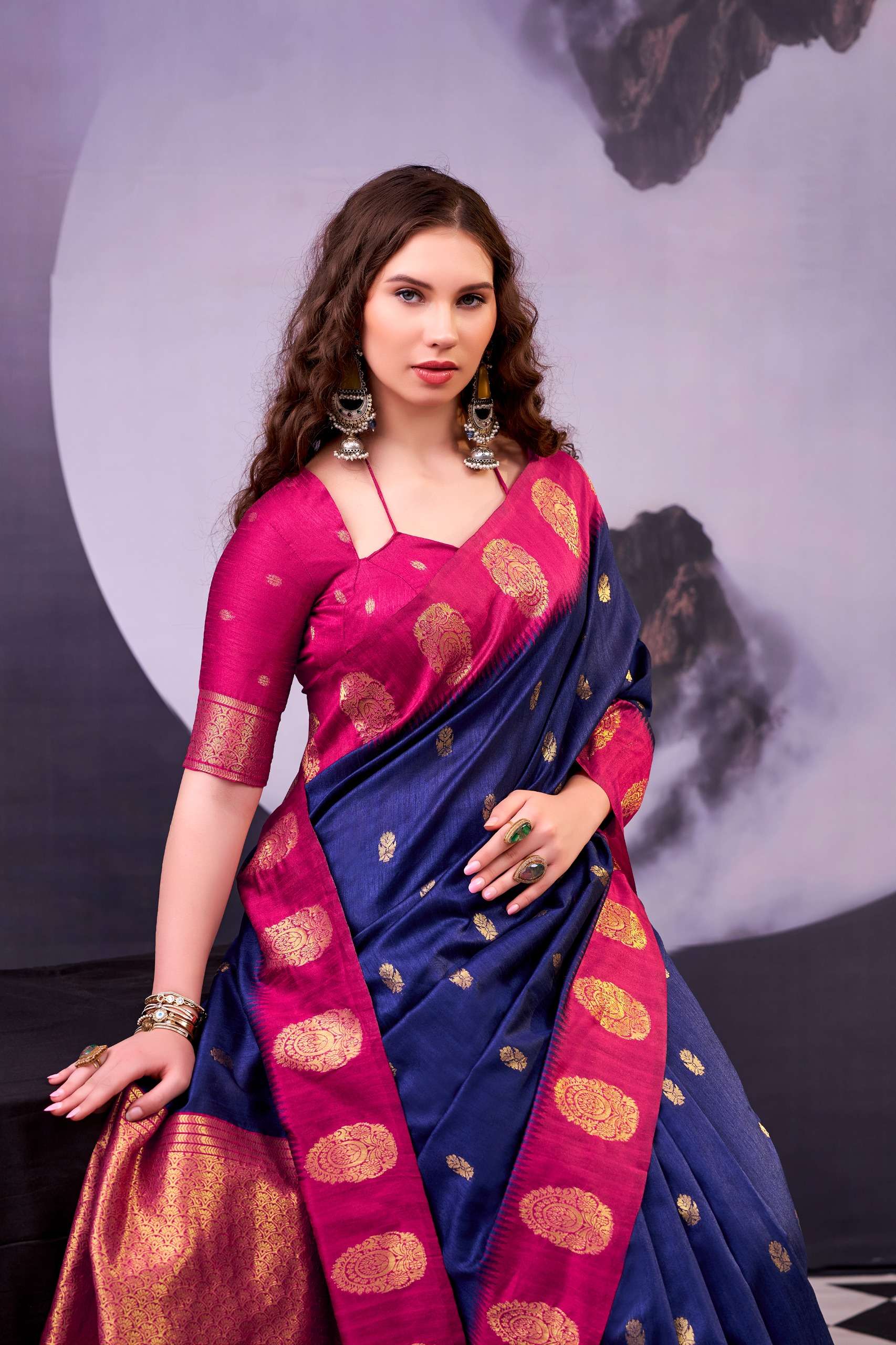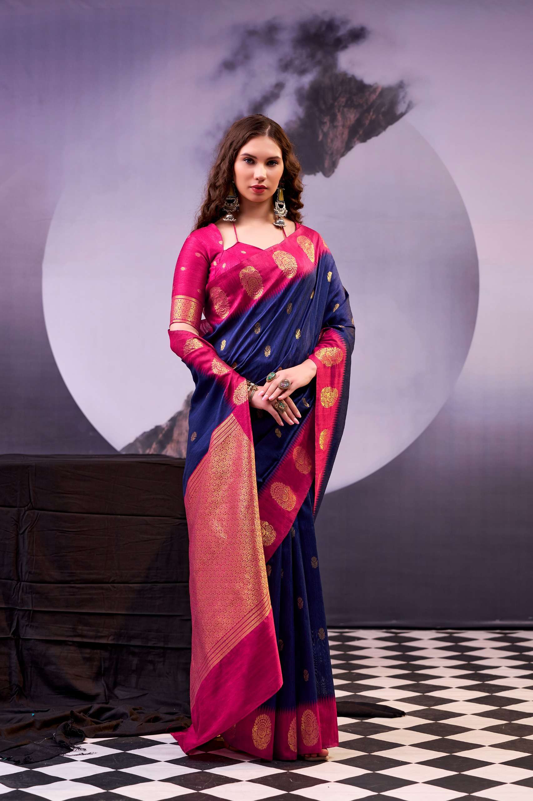 The smooth poly cotton fabric paired with beautiful zari weaving makes this saree a graceful choice for festive and ethnic occasions 🪷