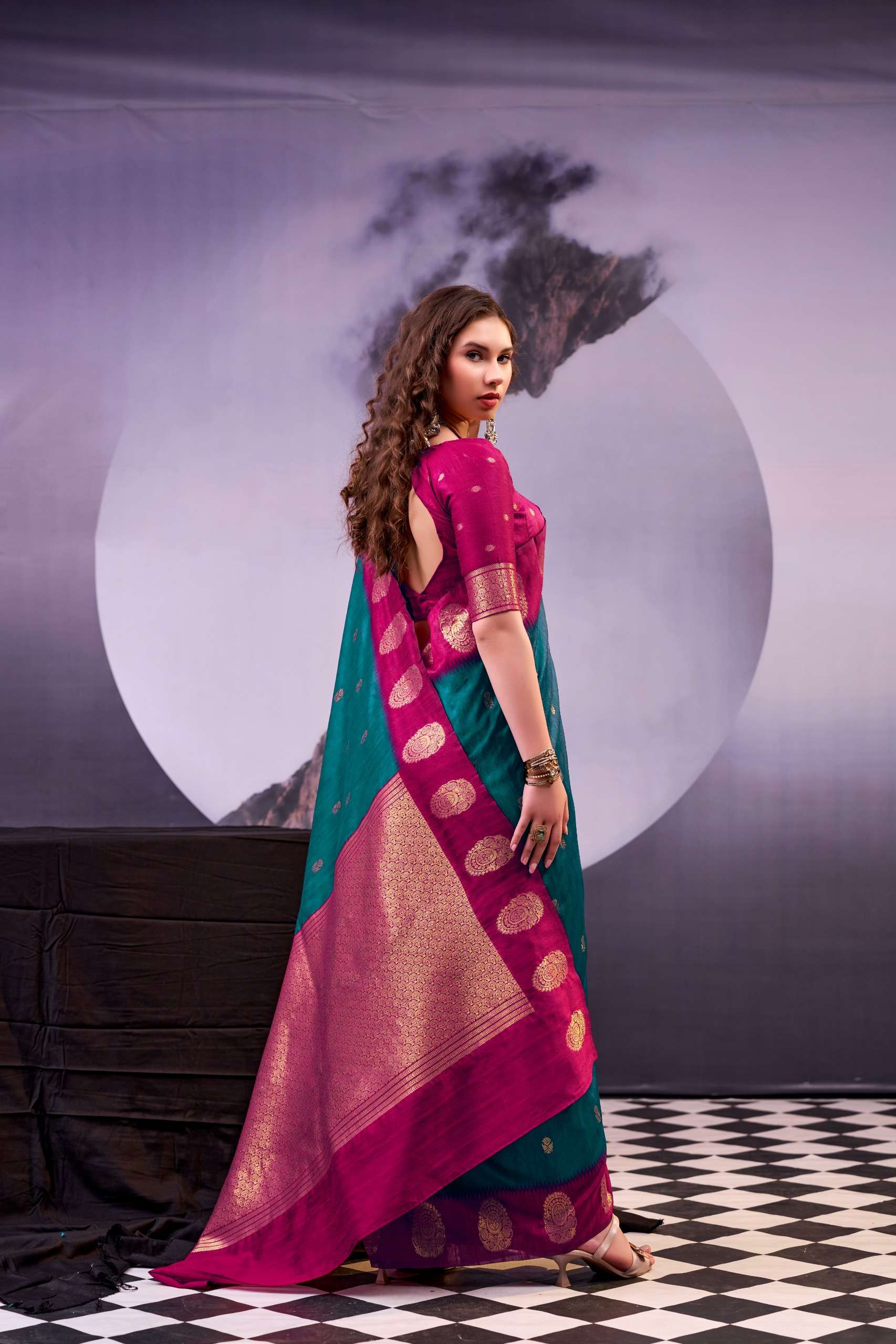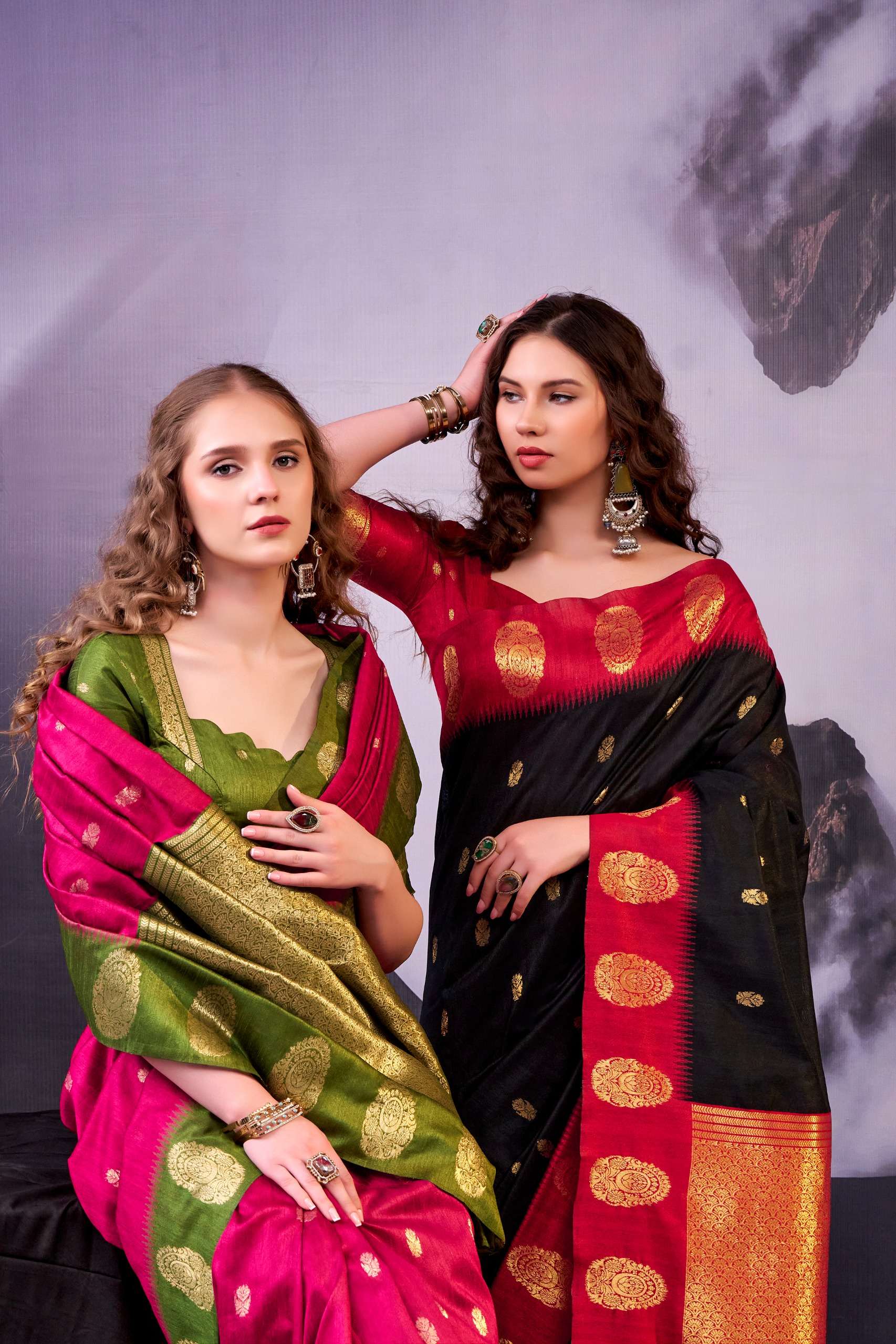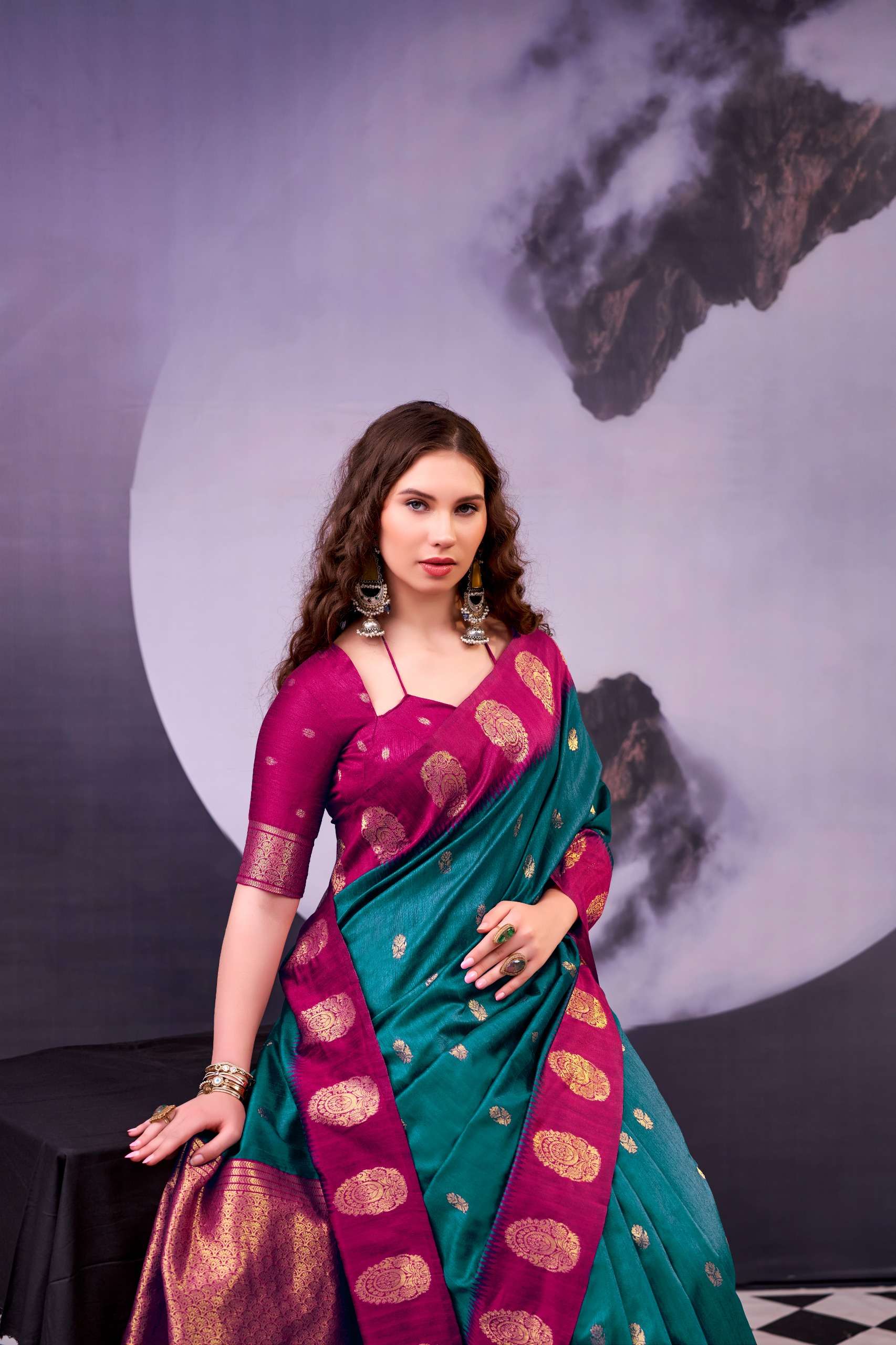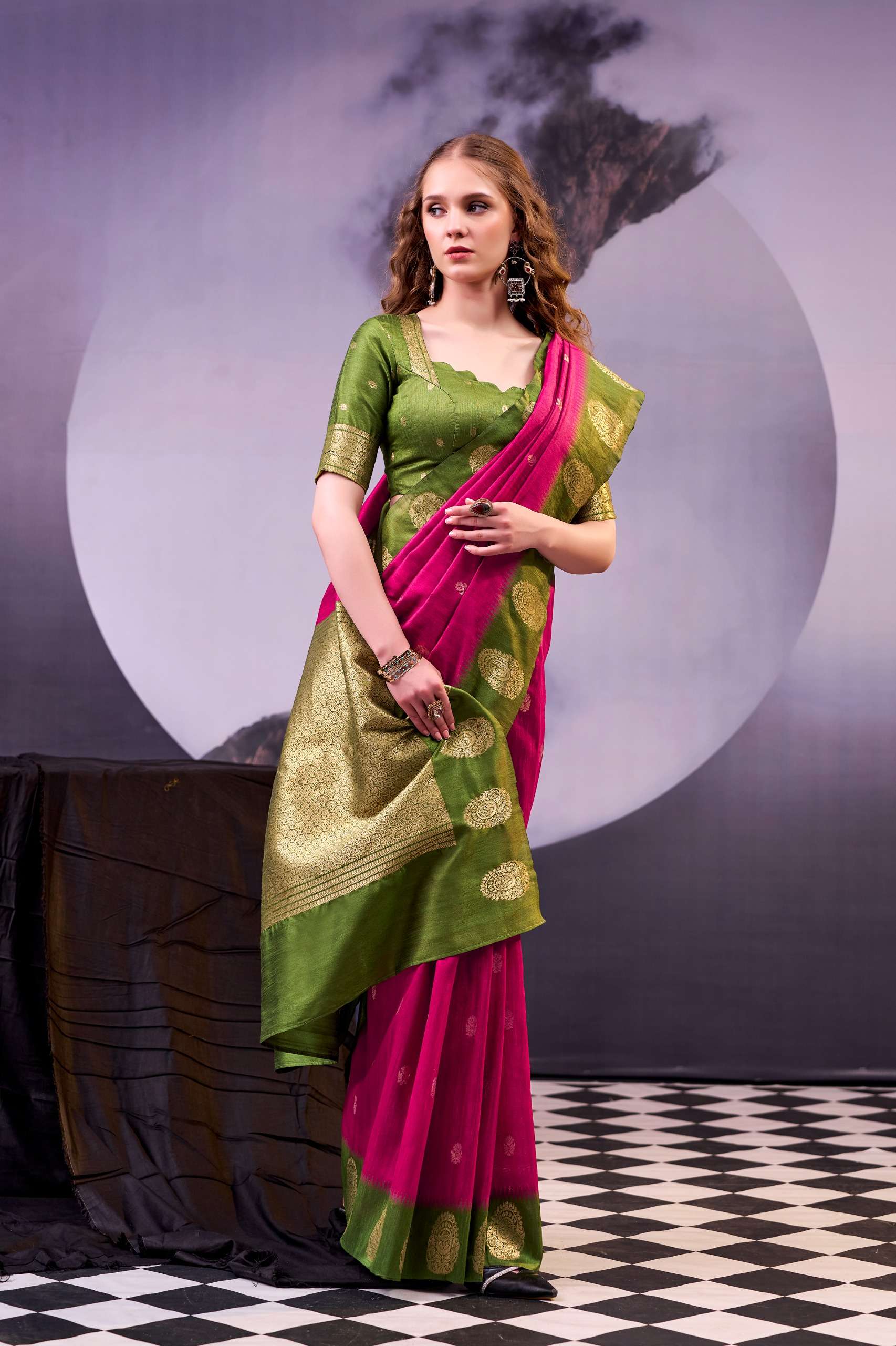 The smooth poly cotton fabric paired with beautiful zari weaving makes this saree a graceful choice for festive and ethnic occasions 🪷