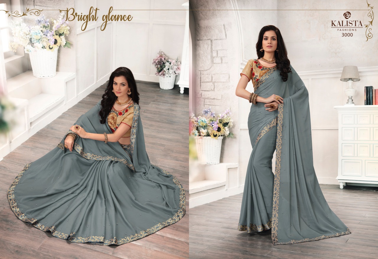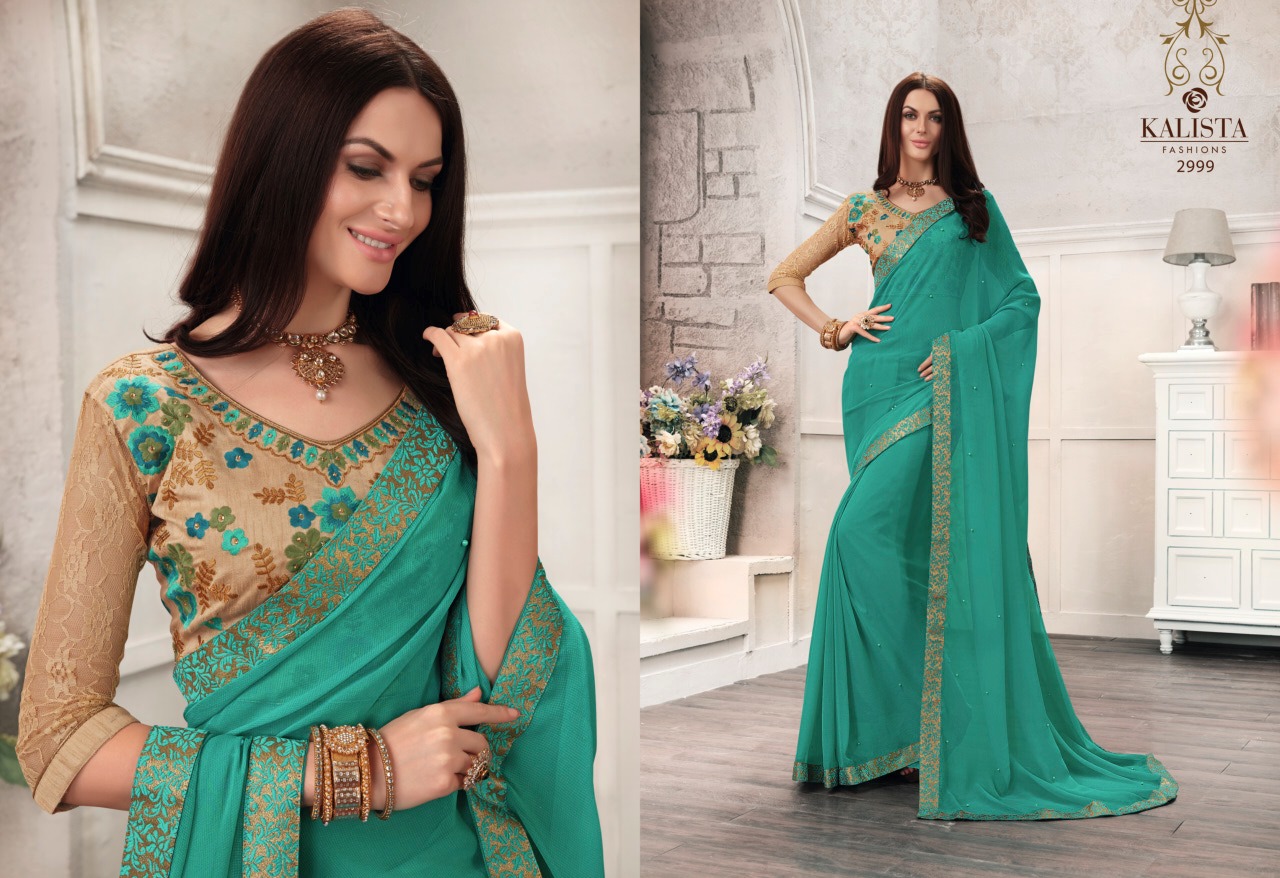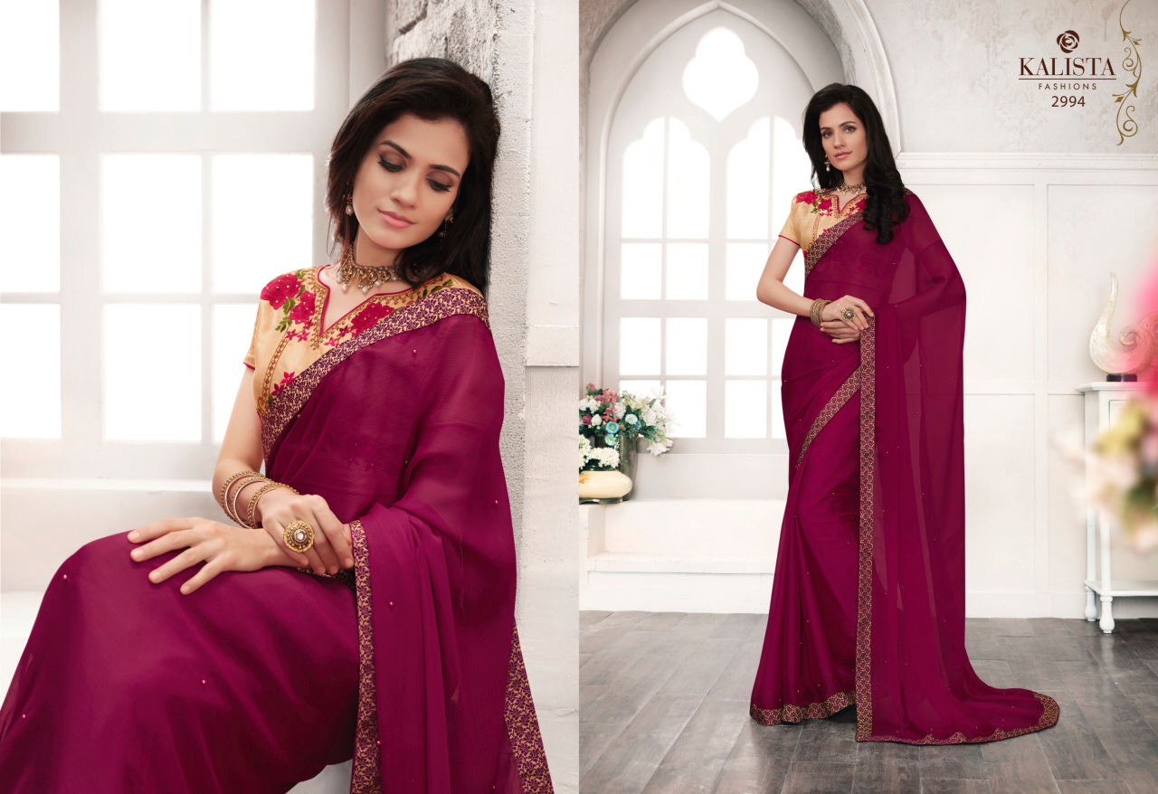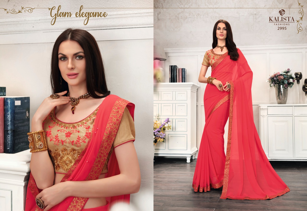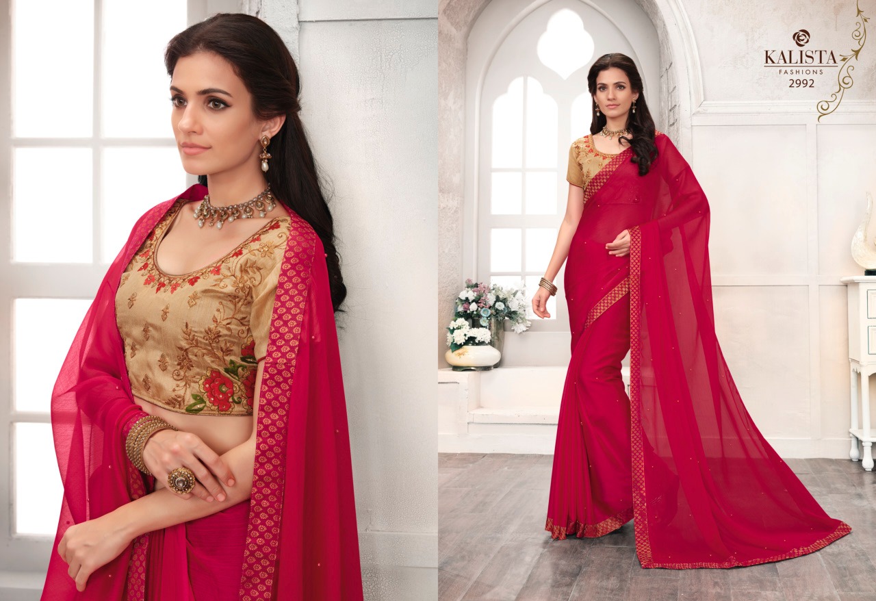 Buy Online Kalista Aanandi 2991 Series Fancy Designer Saree Catlogue 10 Pcs of Full Catalogue at Wholesale Price. Looking for Kalista Aanandi 2991 Series Fancy Designer Saree Catlogue Full Catalouge at Best Price? Buy Now Kalista Aanandi 2991 Series Fancy Designer Saree Catlogue at Wholesale Rate of Rs 5950 with Total 10 Pcs from authroized dealer and supplier of KALISTA FASHION Brand. Cost of Each piece is just only Rs 595 which is very low and affordable price to resale the product in your retail store ,This is Surat based Wholesale Supplier & Dealer of KALISTA FASHION Brand. Click on Brand name to Know more about KALISTA FASHION Brand's products.Call or Whatsapp on 9898838984 for booking or enquiry