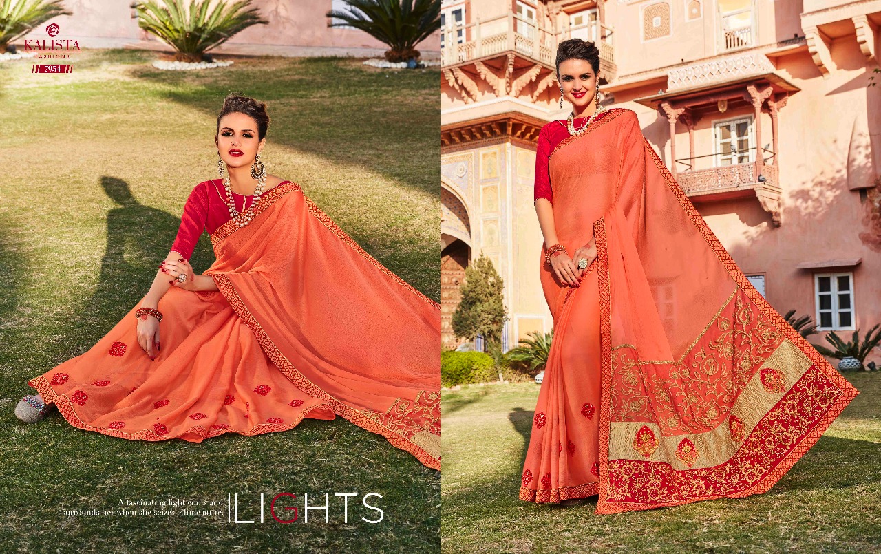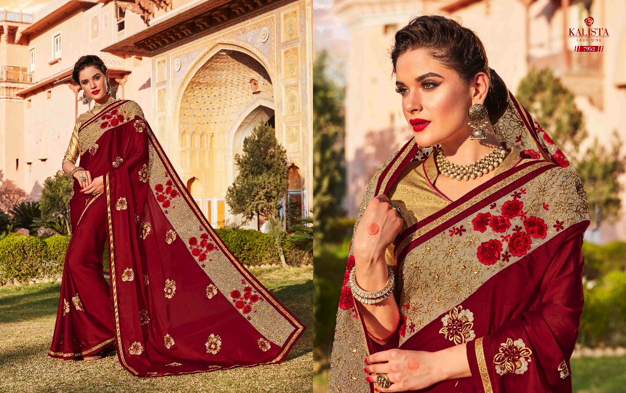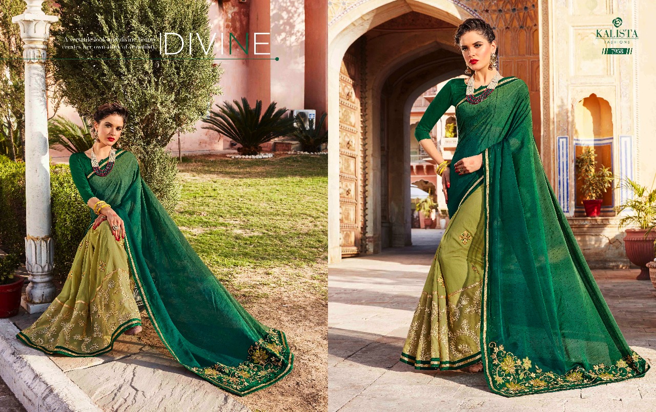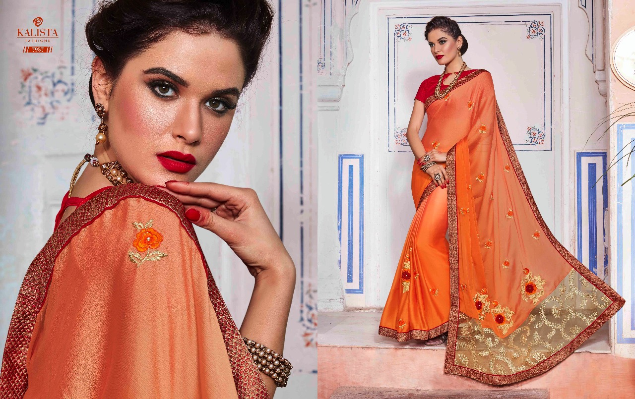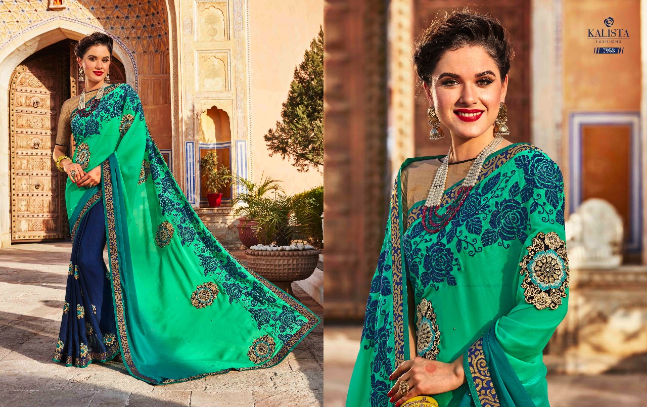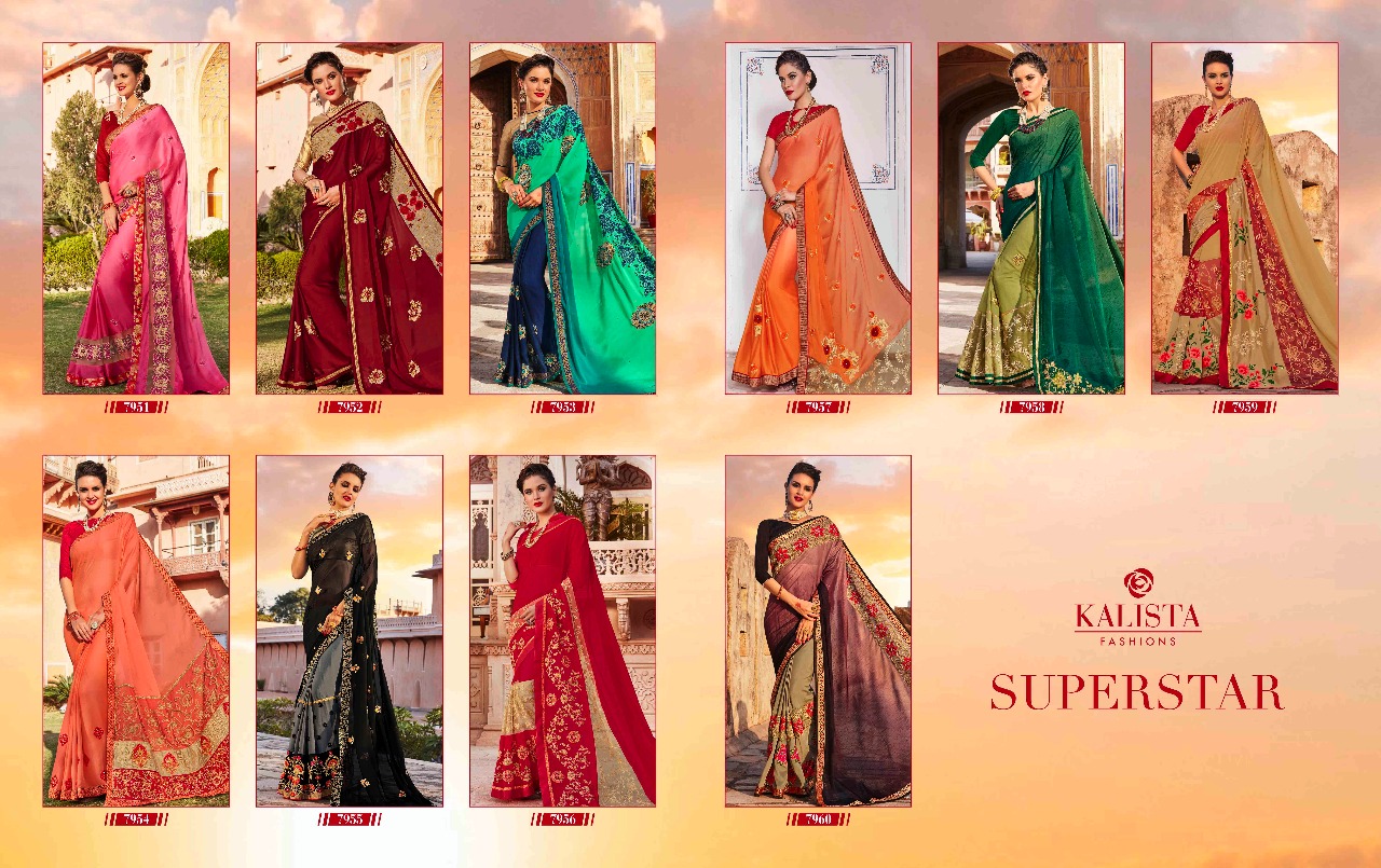Buy Online Kalista Superstar 7951 Series Fancy Party Wear Saree Catlog 10 Pcs of Full Catalogue at Wholesale Price. Looking for Kalista Superstar 7951 Series Fancy Party Wear Saree Catlog Full Catalouge at Best Price? Buy Now Kalista Superstar 7951 Series Fancy Party Wear Saree Catlog at Wholesale Rate of Rs 7750 with Total 10 Pcs from authroized dealer and supplier of KALISTA FASHION Brand. Cost of Each piece is just only Rs 775 which is very low and affordable price to resale the product in your retail store ,This is Surat based Wholesale Supplier & Dealer of KALISTA FASHION Brand. Click on Brand name to Know more about KALISTA FASHION Brand's products.Call or Whatsapp on 9898838984 for booking or enquiry