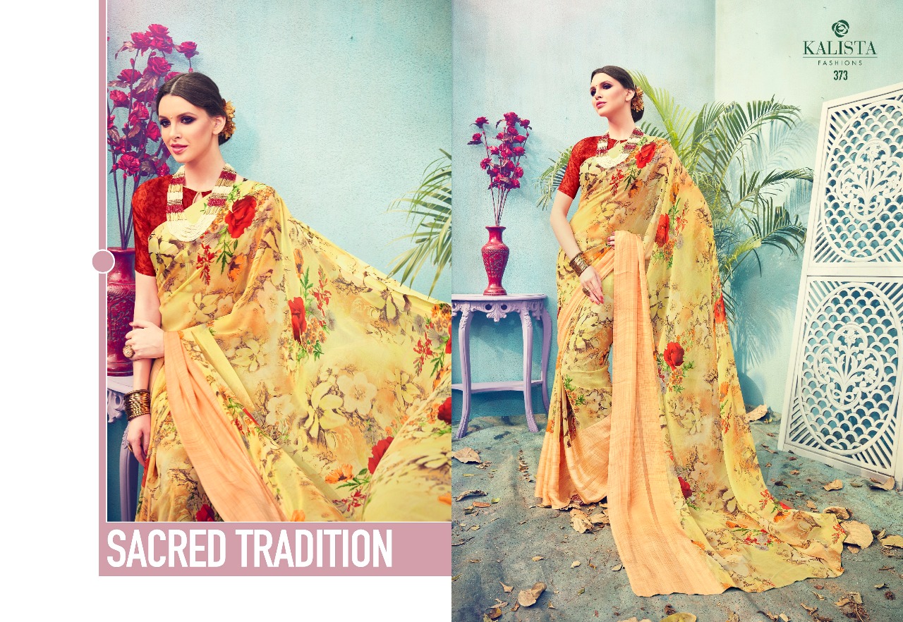 Buy Online Kalista Tulip Collection Vol 3 371 Series Printed Saree Catlog Wholesale Dealer Surat 12 Pcs of Full Catalogue at Wholesale Price. Looking for Kalista Tulip Collection Vol 3 371 Series Printed Saree Catlog Wholesale Dealer Surat Full Catalouge at Best Price? Buy Now Kalista Tulip Collection Vol 3 371 Series Printed Saree Catlog Wholesale Dealer Surat at Wholesale Rate of Rs 7500 with Total 12 Pcs from authroized dealer and supplier of KALISTA FASHION Brand. Cost of Each piece is just only Rs 625 which is very low and affordable price to resale the product in your retail store ,This is Surat based Wholesale Supplier & Dealer of KALISTA FASHION Brand. Click on Brand name to Know more about KALISTA FASHION Brand's products.Call or Whatsapp on 9898838984 for booking or enquiry
