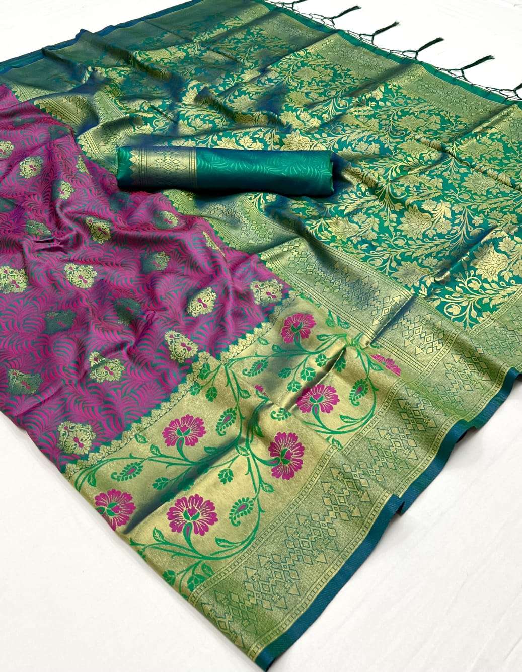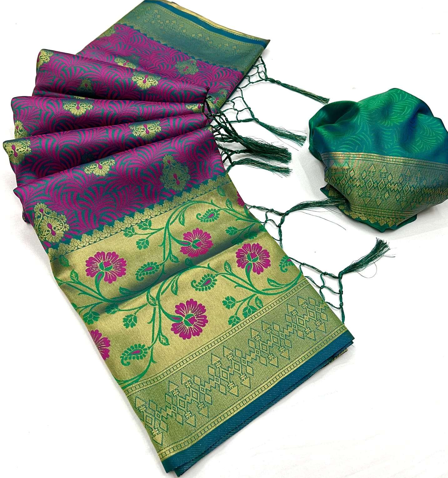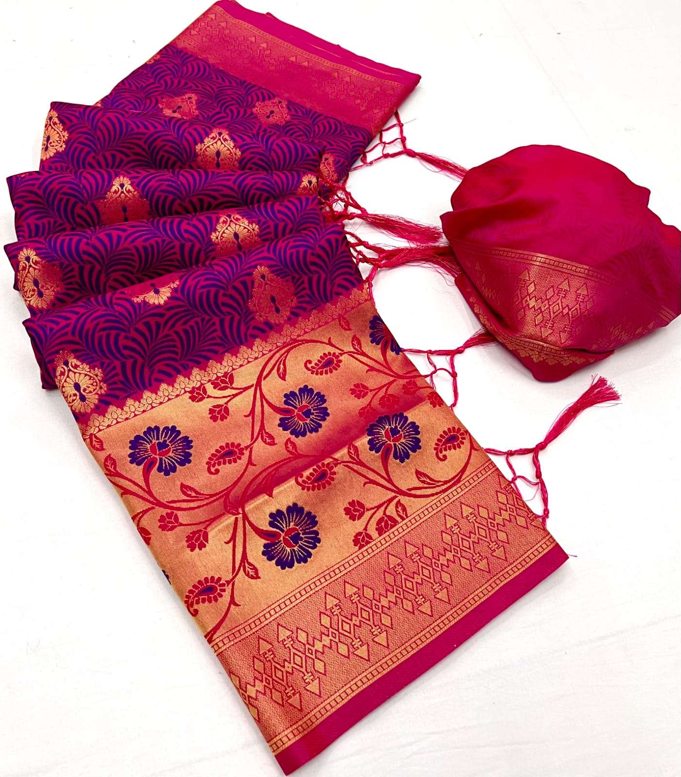 🔰 *Fabric*- *SELF - CONTRAST CHAP HANDLOOM WEAVING SAREES*