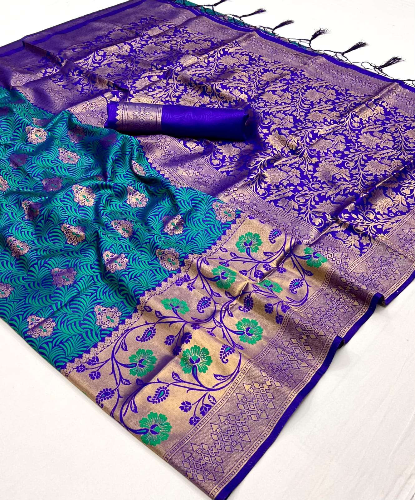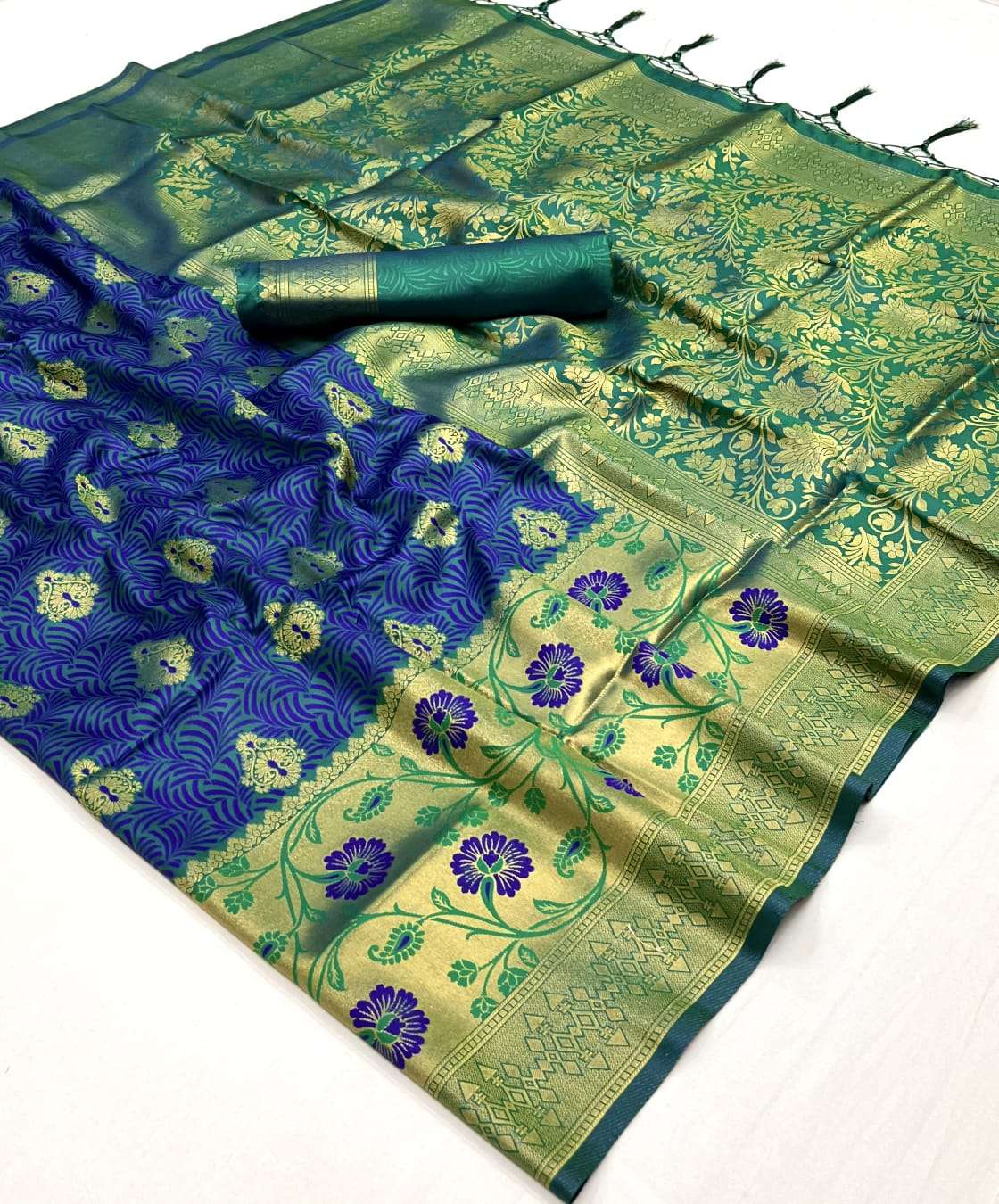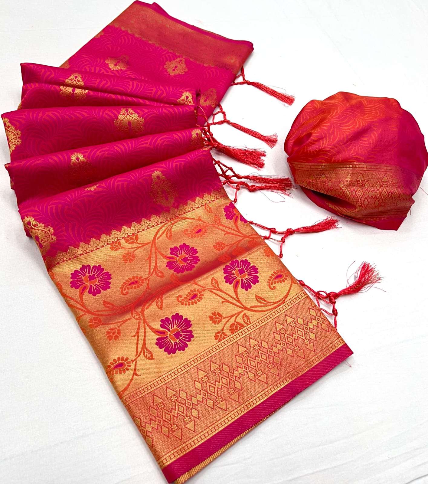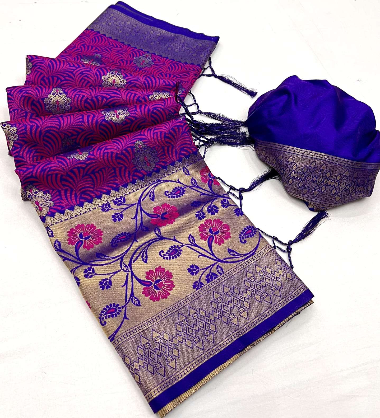 🔰 *Fabric*- *SELF - CONTRAST CHAP HANDLOOM WEAVING SAREES*