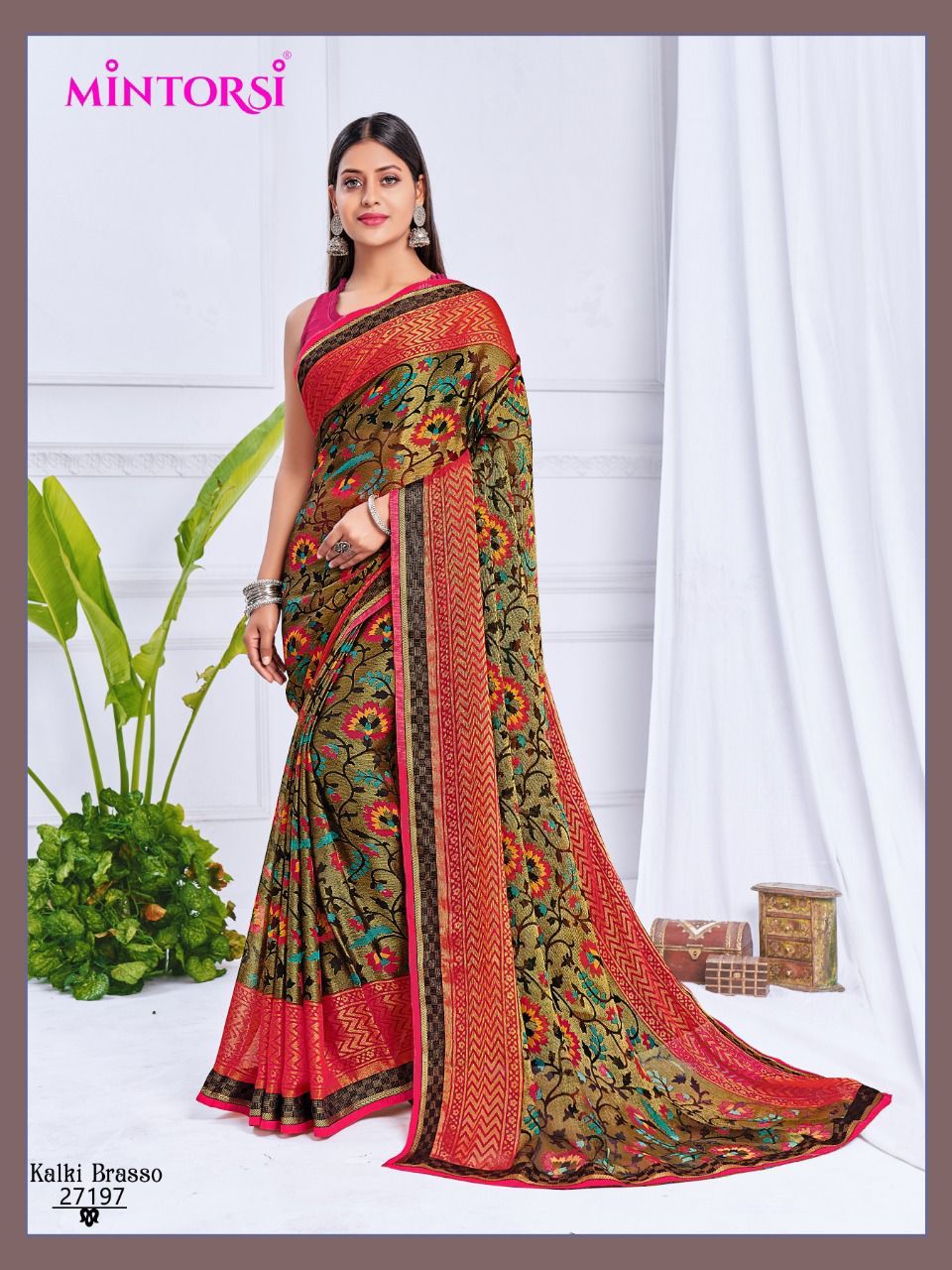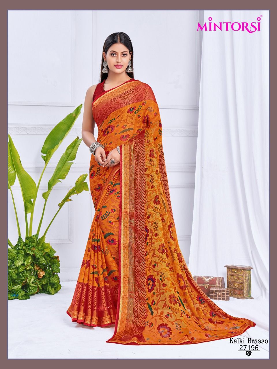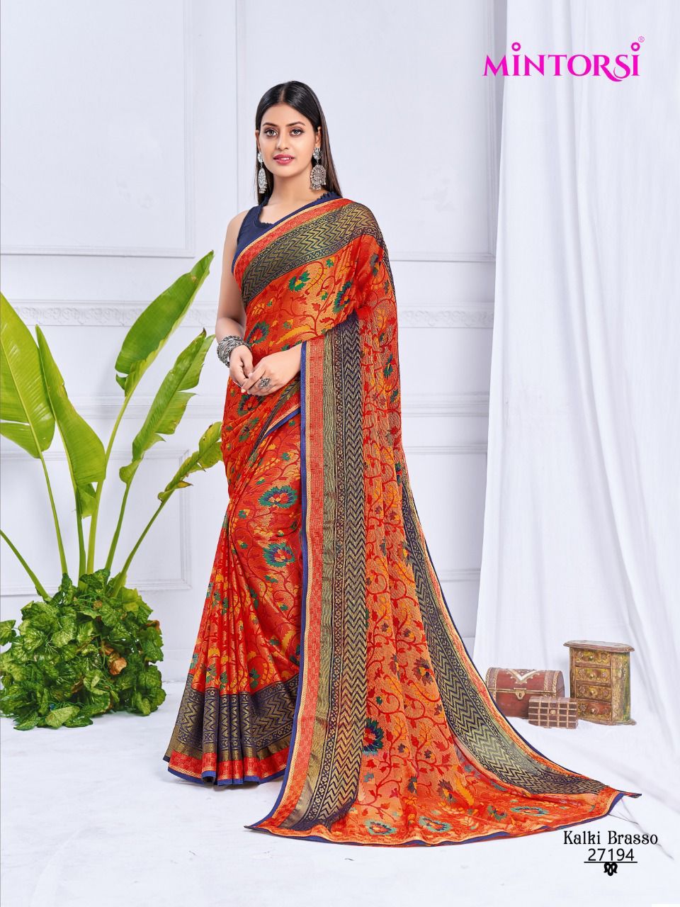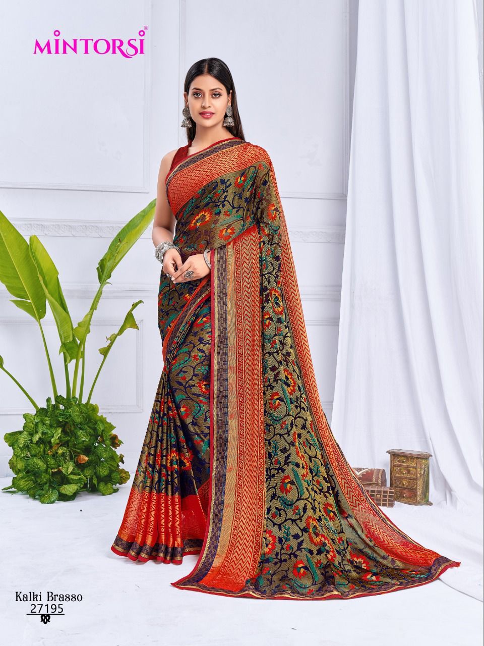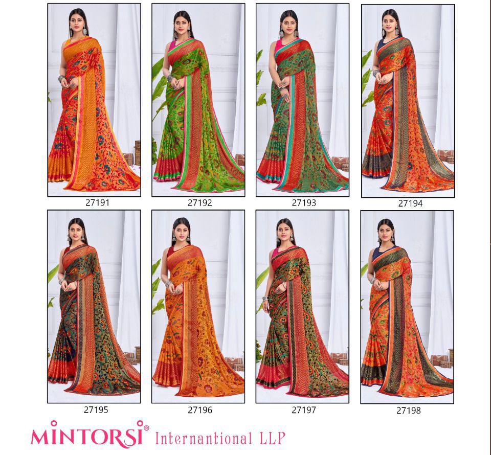 Buy Online Kalki Brasso By Mintorsi Designer Saree Single And Set Stockiest And Supplier From Surat 8 Pcs of Full Catalogue at Wholesale Price. Looking for Kalki Brasso By Mintorsi Designer Saree Single And Set Stockiest And Supplier From Surat Full Catalouge at Best Price? Buy Now Kalki Brasso By Mintorsi Designer Saree Single And Set Stockiest And Supplier From Surat at Wholesale Rate of Rs 7080 with Total 8 Pcs from authroized dealer and supplier of Brand. Cost of Each piece is just only Rs 885 which is very low and affordable price to resale the product in your retail store ,This is Surat based Wholesale Supplier & Dealer of Brand. Click on Brand name to Know more about Brand's products.Call or Whatsapp on 9898838984 for booking or enquiry