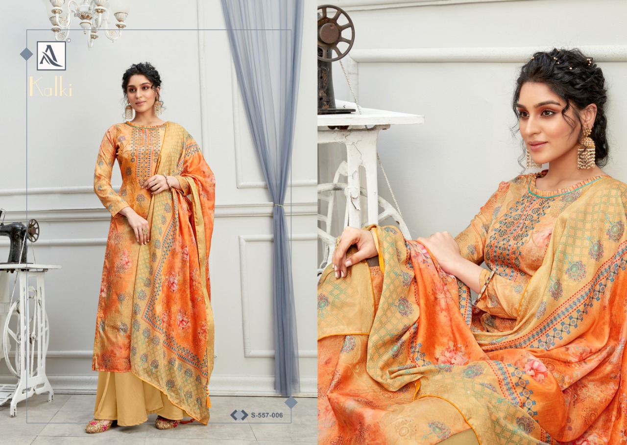 Buy Online Kalki By Alok Suit Wholesale Supplier Traders In Surat 8 Pcs of Full Catalogue at Wholesale Price. Looking for Kalki By Alok Suit Wholesale Supplier Traders In Surat Full Catalouge at Best Price? Buy Now Kalki By Alok Suit Wholesale Supplier Traders In Surat at Wholesale Rate of Rs 7400 with Total 8 Pcs from authroized dealer and supplier of Brand. Cost of Each piece is just only Rs 925 which is very low and affordable price to resale the product in your retail store ,This is Surat based Wholesale Supplier & Dealer of Brand. Click on Brand name to Know more about Brand's products.Call or Whatsapp on 9898838984 for booking or enquiry
