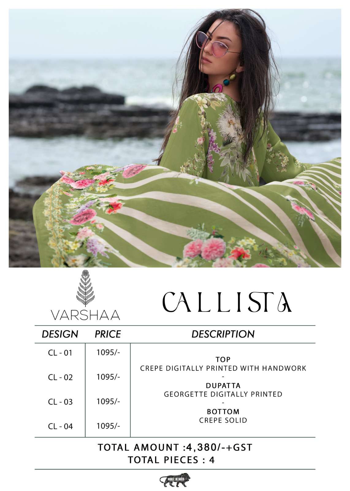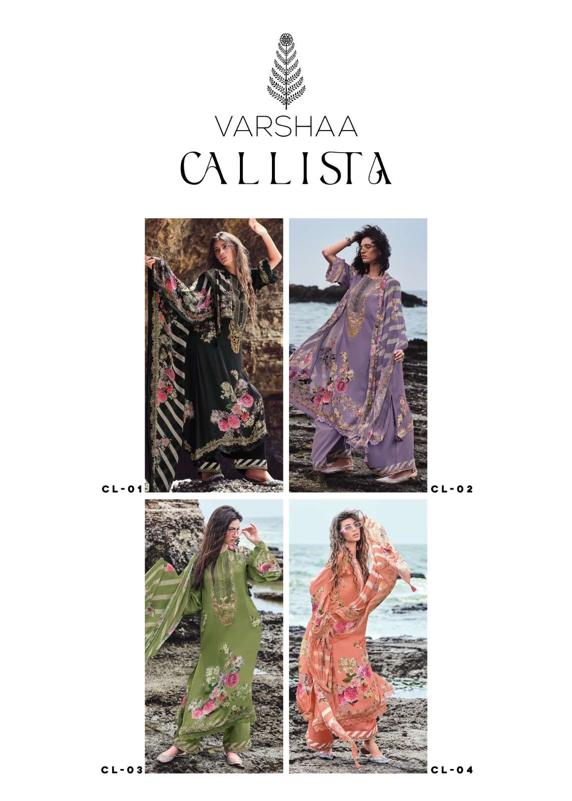 Buy Online Kallishta by varsha Suit collection manufacturer surat 4 Pcs of Full Catalogue at Wholesale Price. Looking for Kallishta by varsha Suit collection manufacturer surat Full Catalouge at Best Price? Buy Now Kallishta by varsha Suit collection manufacturer surat at Wholesale Rate of Rs 4380 with Total 4 Pcs from authroized dealer and supplier of Varsha Brand. Cost of Each piece is just only Rs 1095 which is very low and affordable price to resale the product in your retail store ,This is Surat based Wholesale Supplier & Dealer of Varsha Brand. Click on Brand name to Know more about Varsha Brand's products.Call or Whatsapp on 9898838984 for booking or enquiry
