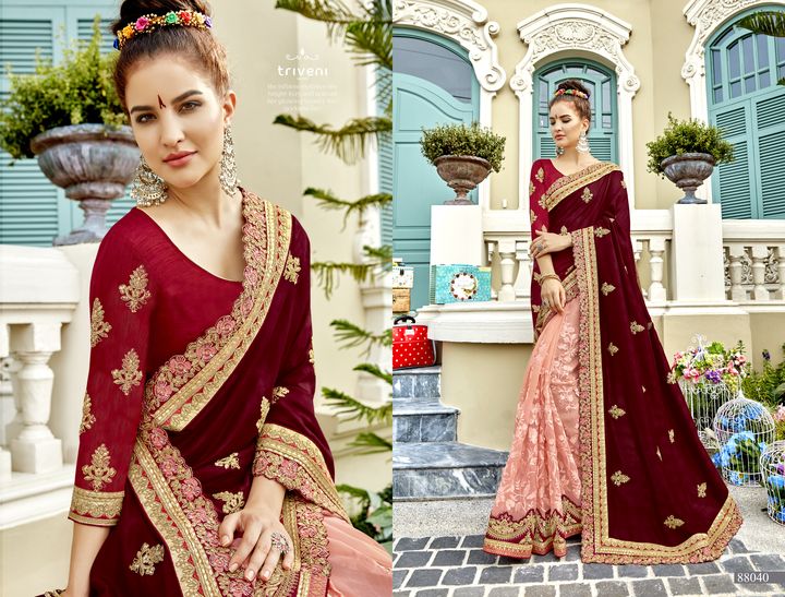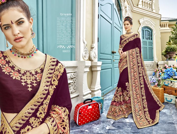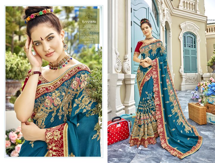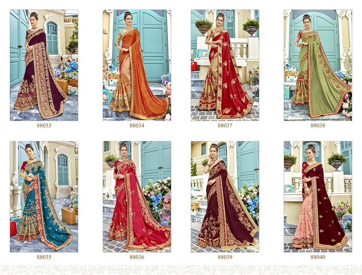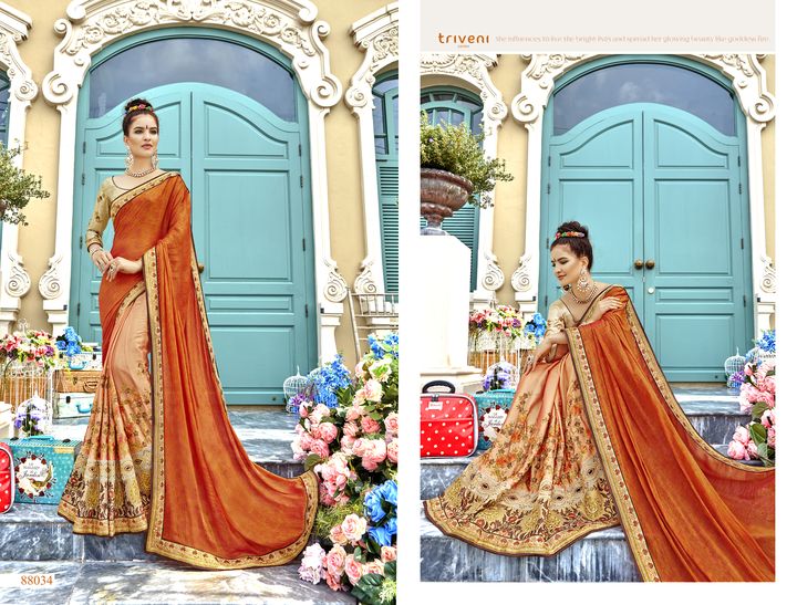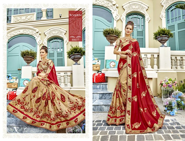 Buy Online Kalpana Vol 16 By Triveni 88033 Series Fancy Party Wear Saree Collection Wholesale Dealer Surat 8 Pcs of Full Catalogue at Wholesale Price. Looking for Kalpana Vol 16 By Triveni 88033 Series Fancy Party Wear Saree Collection Wholesale Dealer Surat Full Catalouge at Best Price? Buy Now Kalpana Vol 16 By Triveni 88033 Series Fancy Party Wear Saree Collection Wholesale Dealer Surat at Wholesale Rate of Rs 11288 with Total 8 Pcs from authroized dealer and supplier of TRIVENI Brand. Cost of Each piece is just only Rs 1411 which is very low and affordable price to resale the product in your retail store ,This is Surat based Wholesale Supplier & Dealer of TRIVENI Brand. Click on Brand name to Know more about TRIVENI Brand's products.Call or Whatsapp on 9898838984 for booking or enquiry