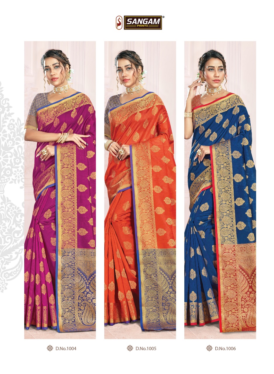 Buy Online Kalyanam Silk By Sangam Manufacturer Traders Surat 6 Pcs of Full Catalogue at Wholesale Price. Looking for Kalyanam Silk By Sangam Manufacturer Traders Surat Full Catalouge at Best Price? Buy Now Kalyanam Silk By Sangam Manufacturer Traders Surat at Wholesale Rate of Rs 5394 with Total 6 Pcs from authroized dealer and supplier of SANGAM Brand. Cost of Each piece is just only Rs 899 which is very low and affordable price to resale the product in your retail store ,This is Surat based Wholesale Supplier & Dealer of SANGAM Brand. Click on Brand name to Know more about SANGAM Brand's products.Call or Whatsapp on 9898838984 for booking or enquiry