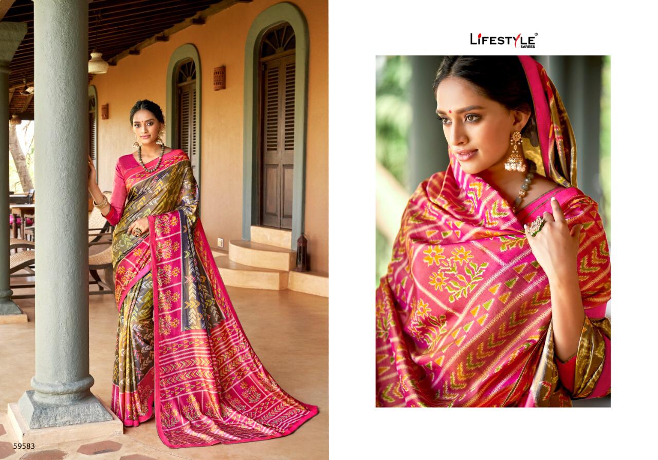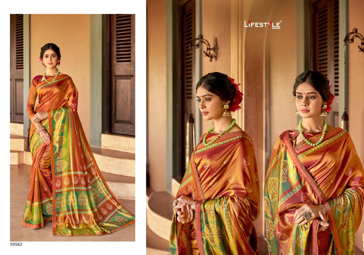 Buy Online Kamakshi By Lifestyle Series 59581 To 59590 Sana Silk Designer Wedding Wear Sarees Wholesale Supplier India 10 Pcs of Full Catalogue at Wholesale Price. Looking for Kamakshi By Lifestyle Series 59581 To 59590 Sana Silk Designer Wedding Wear Sarees Wholesale Supplier India Full Catalouge at Best Price? Buy Now Kamakshi By Lifestyle Series 59581 To 59590 Sana Silk Designer Wedding Wear Sarees Wholesale Supplier India at Wholesale Rate of Rs 7050 with Total 10 Pcs from authroized dealer and supplier of LIFESTYLE Brand. Cost of Each piece is just only Rs 705 which is very low and affordable price to resale the product in your retail store ,This is Surat based Wholesale Supplier & Dealer of LIFESTYLE Brand. Click on Brand name to Know more about LIFESTYLE Brand's products.Call or Whatsapp on 9898838984 for booking or enquiry