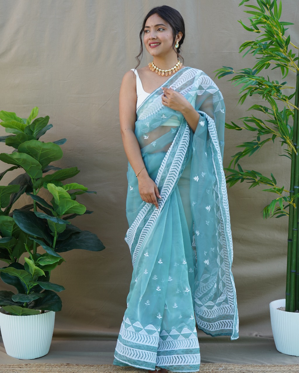 New Catalog Catalog Name : *KAMAL* No of Pcs : 6 Fabric : Organza Work : Embroidery Work *Blouse will be come Satin Bangalori fabric White color of saree* *Rate : 999/- (EXTRA 5% GST)* SINGLE AVAILABLE 100+single |