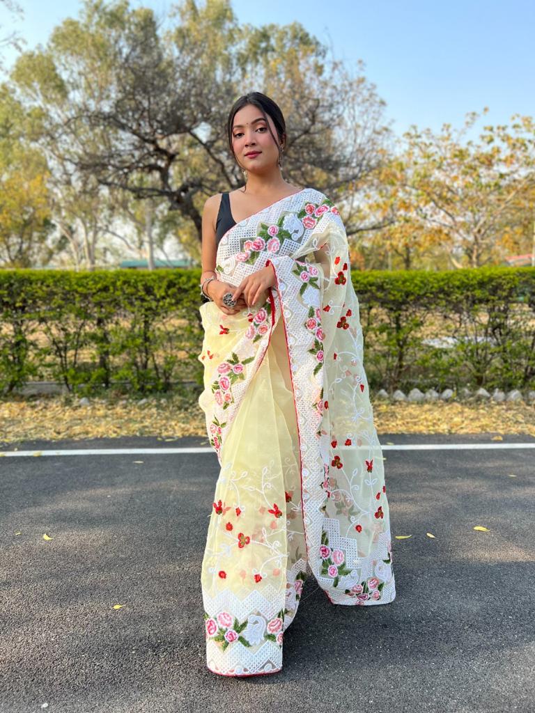 Kamal Jaal Fancy Organza Saree Collection Manufacturer Surat