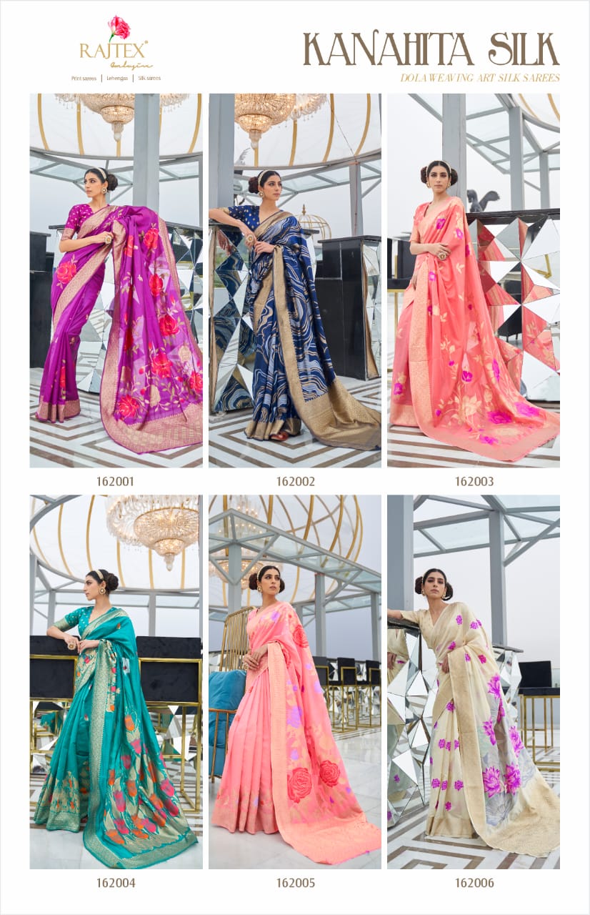 Buy Online Kanahita Silk By Raj Tex Single Available Manufacturer Treaders Surat 6 Pcs of Full Catalogue at Wholesale Price. Looking for Kanahita Silk By Raj Tex Single Available Manufacturer Treaders Surat Full Catalouge at Best Price? Buy Now Kanahita Silk By Raj Tex Single Available Manufacturer Treaders Surat at Wholesale Rate of Rs 8160 with Total 6 Pcs from authroized dealer and supplier of RAJTEX Brand. Cost of Each piece is just only Rs 1360 which is very low and affordable price to resale the product in your retail store ,This is Surat based Wholesale Supplier & Dealer of RAJTEX Brand. Click on Brand name to Know more about RAJTEX Brand's products.Call or Whatsapp on 9898838984 for booking or enquiry