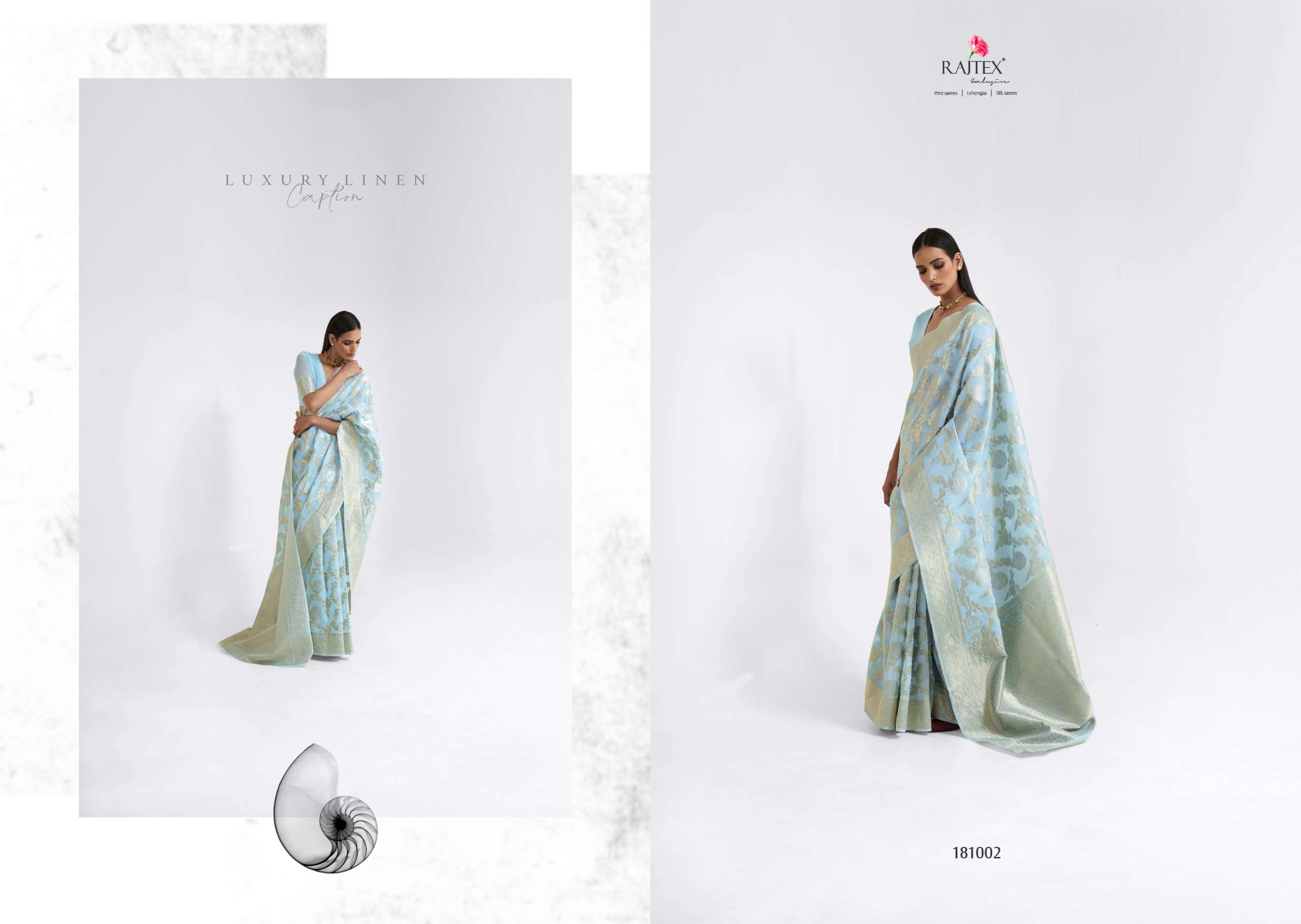Buy Online Kananya Linen Series 181001 To 181006 by rajtax saree collection manufacturer surat 12 Pcs of Full Catalogue at Wholesale Price. Looking for Kananya Linen Series 181001 To 181006 by rajtax saree collection manufacturer surat Full Catalouge at Best Price? Buy Now Kananya Linen Series 181001 To 181006 by rajtax saree collection manufacturer surat at Wholesale Rate of Rs 14340 with Total 12 Pcs from authroized dealer and supplier of RAJTEX Brand. Cost of Each piece is just only Rs 1195 which is very low and affordable price to resale the product in your retail store ,This is Surat based Wholesale Supplier & Dealer of RAJTEX Brand. Click on Brand name to Know more about RAJTEX Brand's products.Call or Whatsapp on 9898838984 for booking or enquiry