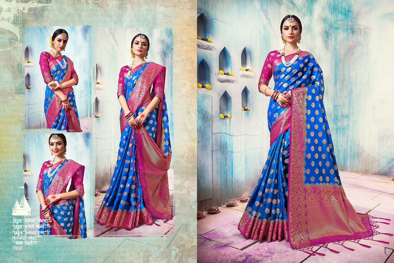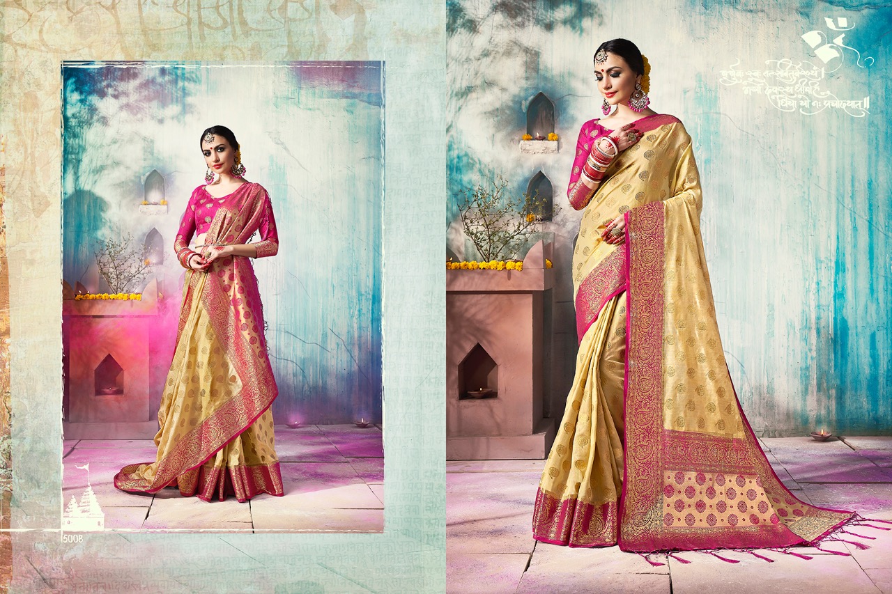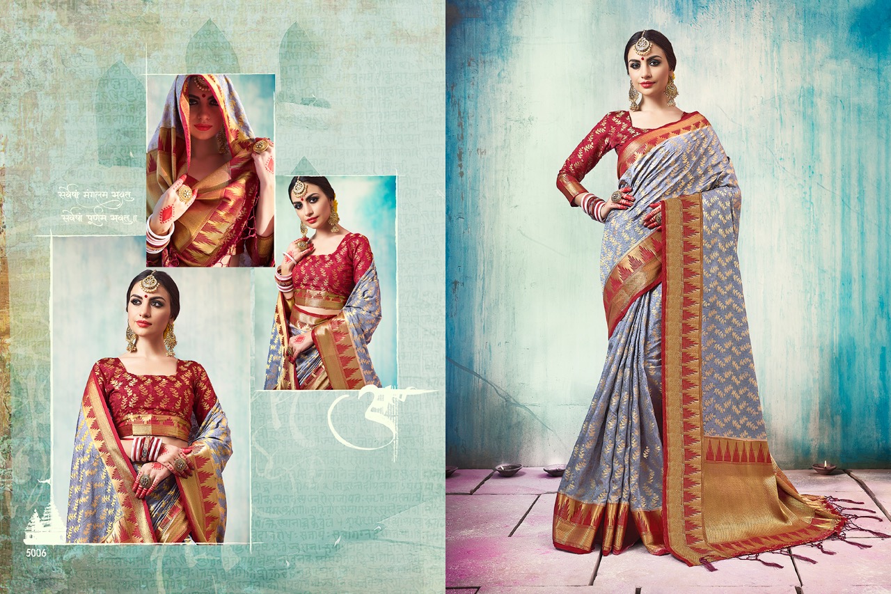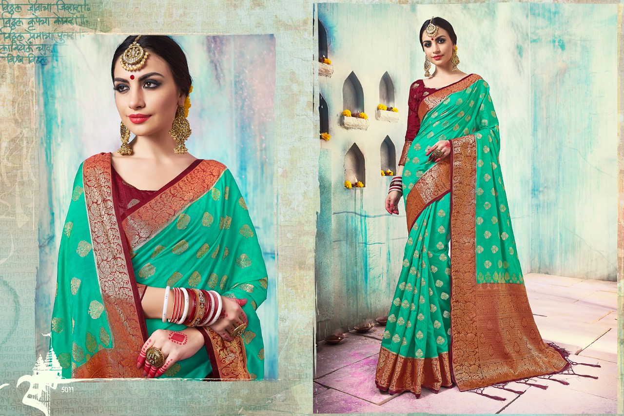 Brand - Kiaana . Type - Saree. Catlog name - Kanchi silk Fabric- Nylon silk Fabric . Series -5001 to 5014. Rate - 1661 per Pcs . GST 5 Percent Extra. Delivery date - 21-08-18. |