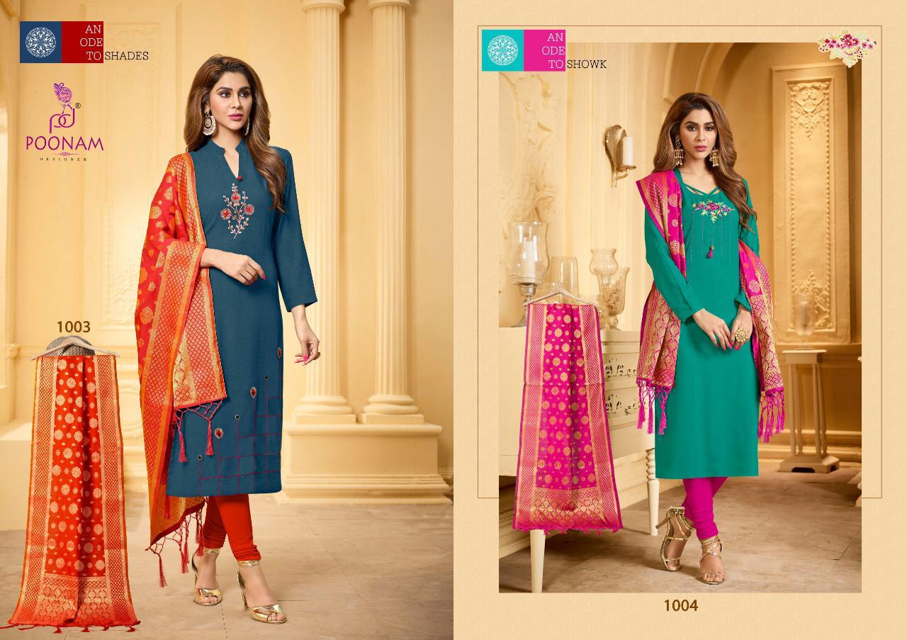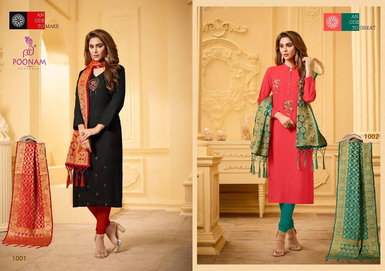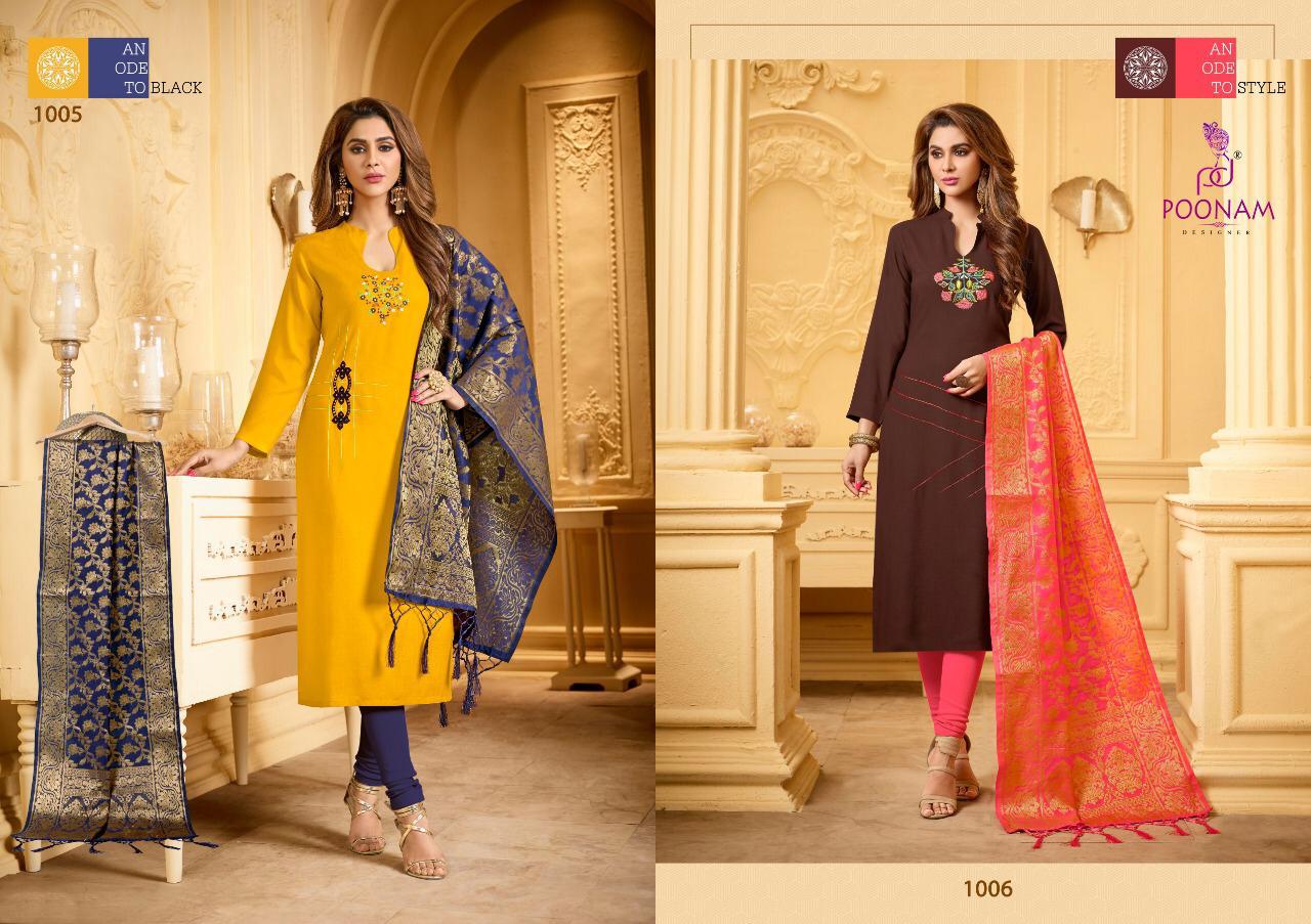 Kanchipuram By Poonam Designer Cotton Kurtis With Banrasi Dupatta Wholesale Supplier Nd Dealer India