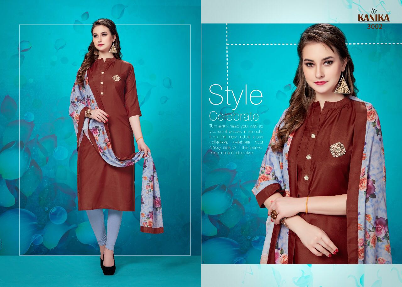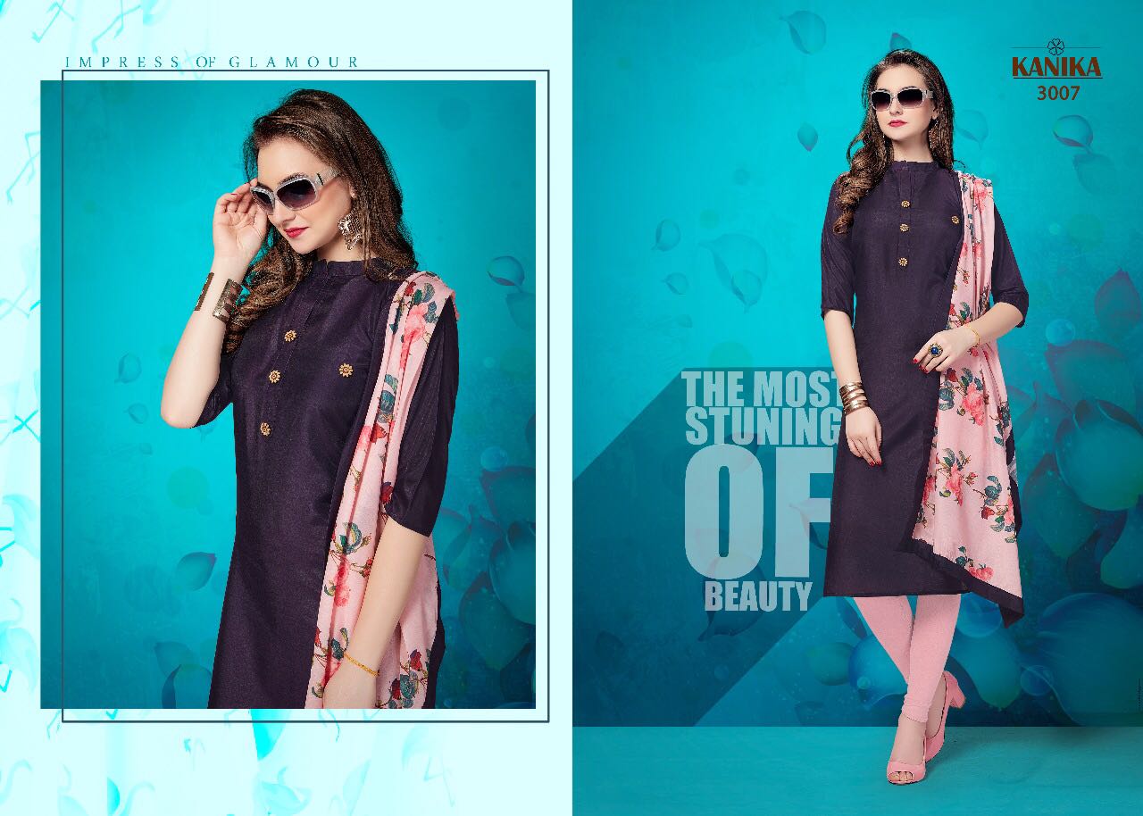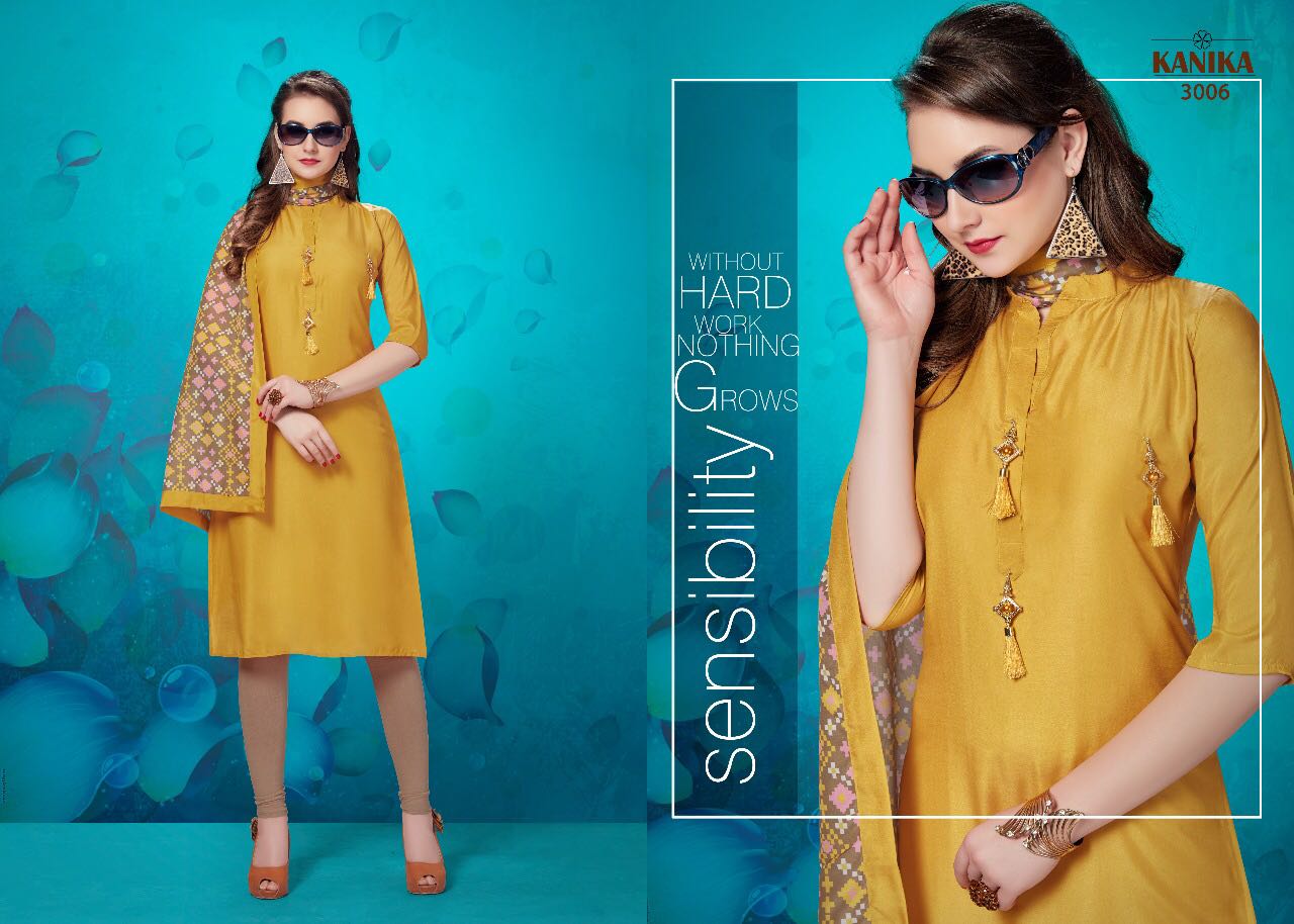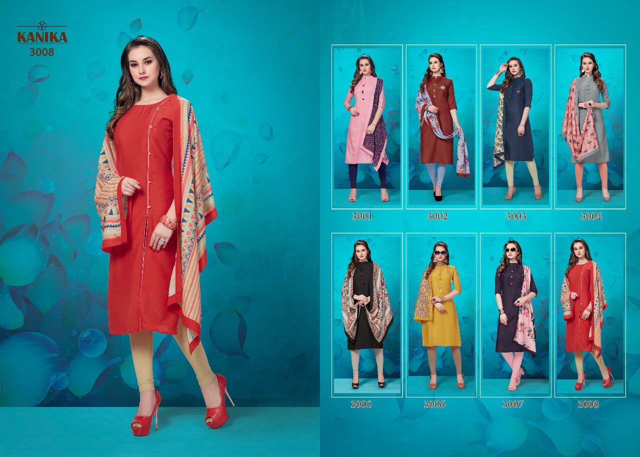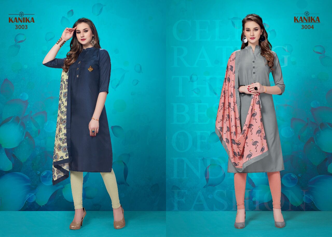 Buy Online Kanika Delisha 3001 Series Fancy Kurti With Print Dupatta 8 Pcs of Full Catalogue at Wholesale Price. Looking for Kanika Delisha 3001 Series Fancy Kurti With Print Dupatta Full Catalouge at Best Price? Buy Now Kanika Delisha 3001 Series Fancy Kurti With Print Dupatta at Wholesale Rate of Rs 5560 with Total 8 Pcs from authroized dealer and supplier of KANIKA Brand. Cost of Each piece is just only Rs 695 which is very low and affordable price to resale the product in your retail store ,This is Surat based Wholesale Supplier & Dealer of KANIKA Brand. Click on Brand name to Know more about KANIKA Brand's products.Call or Whatsapp on 9898838984 for booking or enquiry