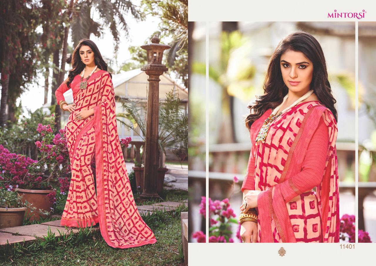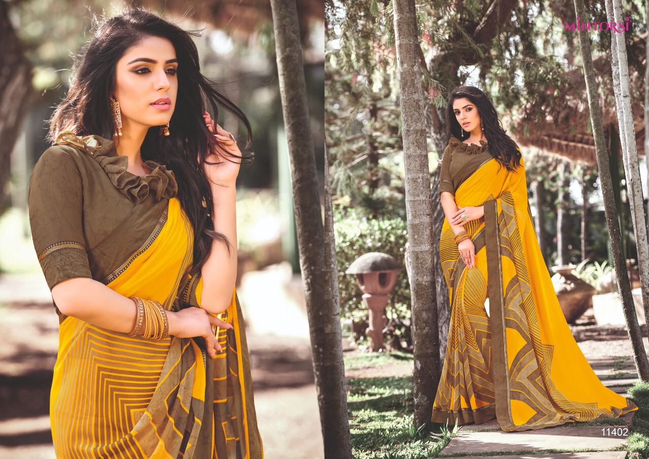 Mintorsi Designer Sarees Catalogue Name - Kanishka Fabric - Georgette With Exclusive Double lace border Dispetch Start Rate- 661 per Pcs. GST 5 Percent Extra. Delivery from today Single 100+ Single Available |