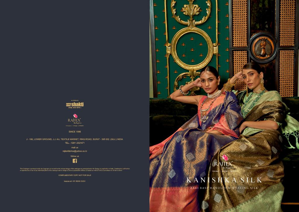 Buy Online Kanishka Silk By Rajtex 6 Pcs of Full Catalogue at Wholesale Price. Looking for Kanishka Silk By Rajtex Full Catalouge at Best Price? Buy Now Kanishka Silk By Rajtex at Wholesale Rate of Rs 11340 with Total 6 Pcs from authroized dealer and supplier of RAJTEX Brand. Cost of Each piece is just only Rs 1890 which is very low and affordable price to resale the product in your retail store ,This is Surat based Wholesale Supplier & Dealer of RAJTEX Brand. Click on Brand name to Know more about RAJTEX Brand's products.Call or Whatsapp on 9898838984 for booking or enquiry