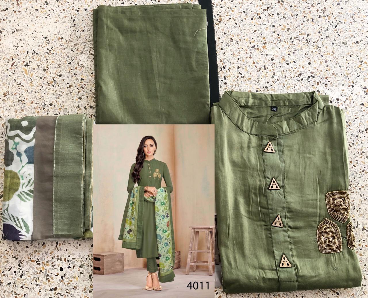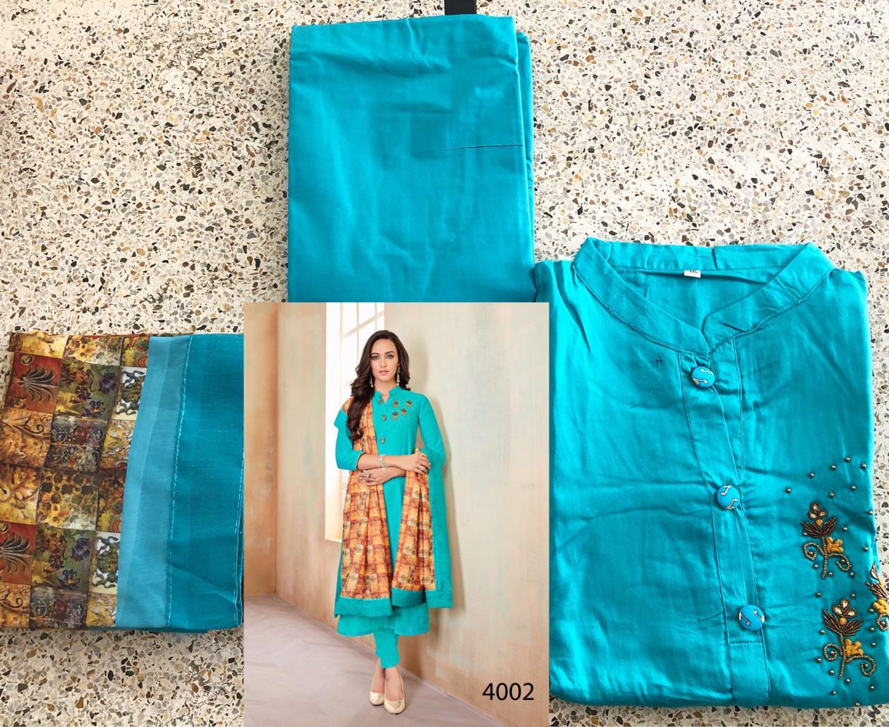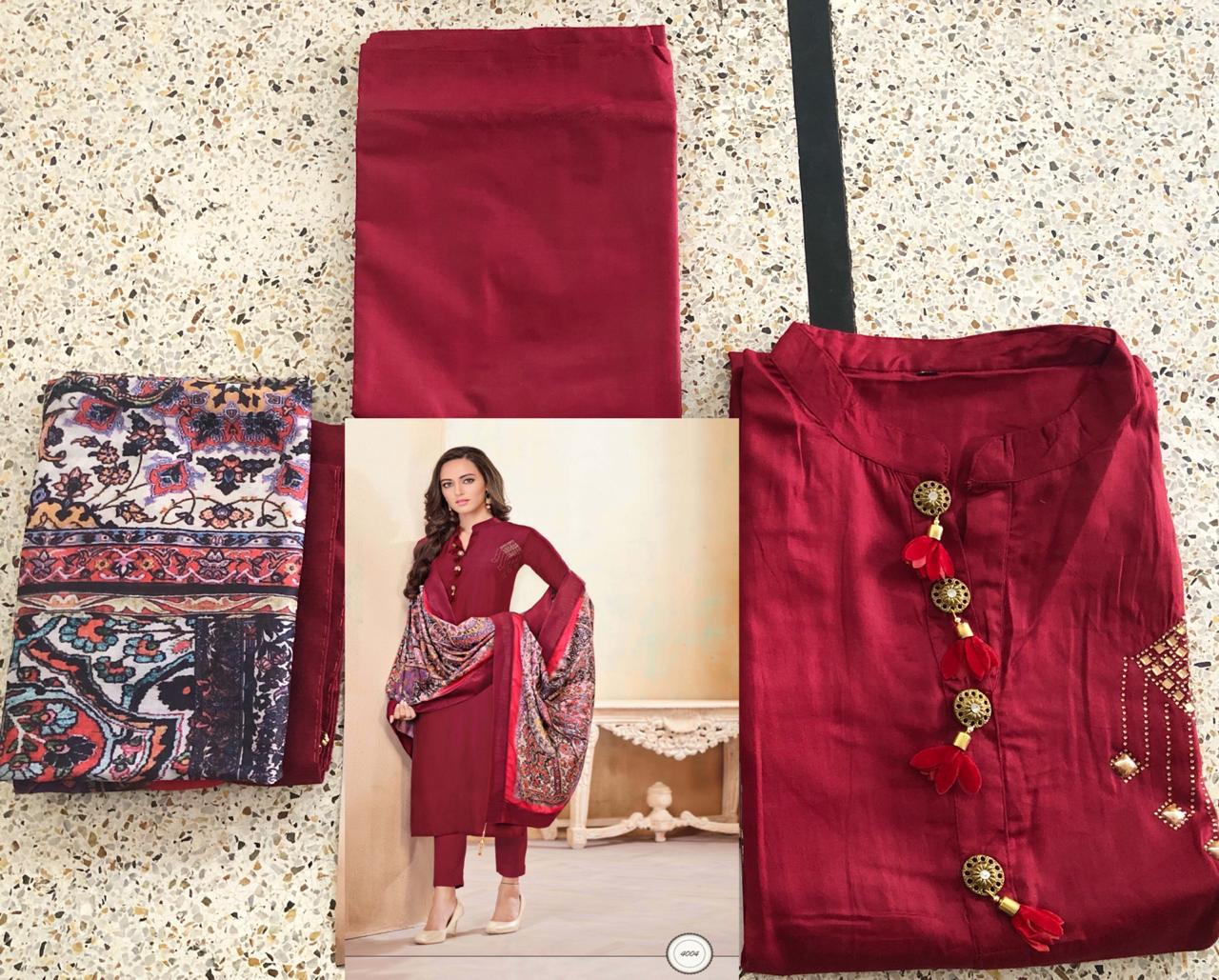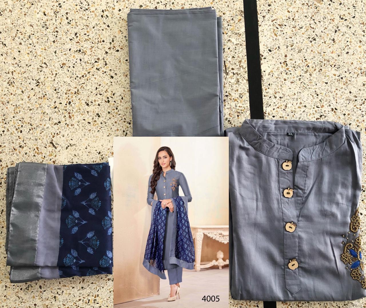 *Vardan Designer* _...the ethnic collection..._ *KANISHKA* Vol-1? Detail - top Â?hevay Jam Cotton With *Handwork* *Jamswork* *Embroidery* Work full stich (Size - L XL XXL) Bottom -heavy Cotton ( 2.5 mtr approx) Dupatta-heavy maslin with digital print ? *Design* -1?2? ?* Set & Loose & Singel * Single Extra 100 GST 5 Percent Extra. Delivery from today *#Unbeatable_price* *#Festival_collection* |