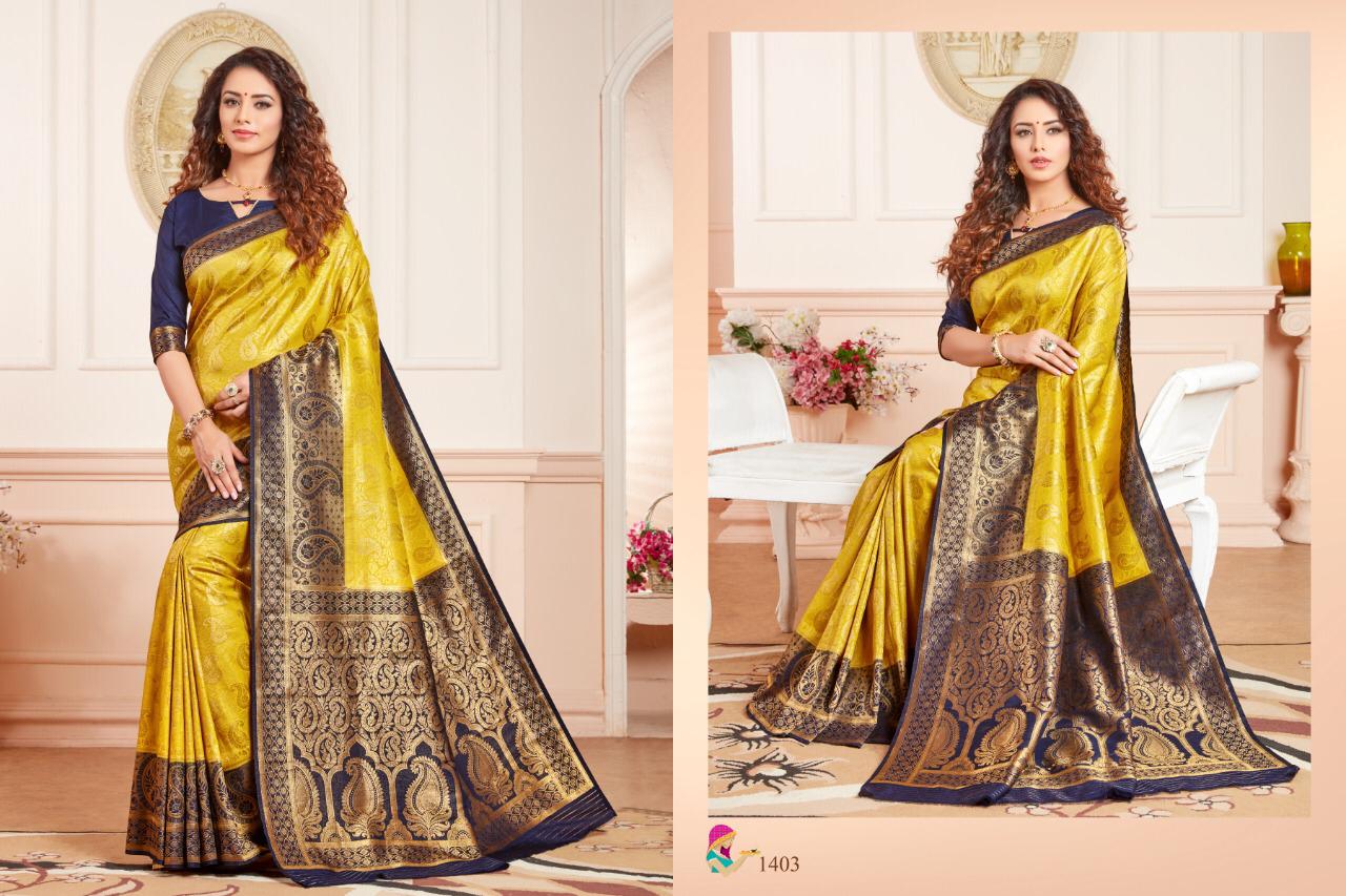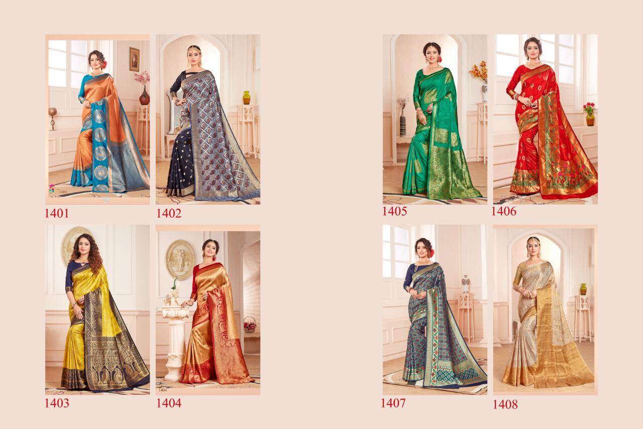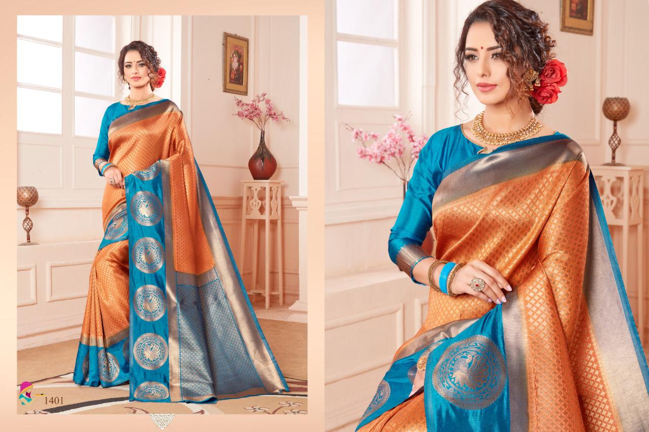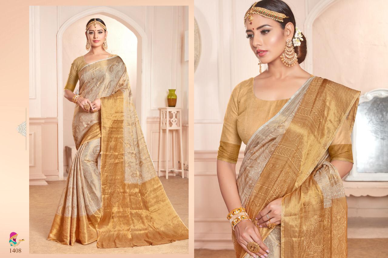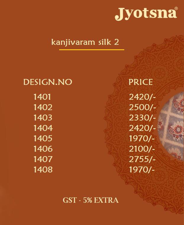 Brand - Jyotsana . Catlog name - KANJIVARAM SILK -2. Series -1401 to 1408. * set & Loose & Singel * Single Extra 100 GST 5 Percent Extra. Delivery 2 days |
