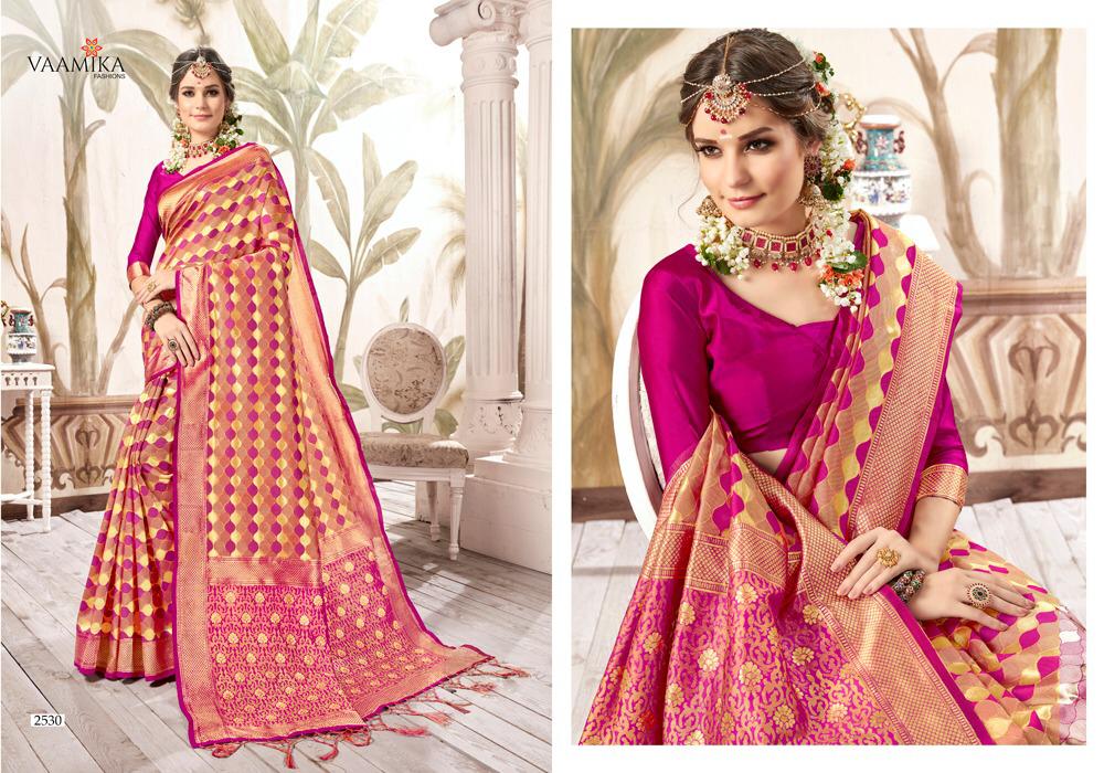 Buy Online Kanjivaram Silk By Vamika Occasion Wear Sarees Wholesale Supplier Gujarat 10 Pcs of Full Catalogue at Wholesale Price. Looking for Kanjivaram Silk By Vamika Occasion Wear Sarees Wholesale Supplier Gujarat Full Catalouge at Best Price? Buy Now Kanjivaram Silk By Vamika Occasion Wear Sarees Wholesale Supplier Gujarat at Wholesale Rate of Rs 11050 with Total 10 Pcs from authroized dealer and supplier of BRAND'S Brand. Cost of Each piece is just only Rs 1105 which is very low and affordable price to resale the product in your retail store ,This is Surat based Wholesale Supplier & Dealer of BRAND'S Brand. Click on Brand name to Know more about BRAND'S Brand's products.Call or Whatsapp on 9898838984 for booking or enquiry