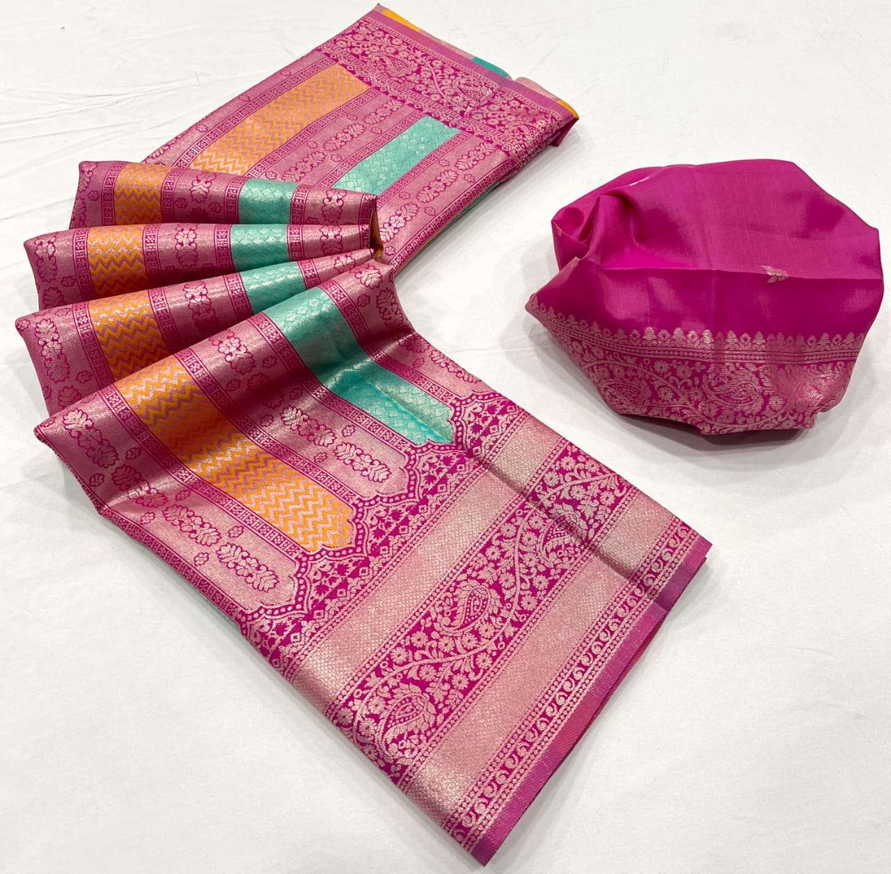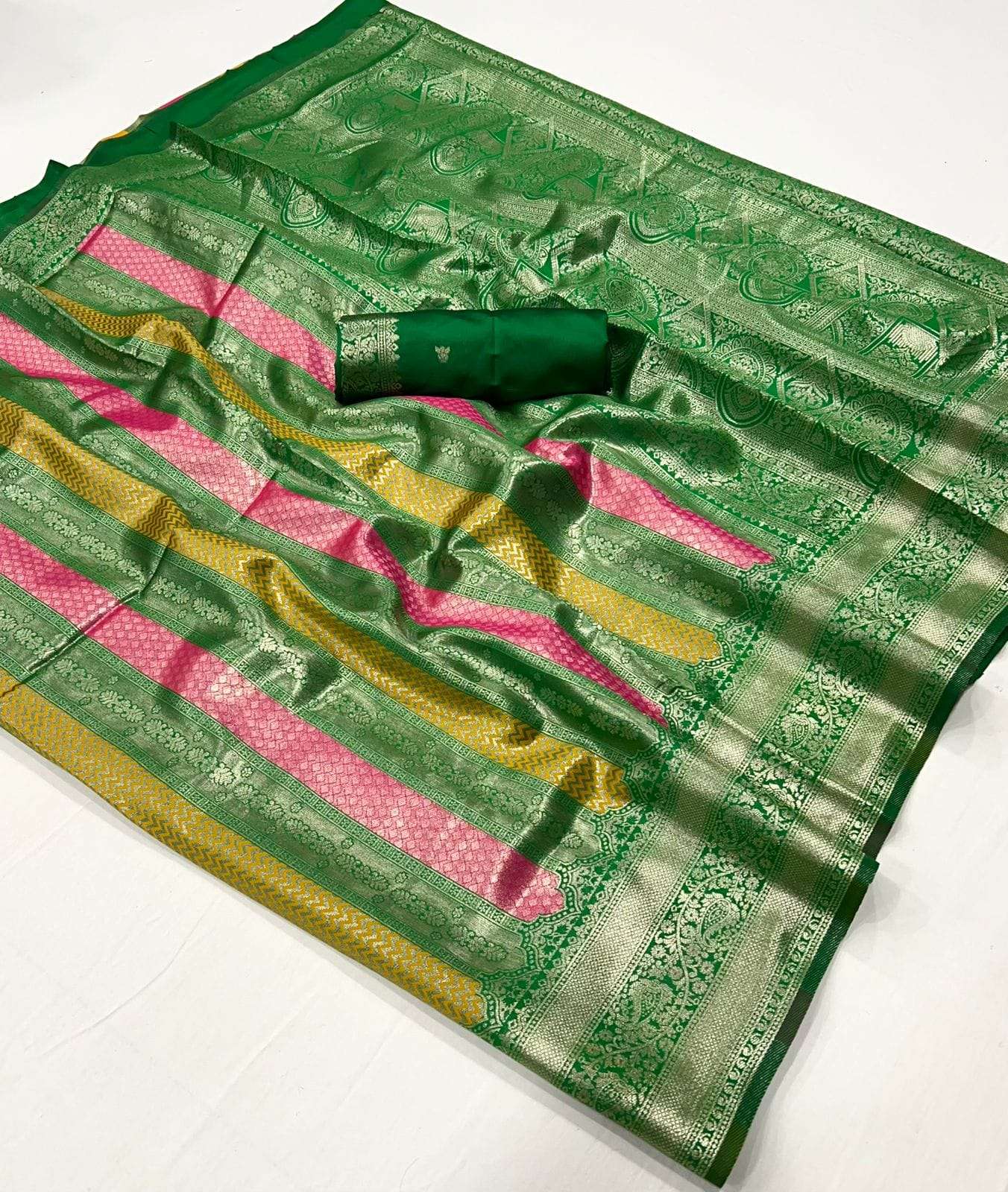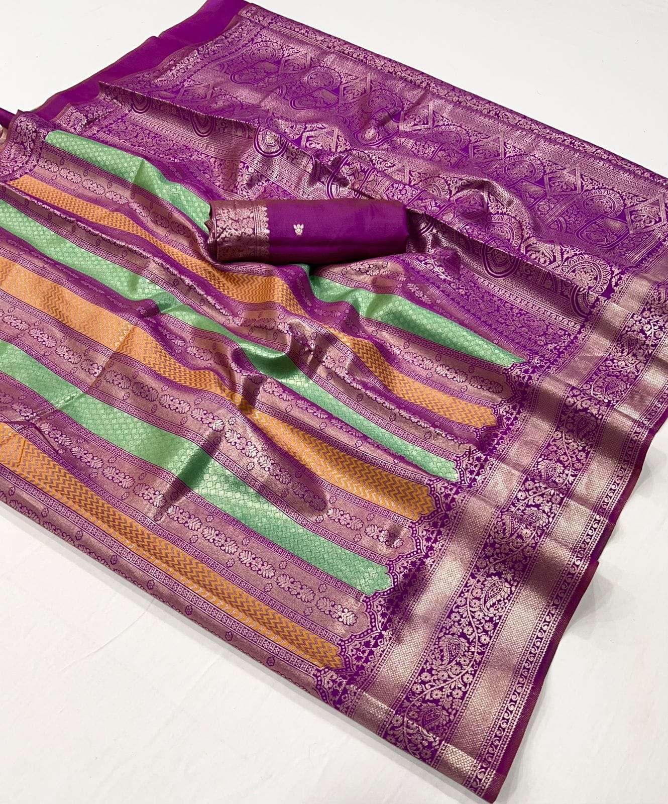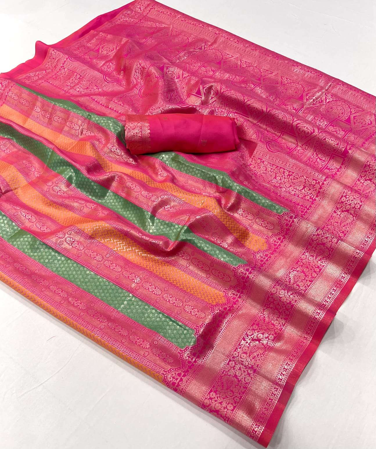 🔰 *Fabric*- *Kanjivaram silk Saree with elegant Weaving multi color lining on all over the saree Weaving border on either side Rich & Elegant Weaving Pallu as shown*